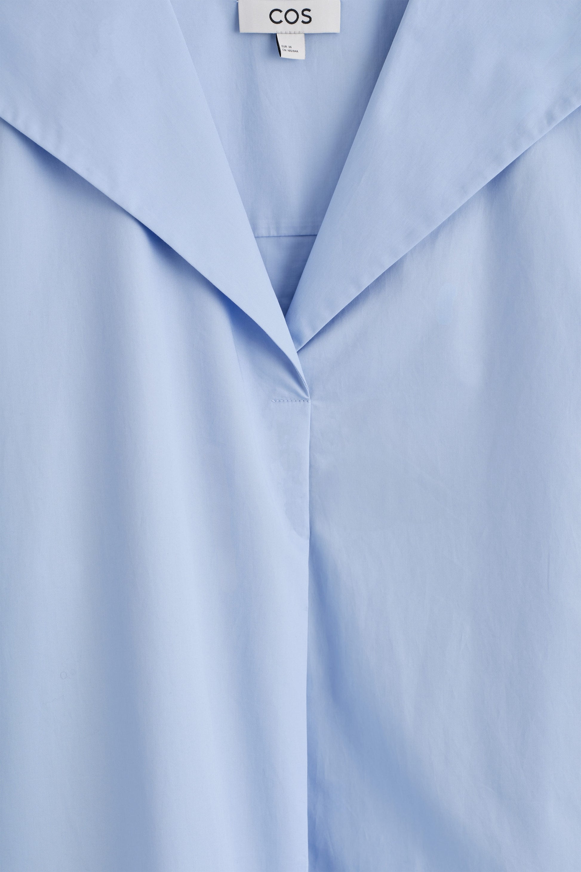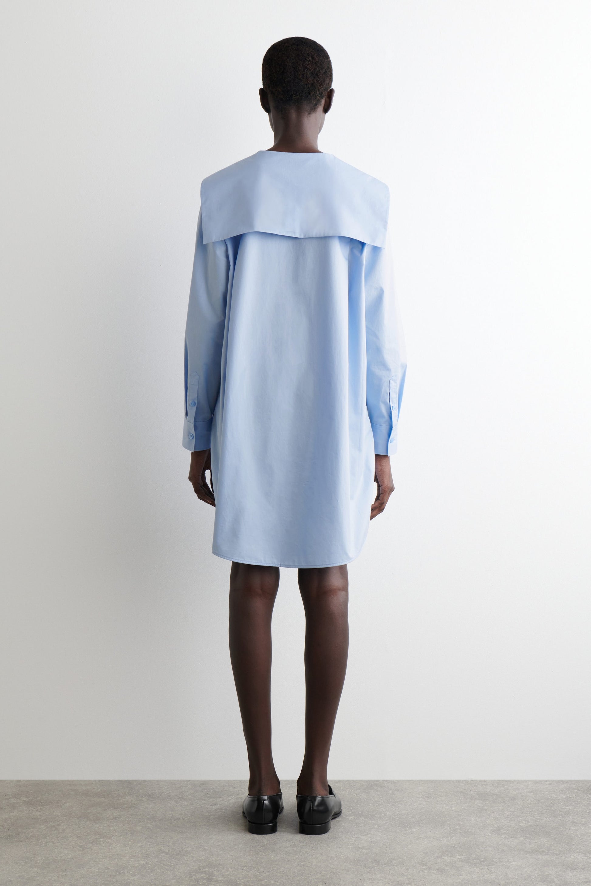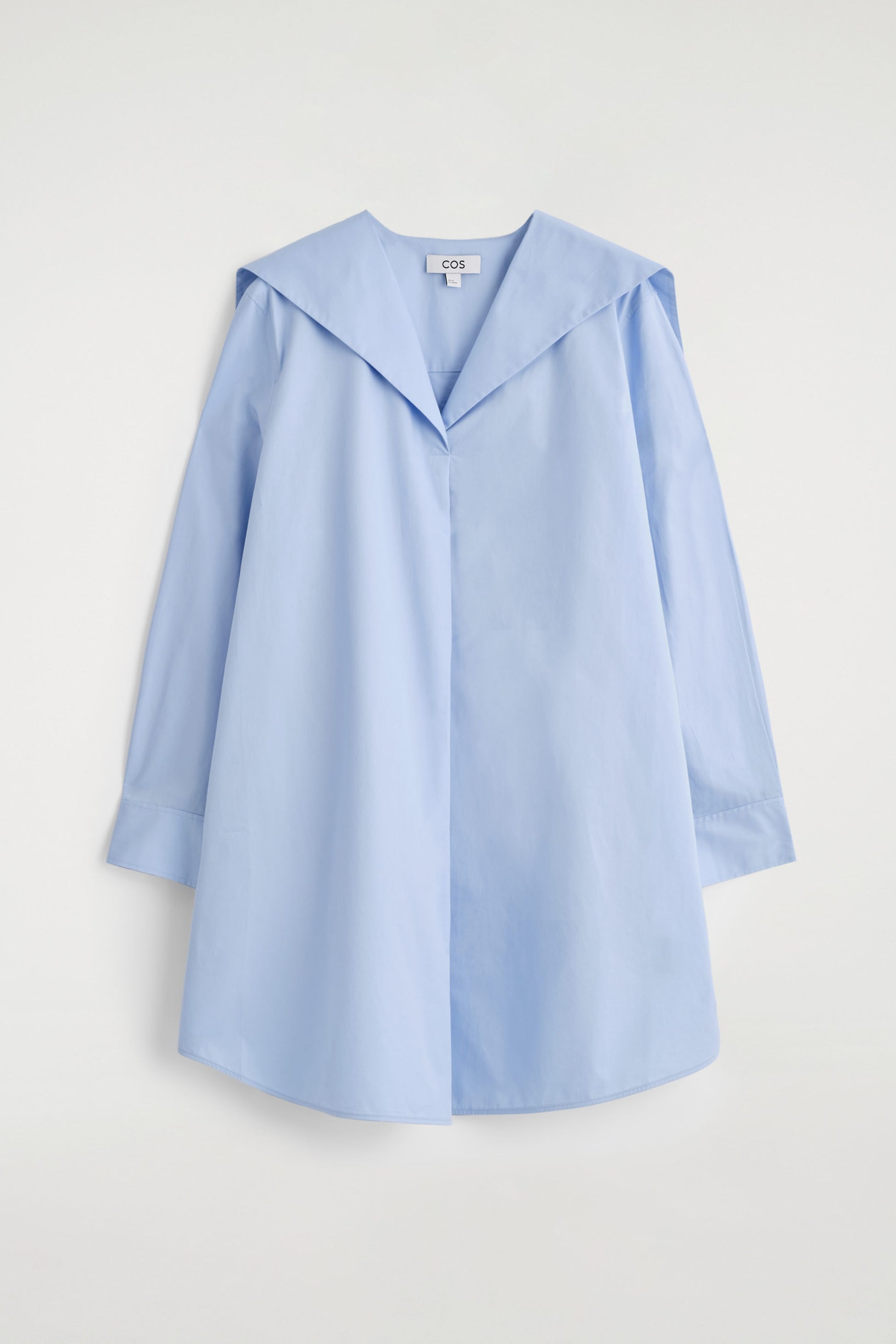 Modernising classic '60s silhouettes, this mini dress features a sailor collar that spreads across the shoulders. It's made from crisp cotton-poplin in a refreshing blue tone and features buttoned cuffs, discreet side pockets and a curved hem. Style it with ballet flats.