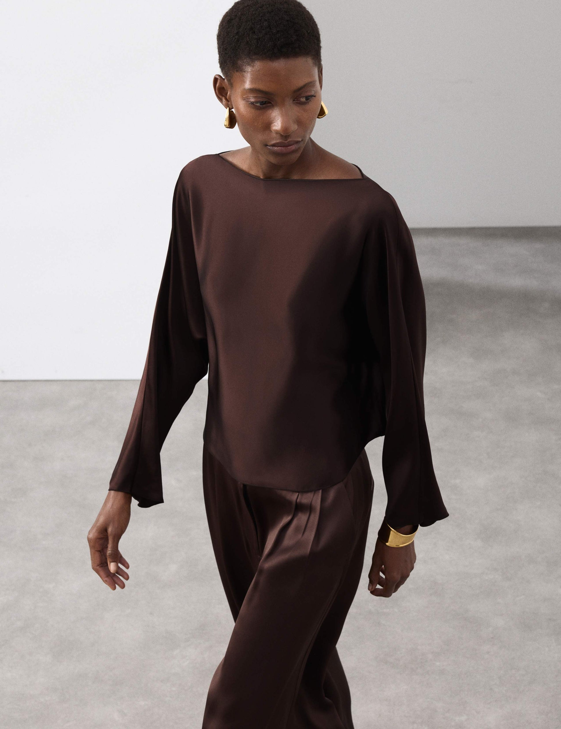 With its elegant draped shape and slash neckline, this satin blouse from our Autograph collection creates a sophisticated look. It's designed in a regular fit with beautifully flowing long sleeves.