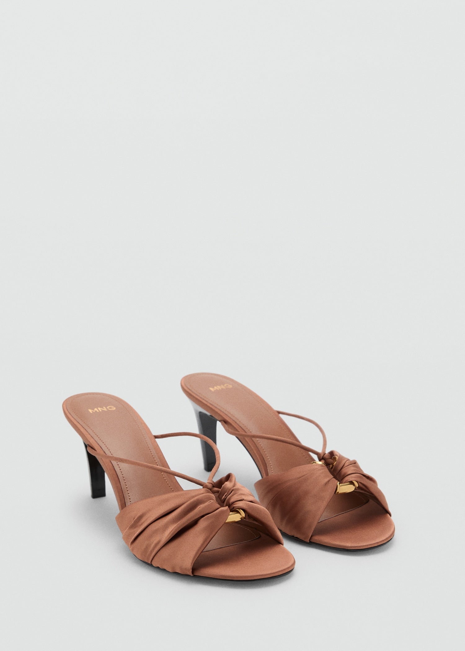 Satin-finish fabric. Gathered strip design. Metallic detail. Open toe. Funnel heel. No Fastening. 8 cm heel.