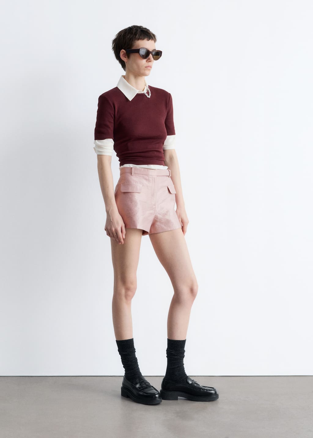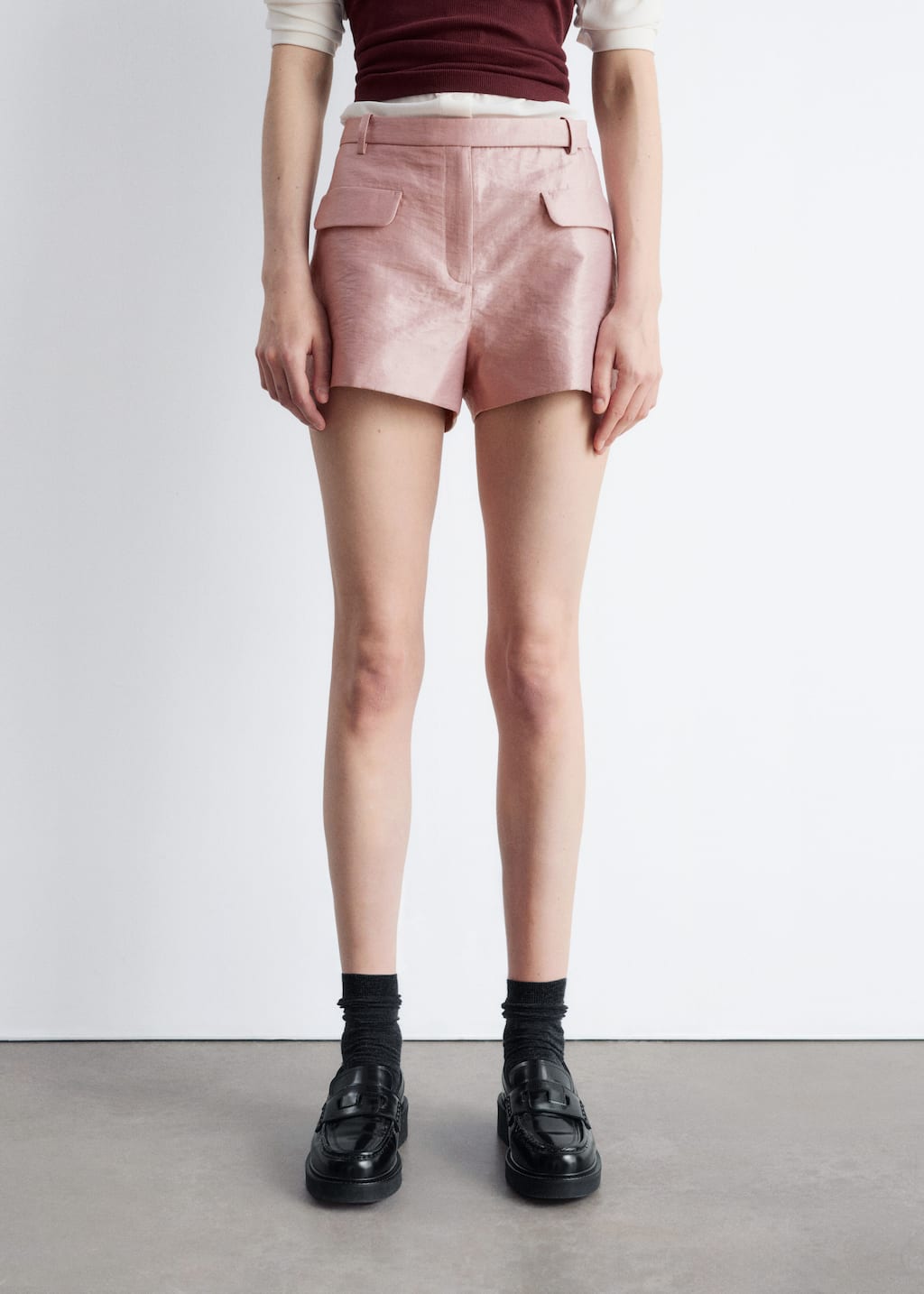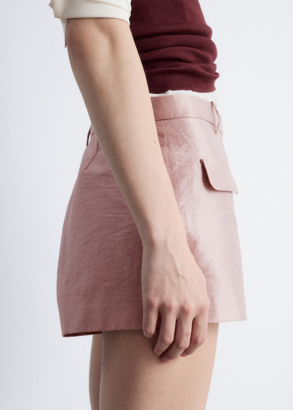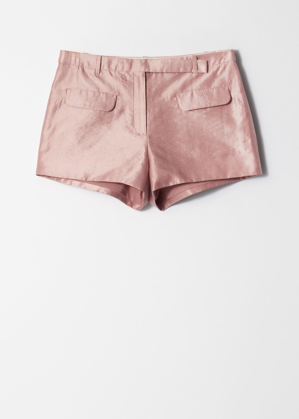 Crafted from a cotton-blend satin with a subtle sheen, these mini shorts offer a luxe take on casual dressing. Cut in a short silhouette, they feature a regular waist and dual flap pockets at the front. Finished with a zip and hook-and-bar closure. Style them with a simple t-shirt and high boots for edge, or strappy sandals for a casual summer look.