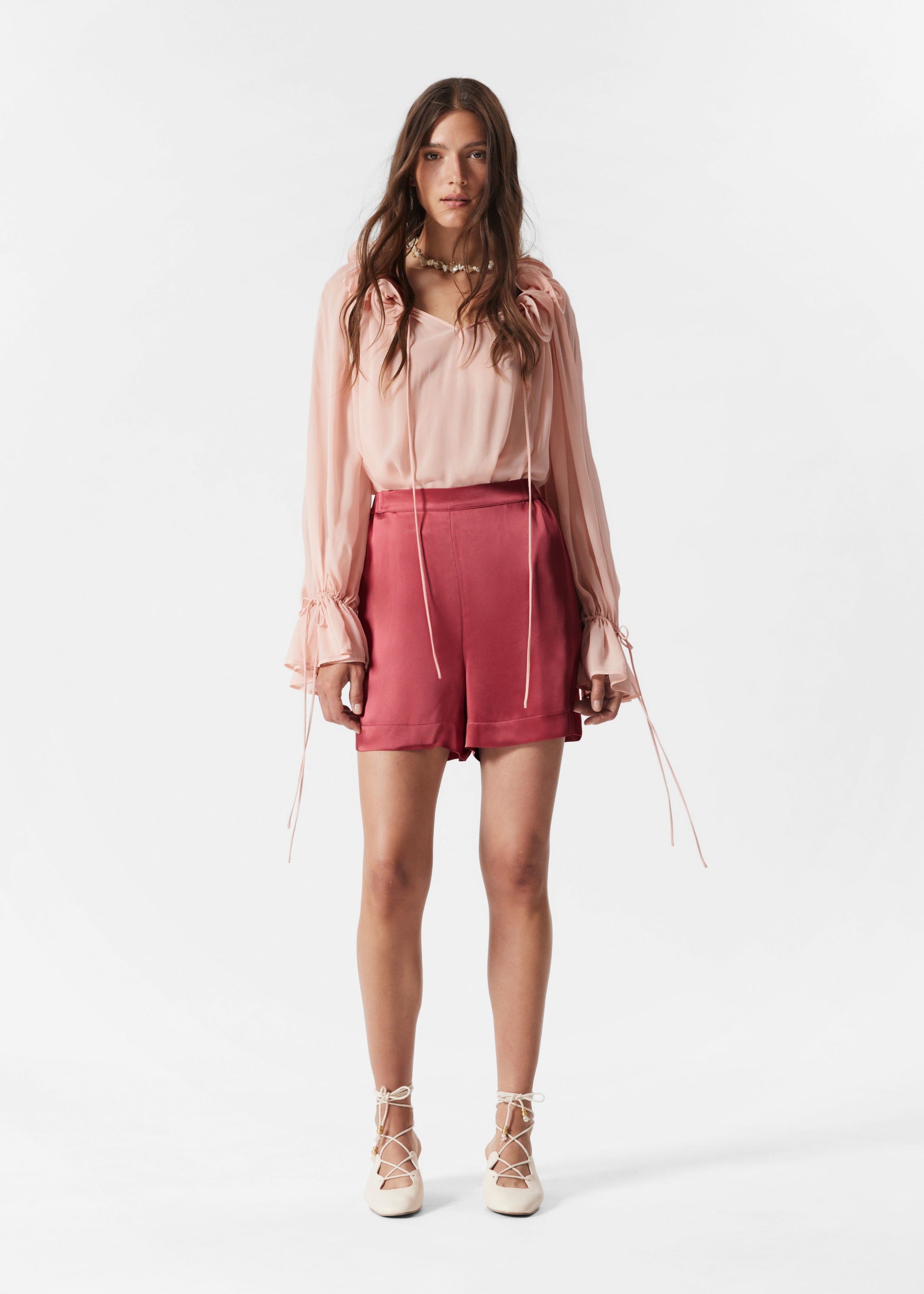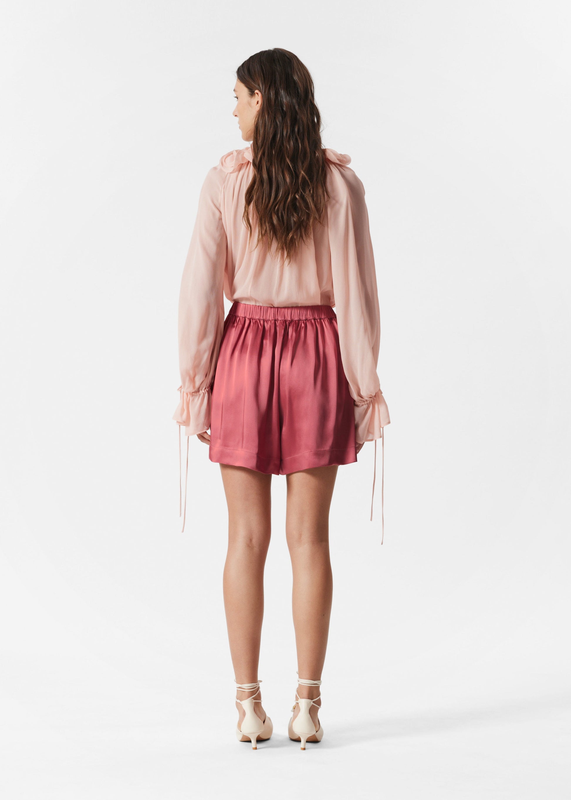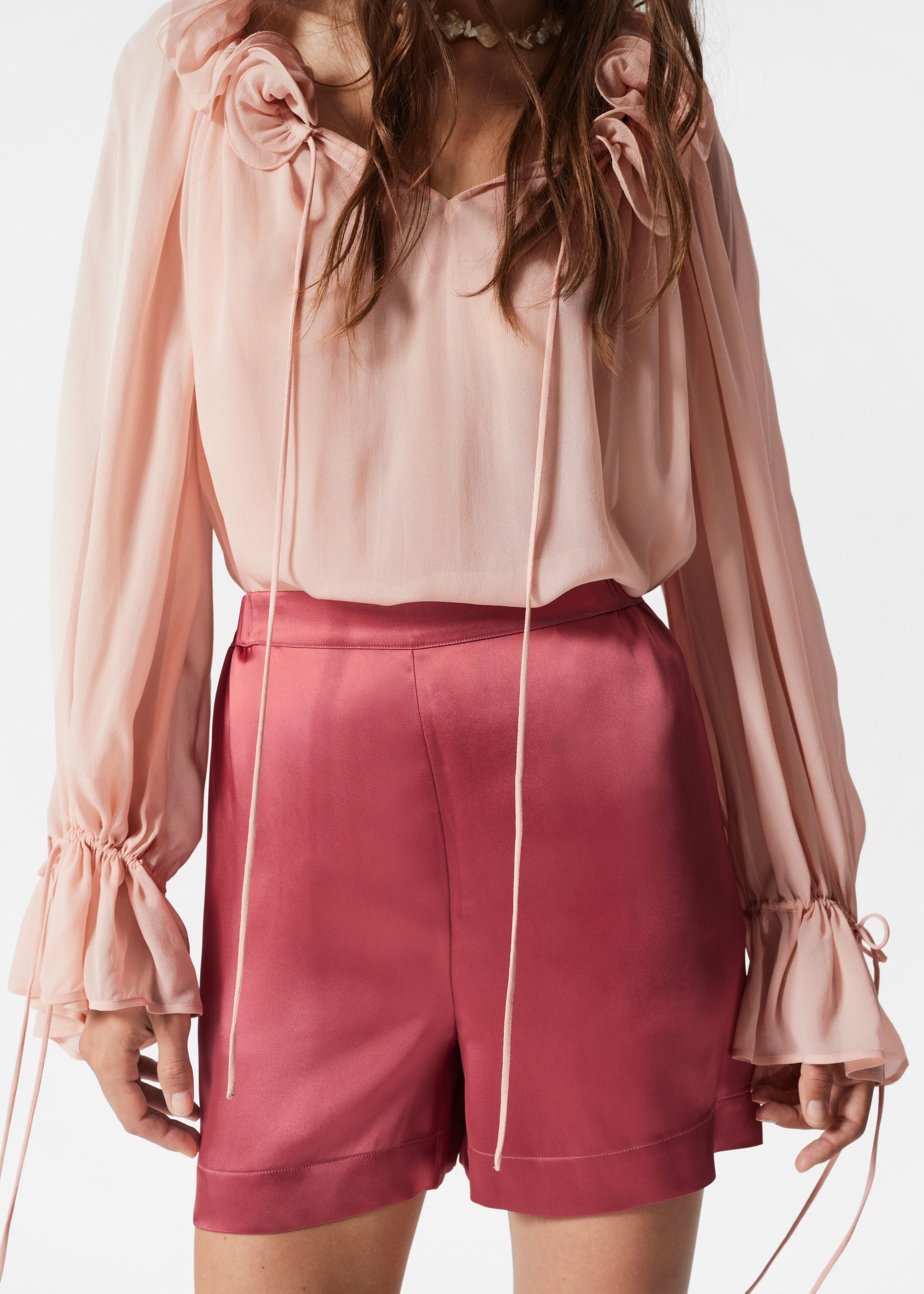These shorts are crafted from a lustrous satin fabric with a soft-to-skin feel. Cut in a relaxed silhouette, they feature a high-rise elastic waistband for an easy pull-on fit. Pair with a t-shirt or tank top on balmy summer days.