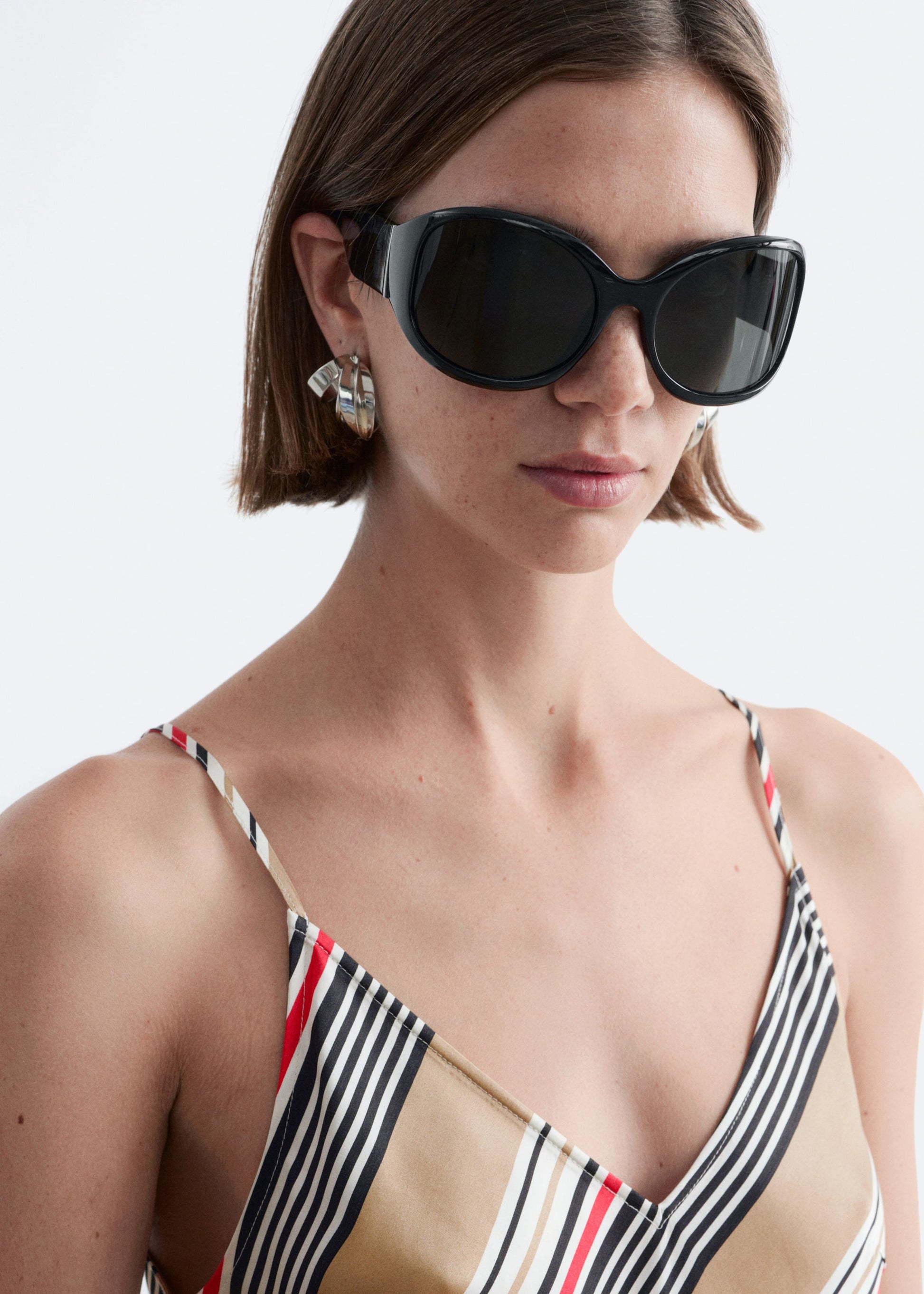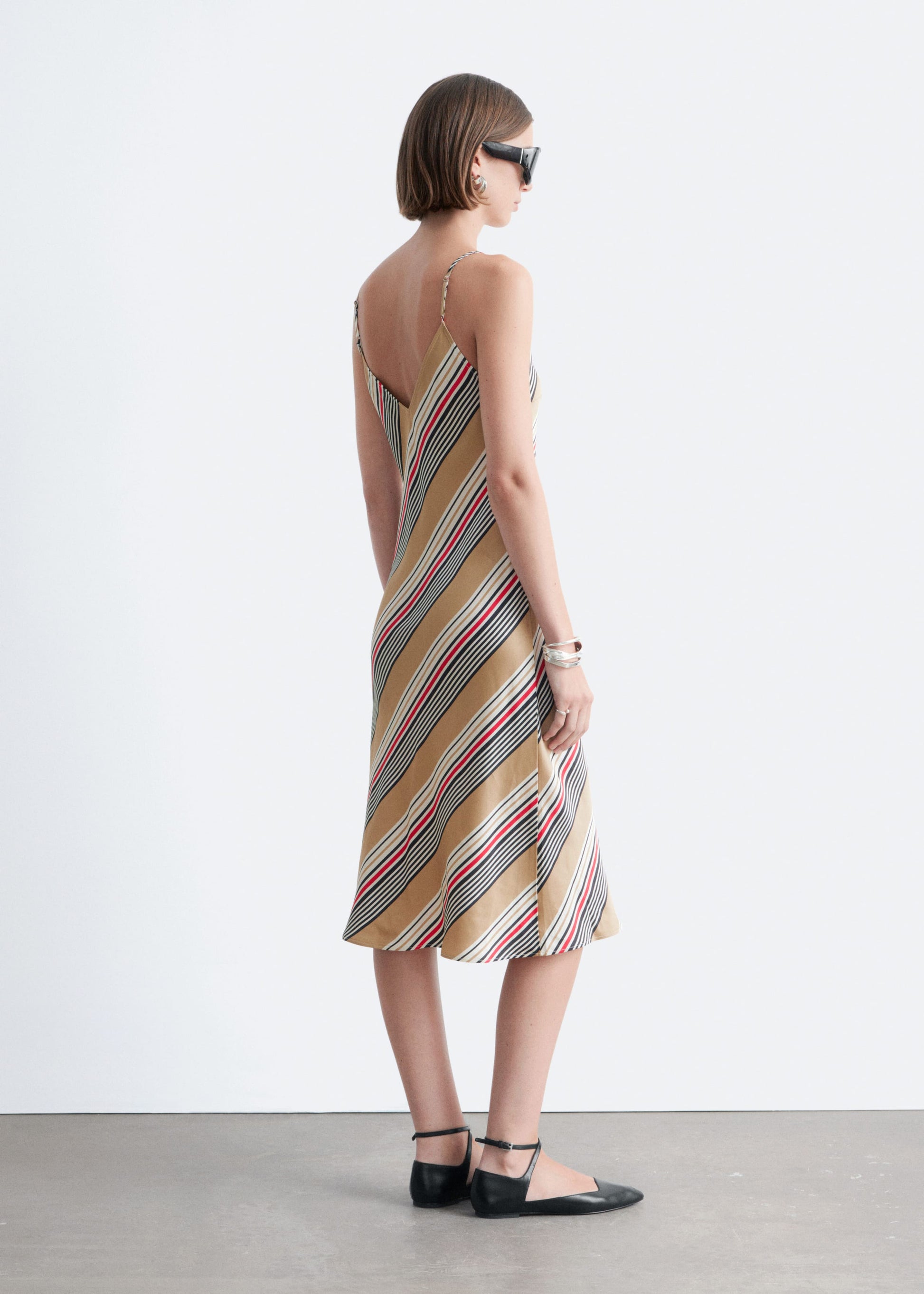 Crafted from pure satin, this slip dress is cut in a straight, fluid silhouette with bold graphic stripes. It features a V-neckline and slim adjustable shoulder straps. Wear it solo or layered over a fitted tee or shirt for modern edge.