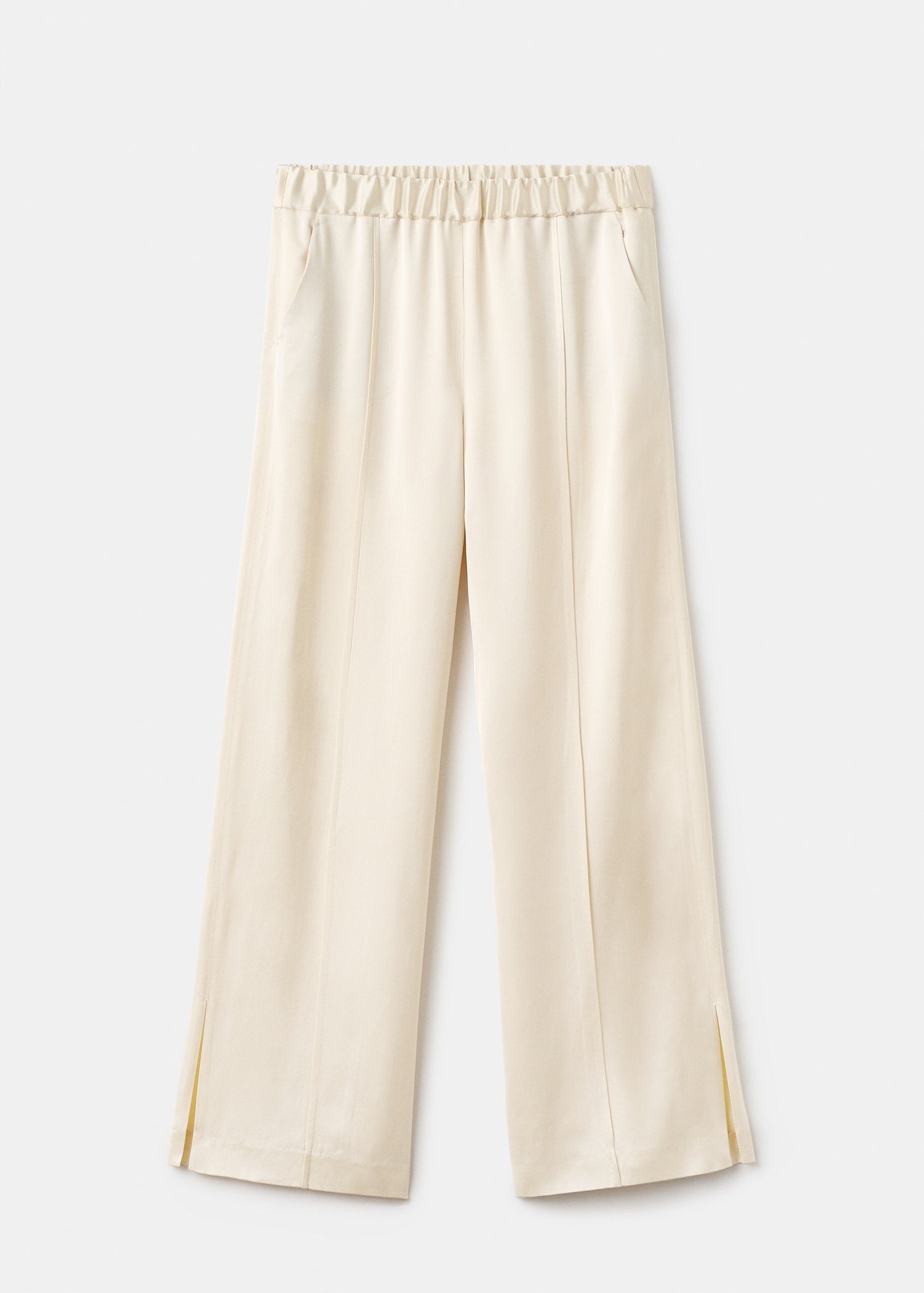 Satin fabric. Long design. Straight Design. Mid-rise. Elasticated waistband. Two side pockets. Seam detail. Side slit hem. No Fastening. Inner lining. Selection Collection.