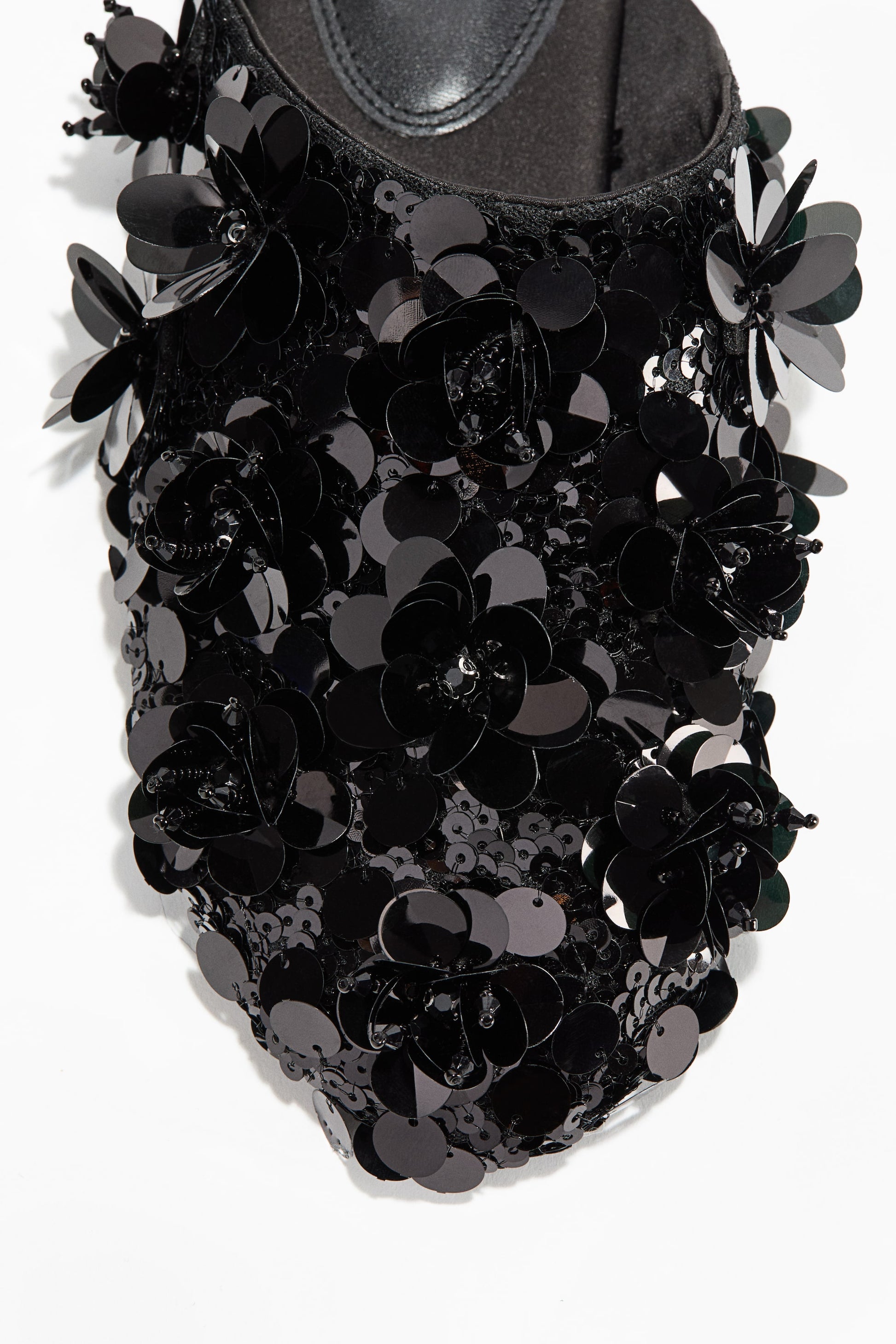 Slippers in soft velvet embellished with shiny sequins. Satin linings and insoles.