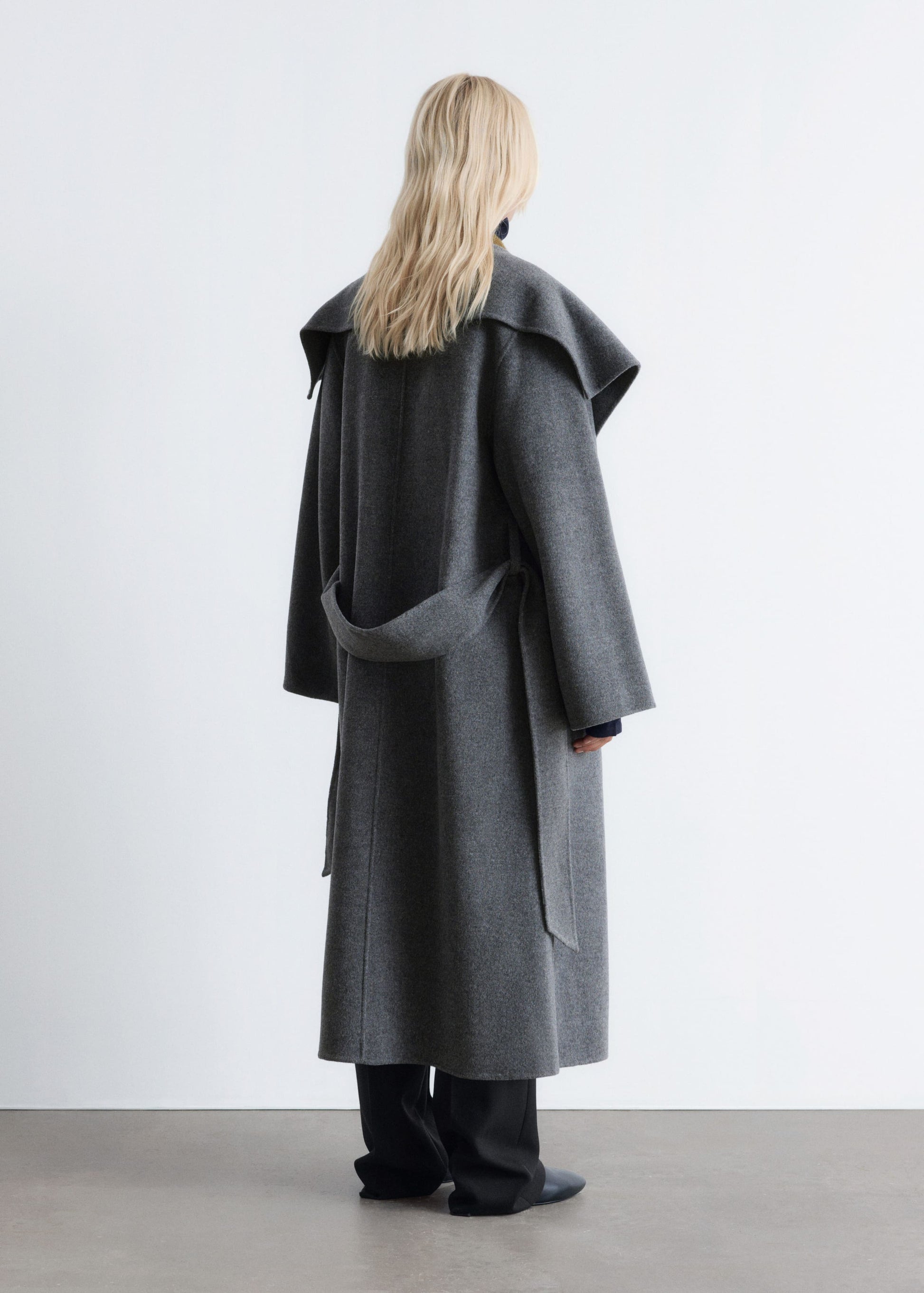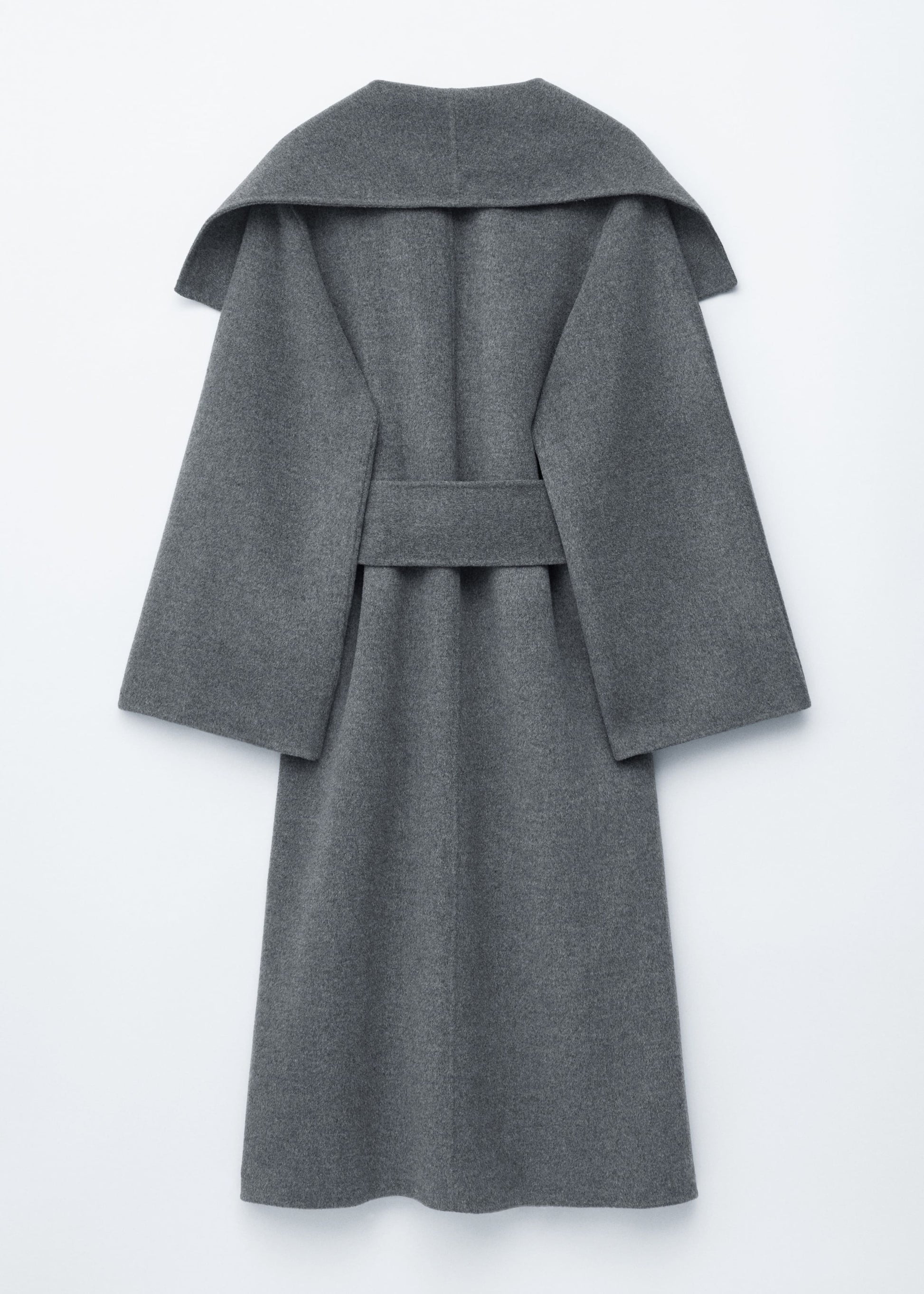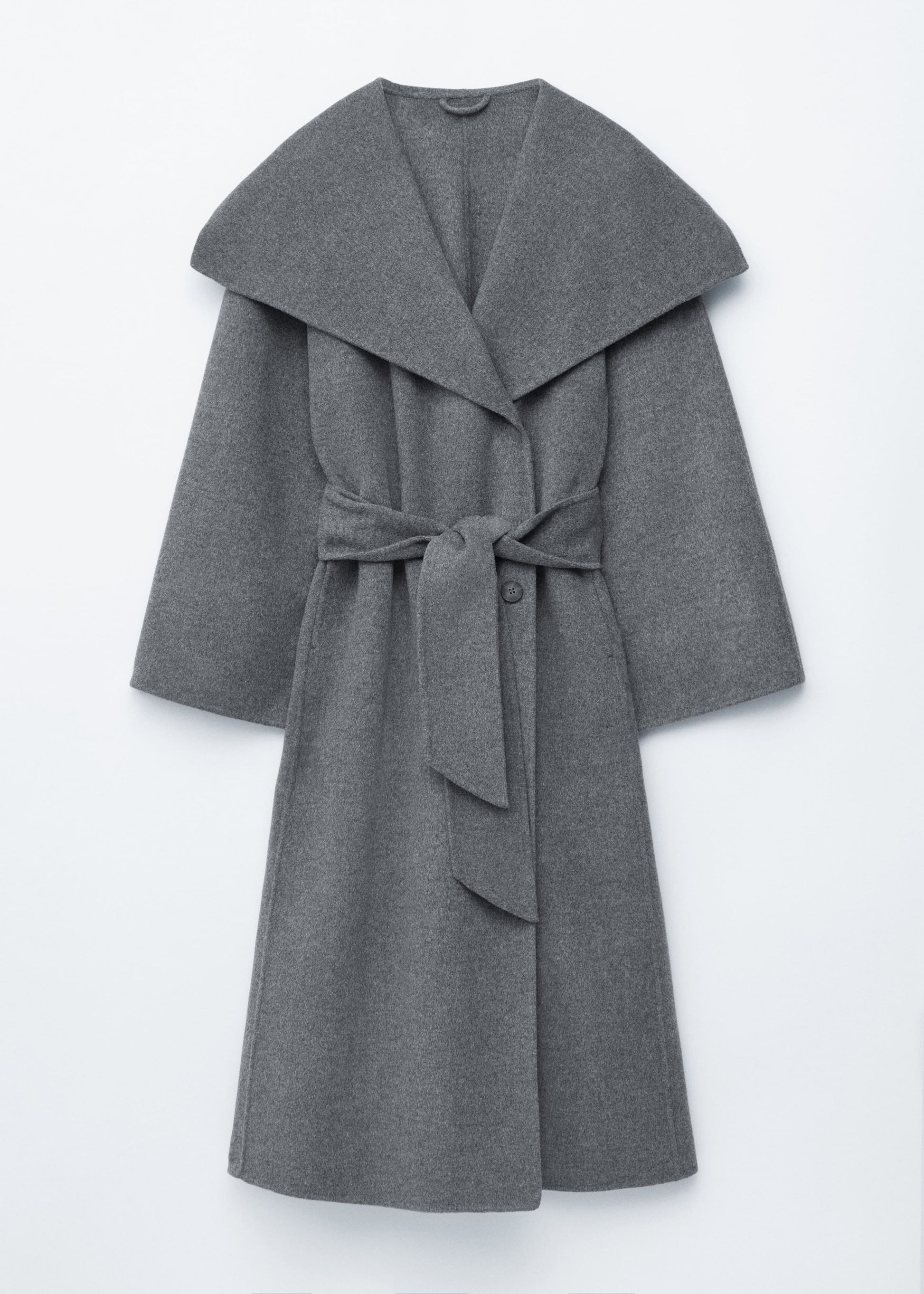 This maxi coat is crafted from a premium wool blend. Cut in a loose silhouette, it features a large shawl collar and a wide tie-belt to cinch the waist. Finished with two button closures at the front. The coat is unlined and detailed with internal bindings for a clean finish.
