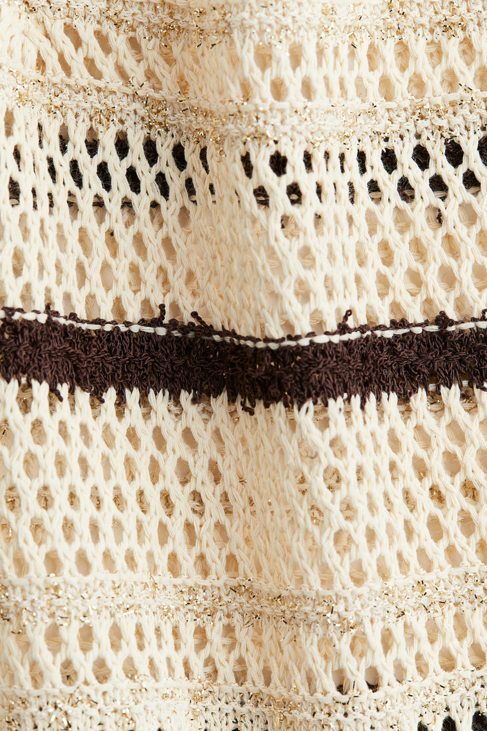 Short, fitted vest top in a hole knit containing shimmering threads. It features a cut-out section and a twisted detail at the front.