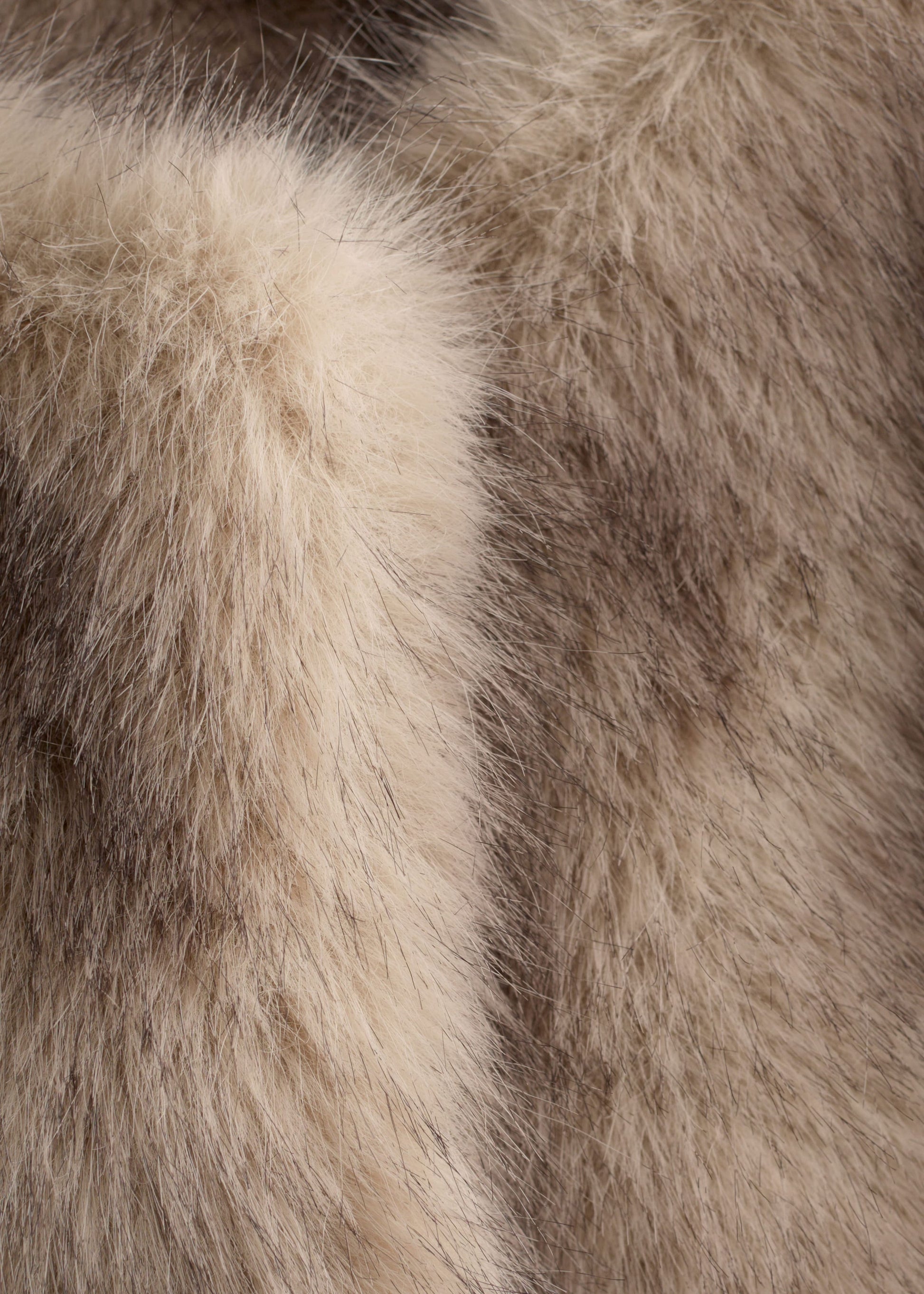 Crafted from soft faux fur, this jacket is cut in a short, boxy silhouette with a round neck and shaped sleeves. Finished with side seam pockets and hook-and-eye fastenings.
