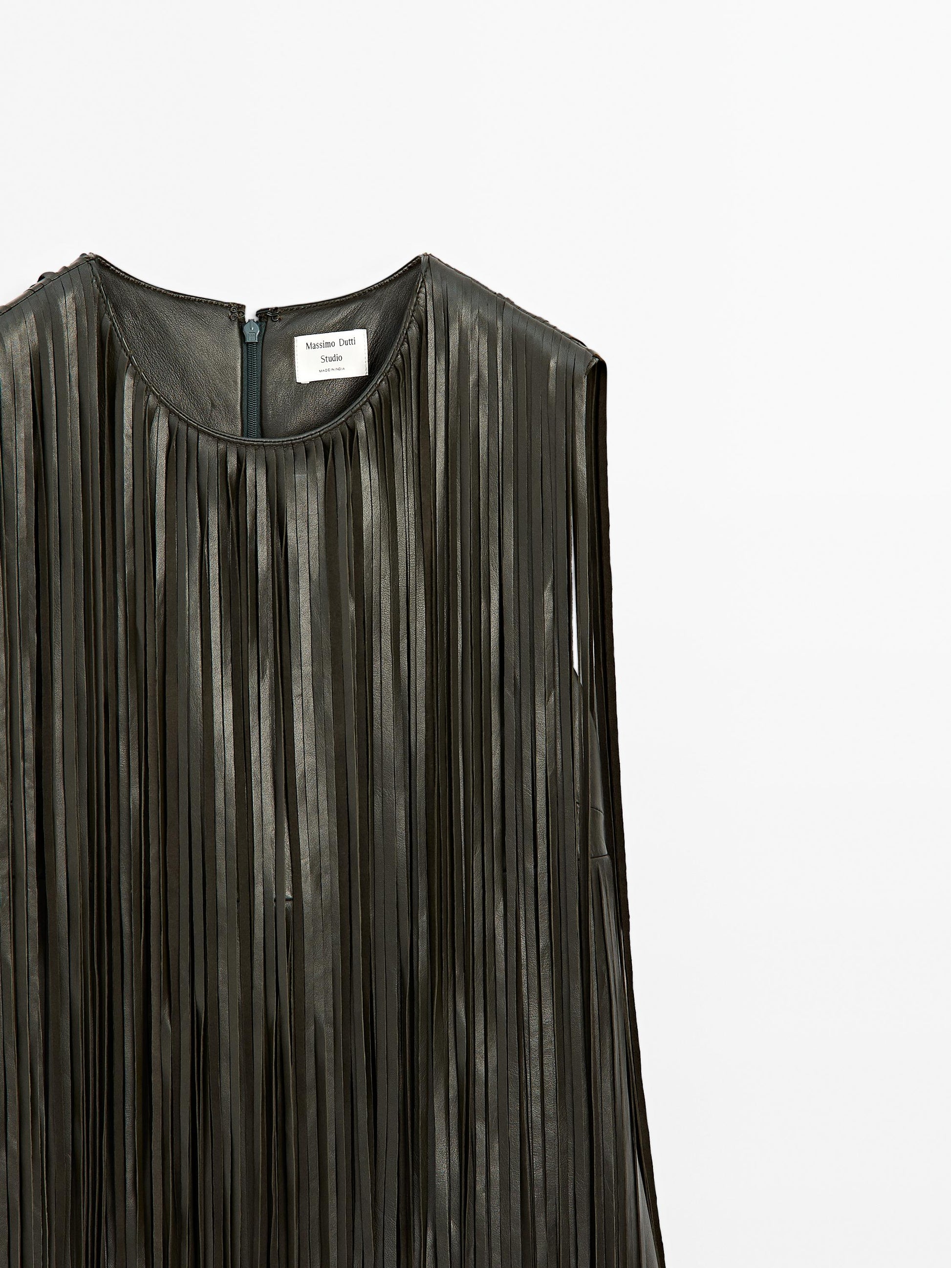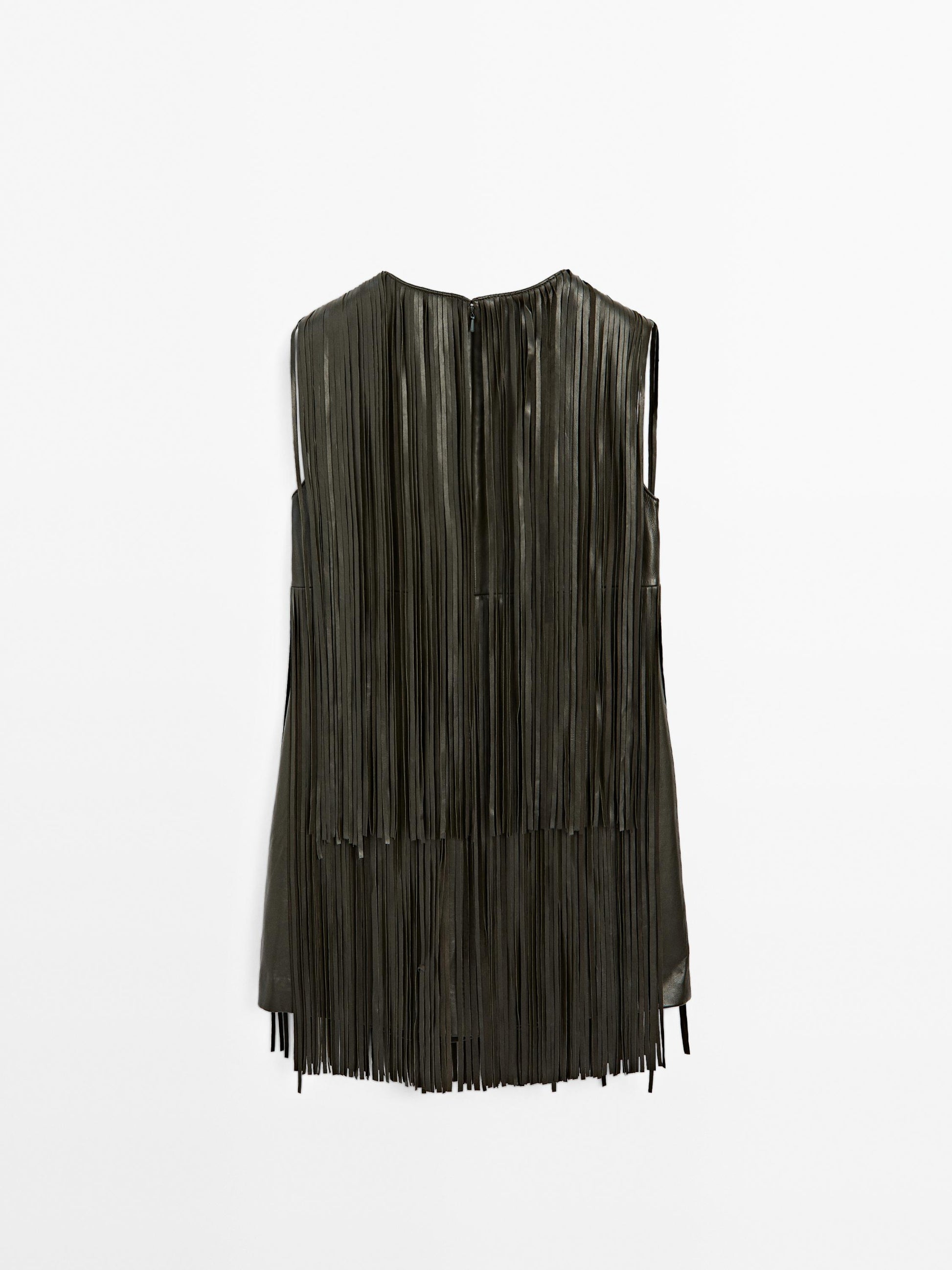 Mini dress made of sheepskin with nappa leather finish. Crew neck. Zip fastening at the back. Lined. Fringing detail. .