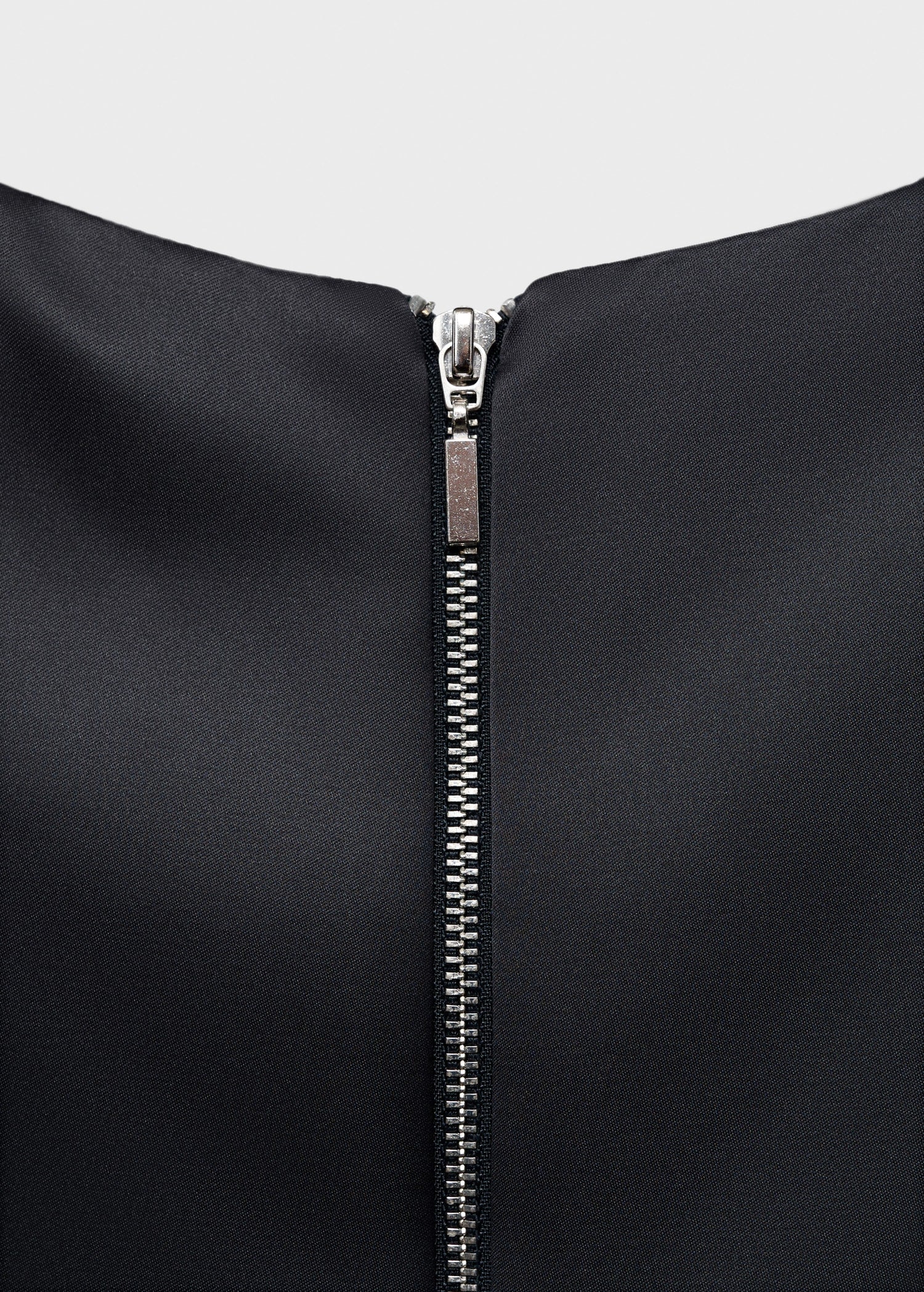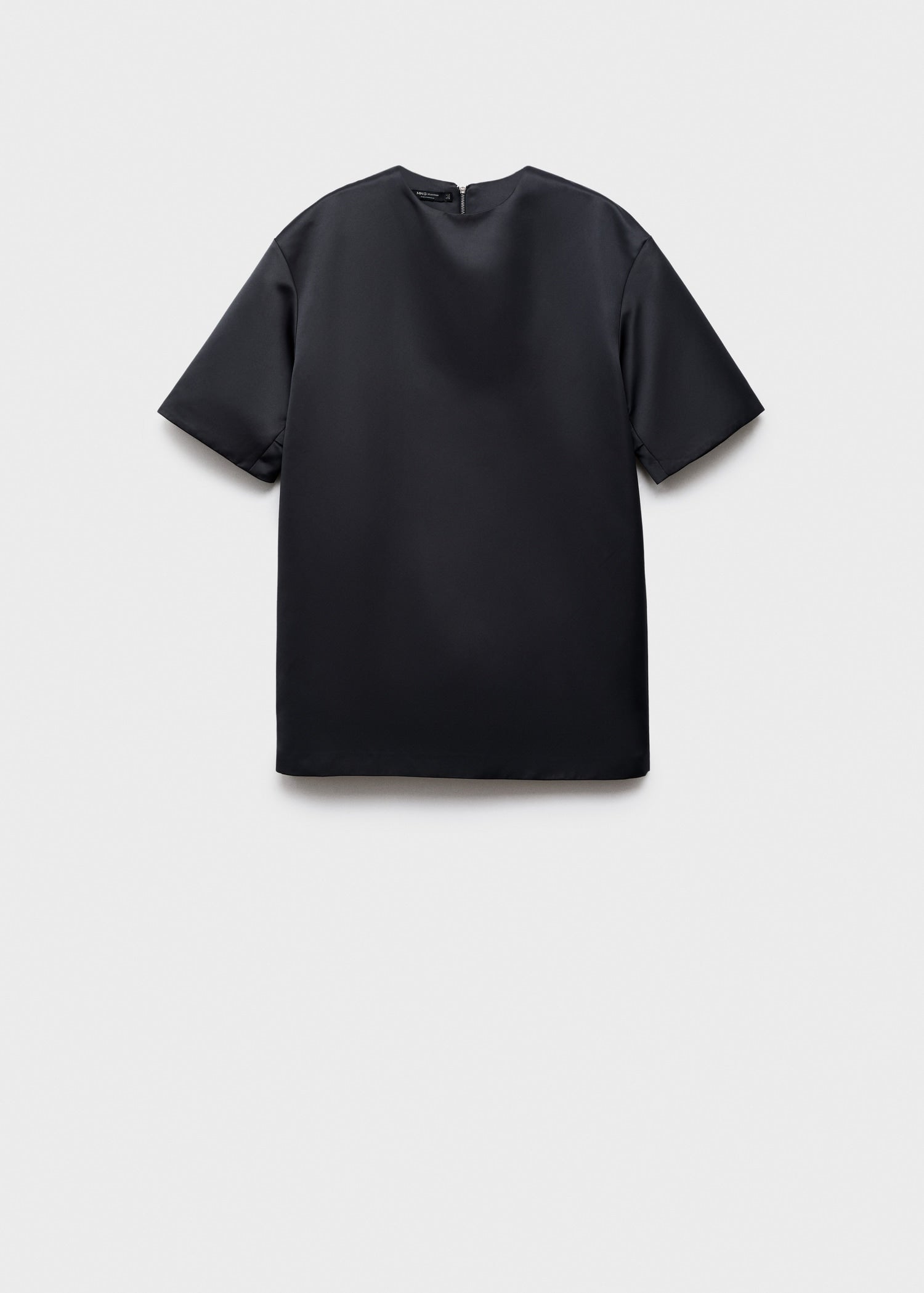 Satin fabric. Short design. Straight Design. Round neck. Short sleeves. Zip fastening on the back section. Inner lining. Selection Collection.