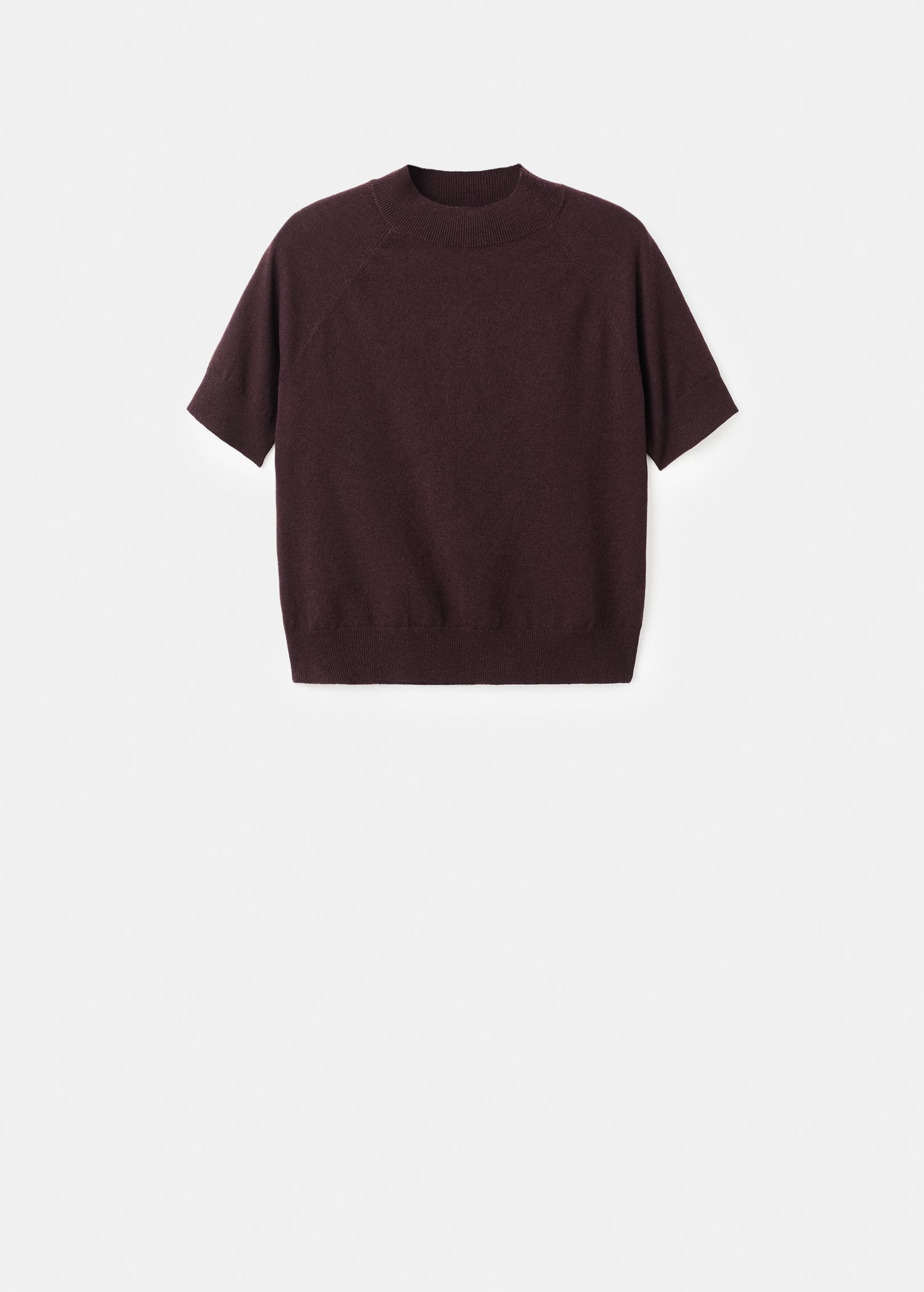 Crafted from a fine-knit wool-blend fabric, this design features a funnel neck and short sleeves. It comes with a matching skirt. Available in Plus Size