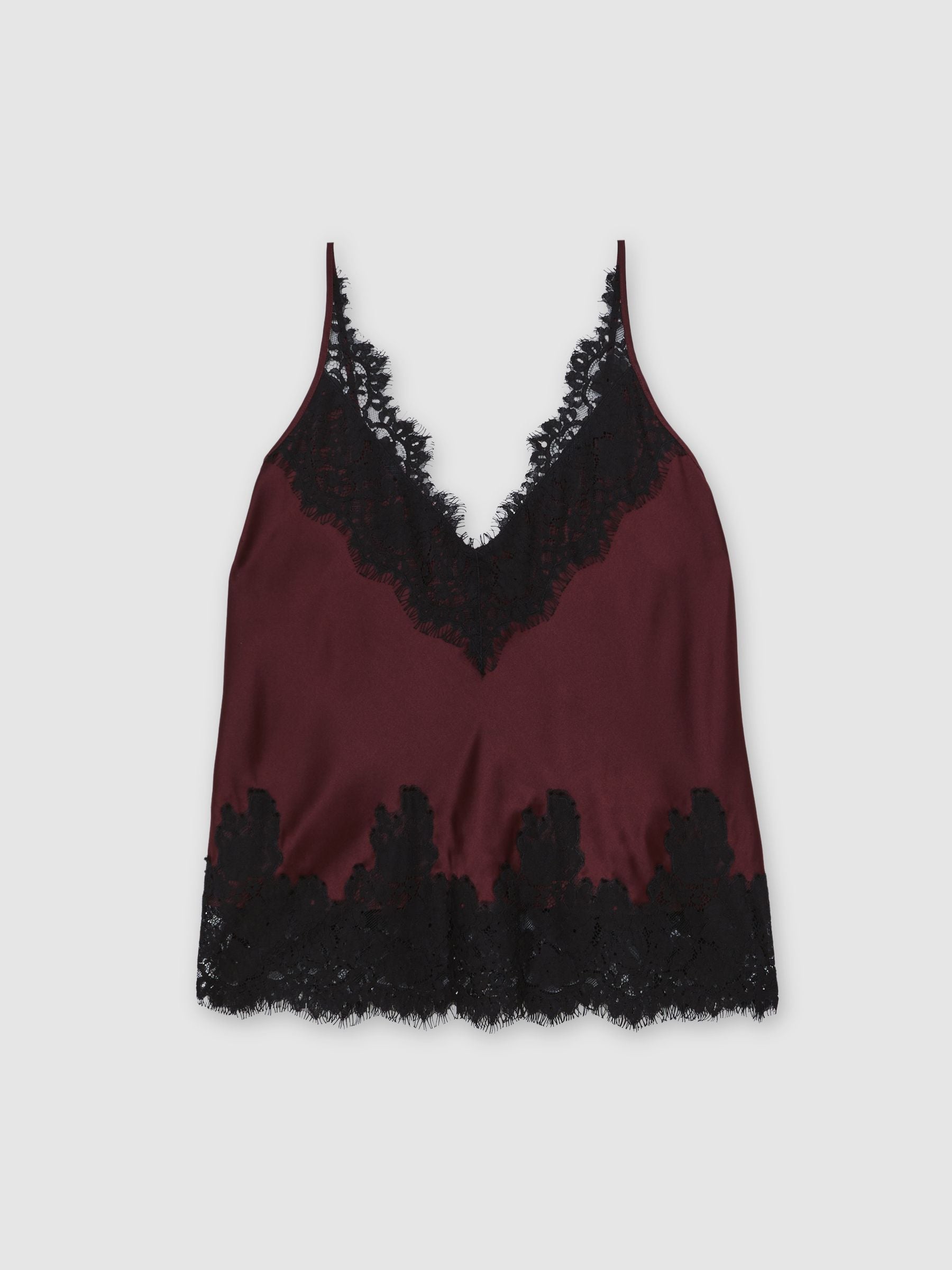 Main 100% Silk. Trim 63% Cotton, 37% Nylon.