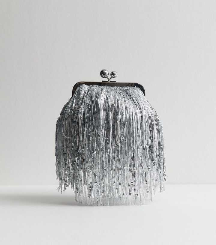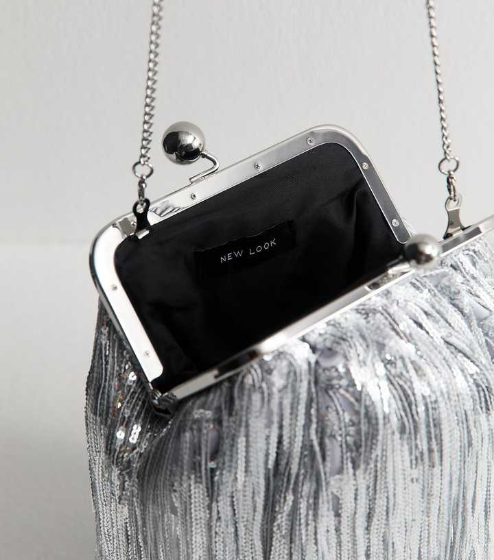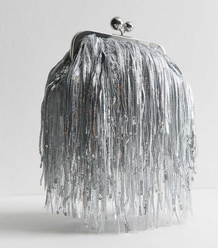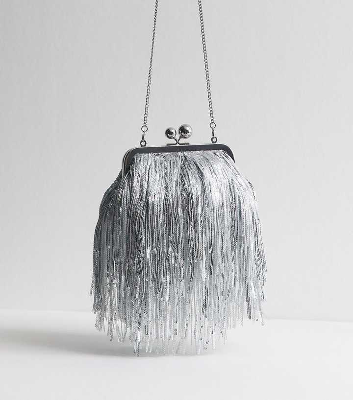 Sparkle through the night with this silver sequin tassel clutch. Its sleek design is ideal for evening outings or adding a touch of glam to your look.