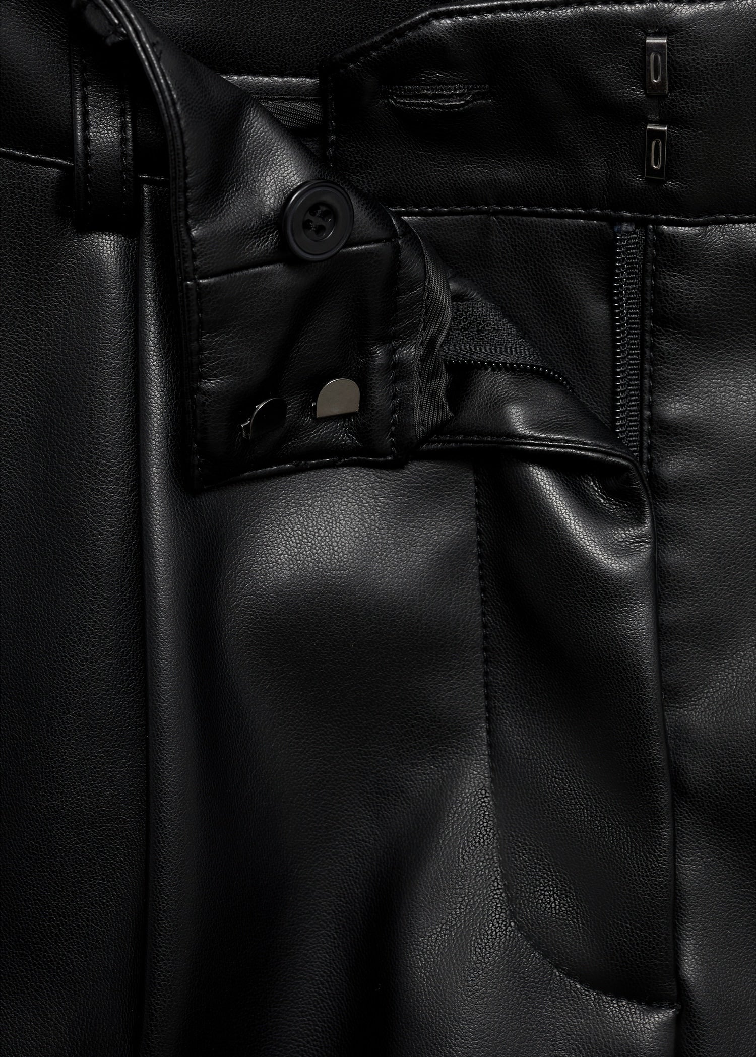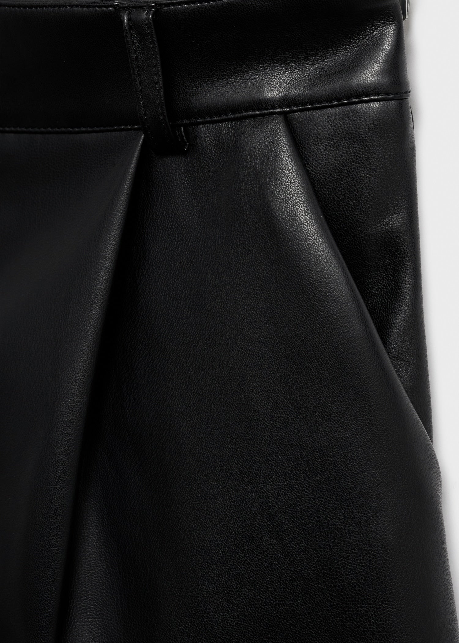 Crafted from leather-effect fabric, this short design features a mid-rise with belt loops and two side pockets. It includes pleat detailing and a concealed fastening with a button, hook and zip. Lined interior