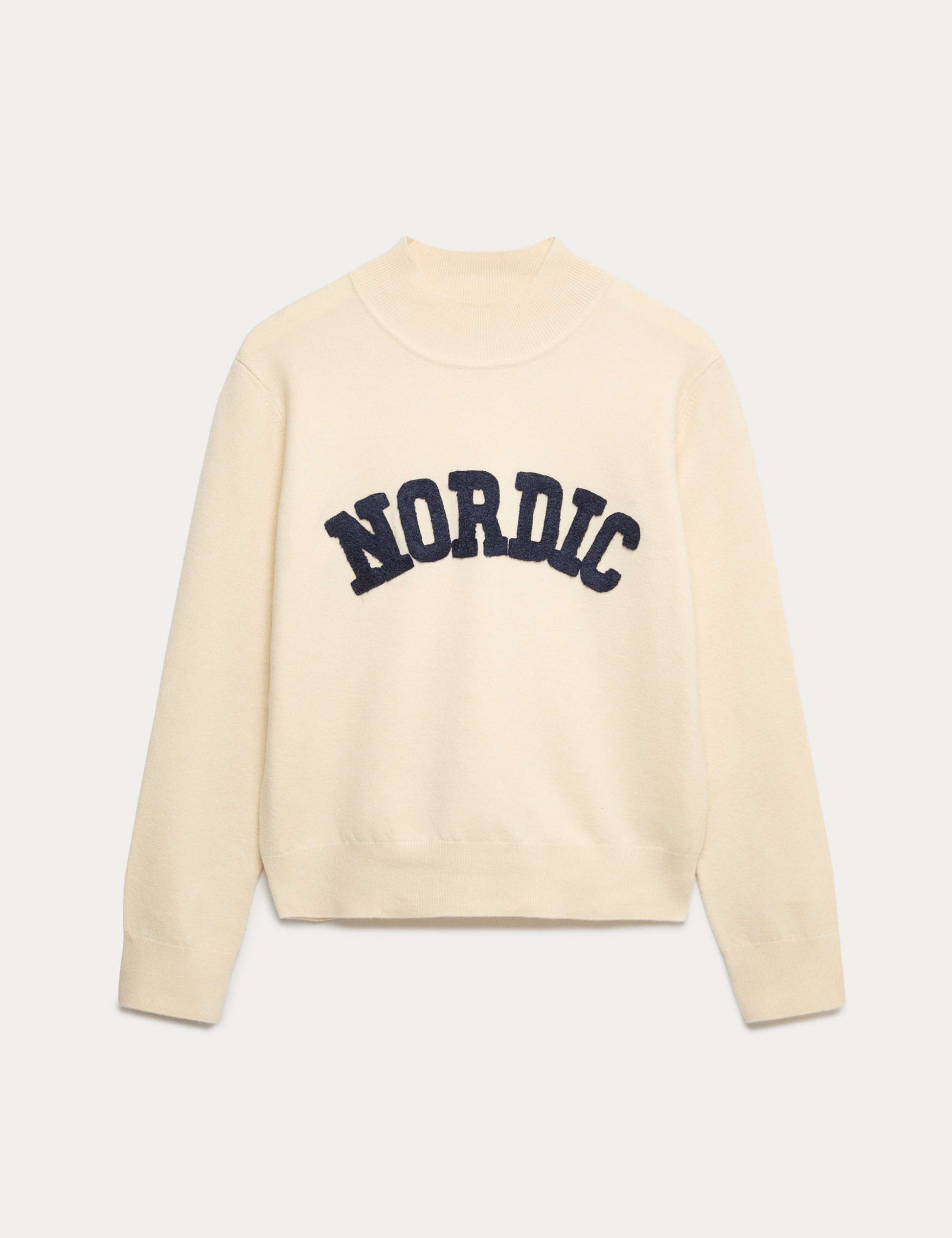 With a tactile 'Nordic' slogan on the chest, this jumper is a fun piece for your cold-weather wardrobe. It's designed in a regular fit, with added stretch for comfort. The cosy funnel neck and ribbed trims create a neat finish.