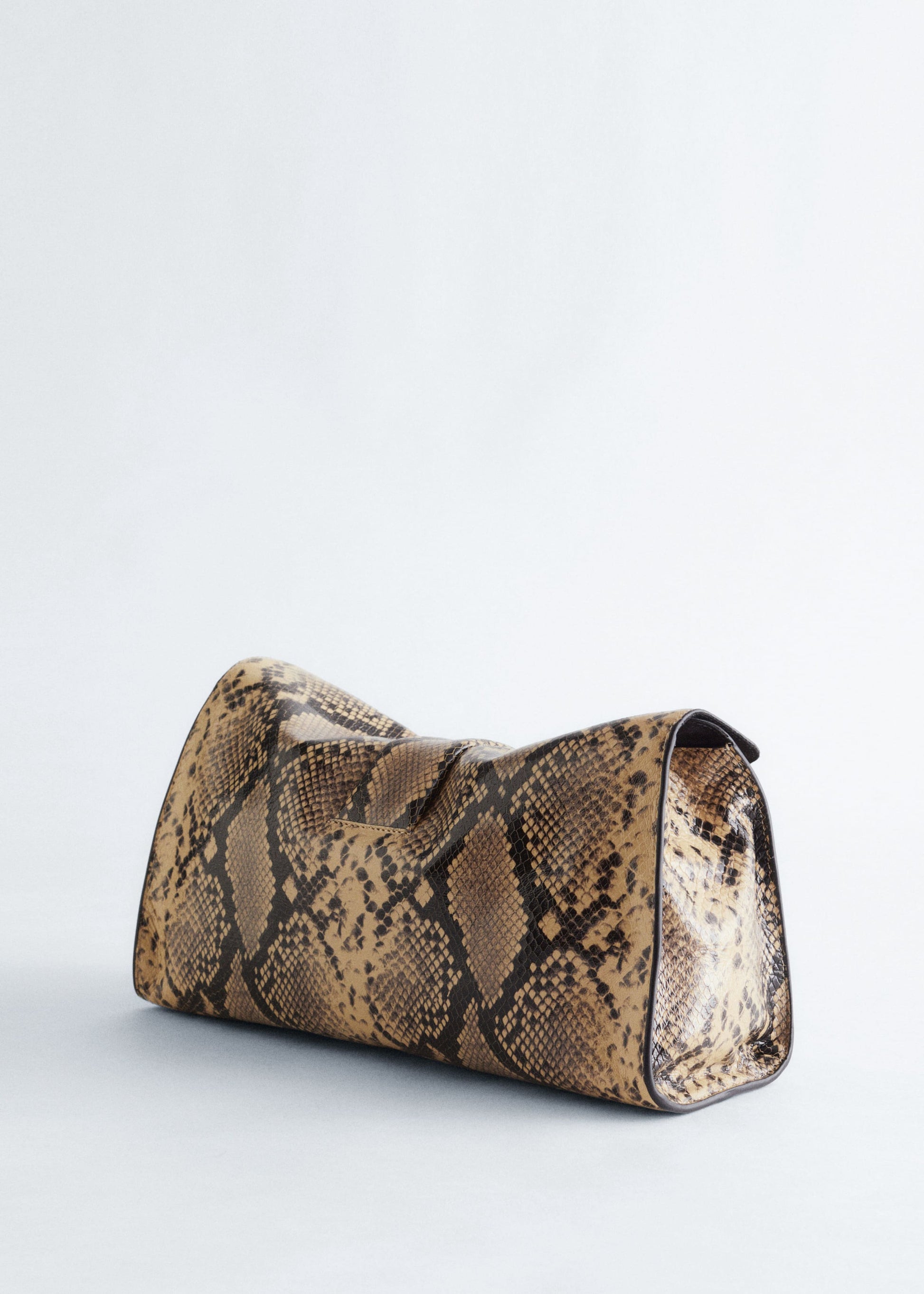 Crafted in India from supple leather, this soft clutch features a flap with an additional tab and a concealed magnetic fastening at the top. It includes a detachable, adjustable shoulder strap for crossbody wear, and an open inner pocket for storing smaller essentials.