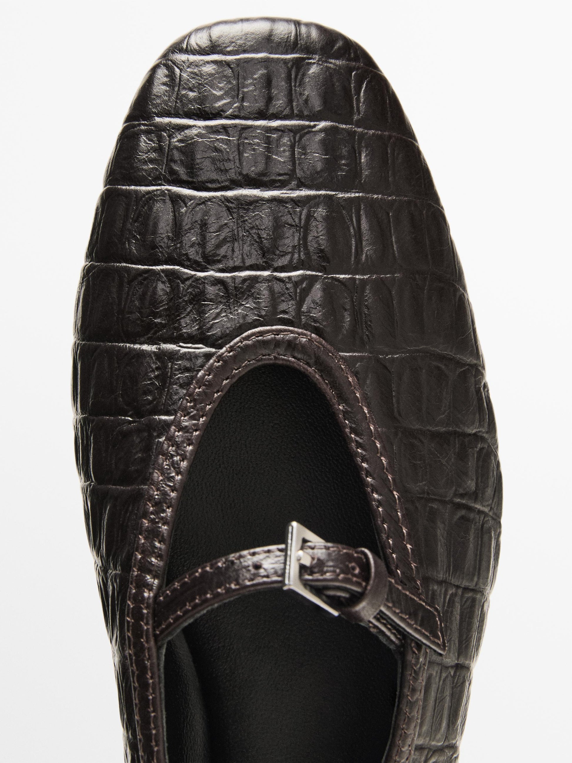Soft leather. Leather lining and insole . Made of cowhide leather with a mock croc finish. Leather strap with metal buckle closure. Includes AIRFIT® insole: Flexible technical foam insole, designed to offer greater comfort.