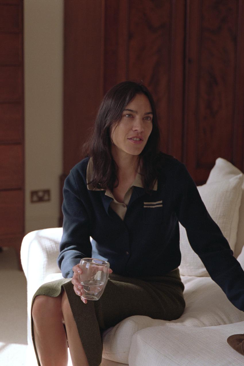 Flat shoes in split suede. Upper with contrasting topstitching. Front with elasticated straps and clip fastening. Rear pull tab. Round toe.