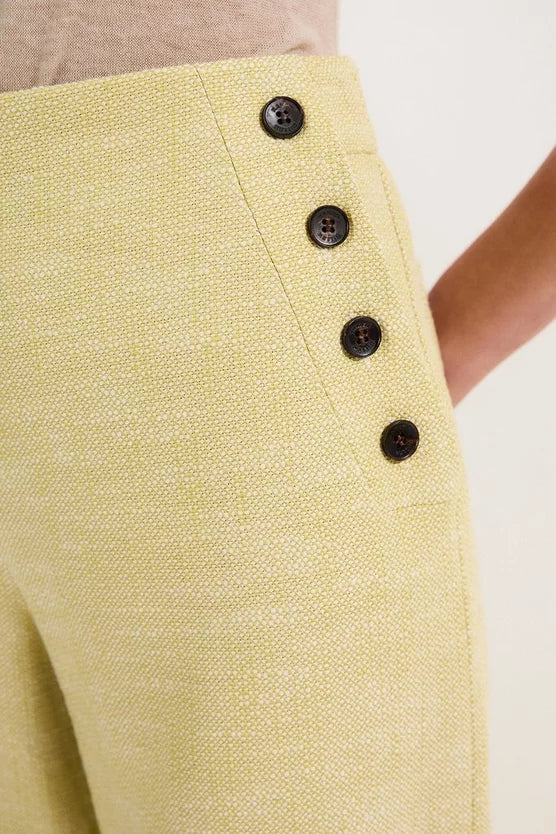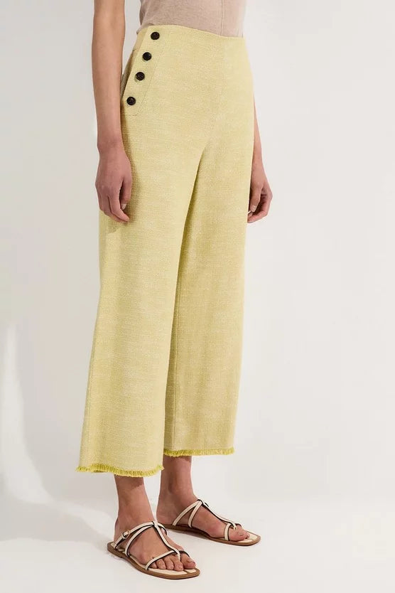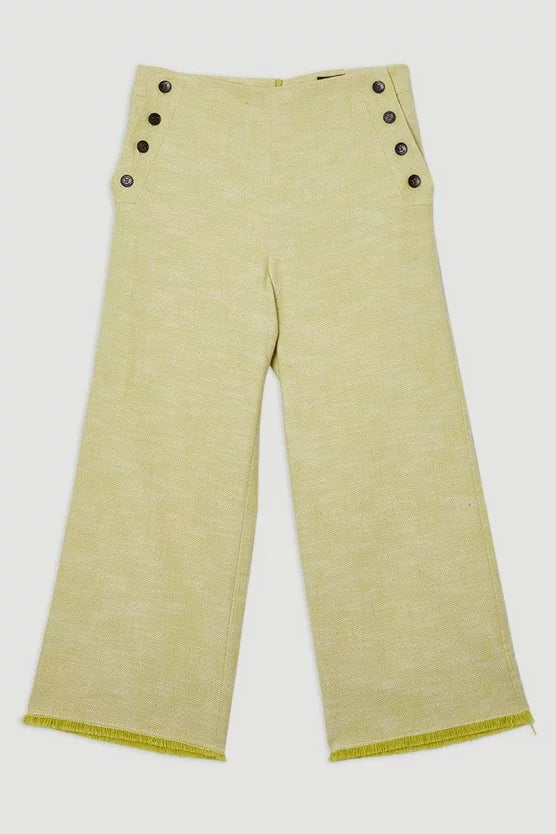 Spring Tweed Tailored Button Detail Cropped Wide Leg Trousers