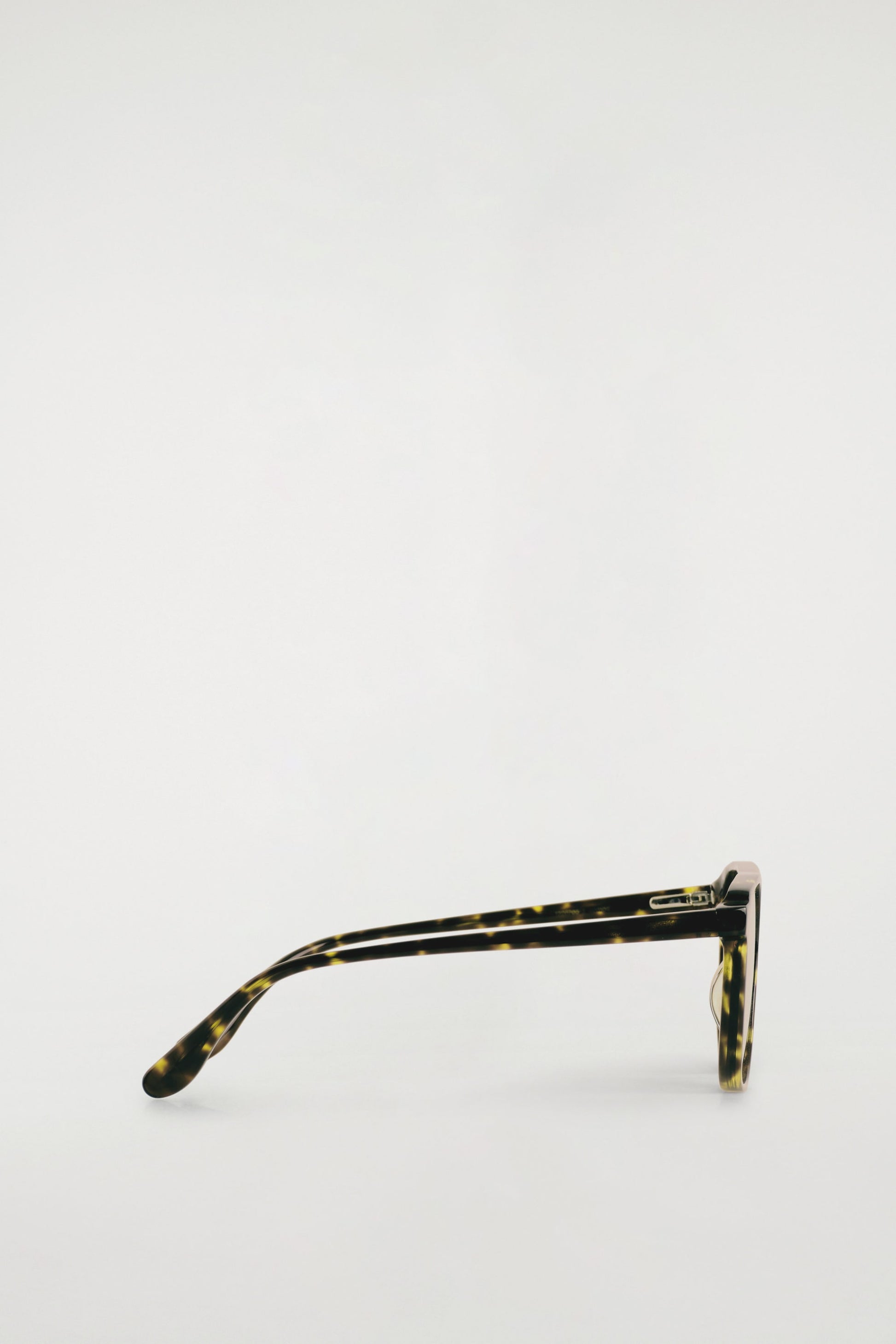 Archival shapes are reinterpreted with modern design details this season. These classic aviators are designed with tortoiseshell-effect square frames that subtly contrast the tinted yellow lenses.