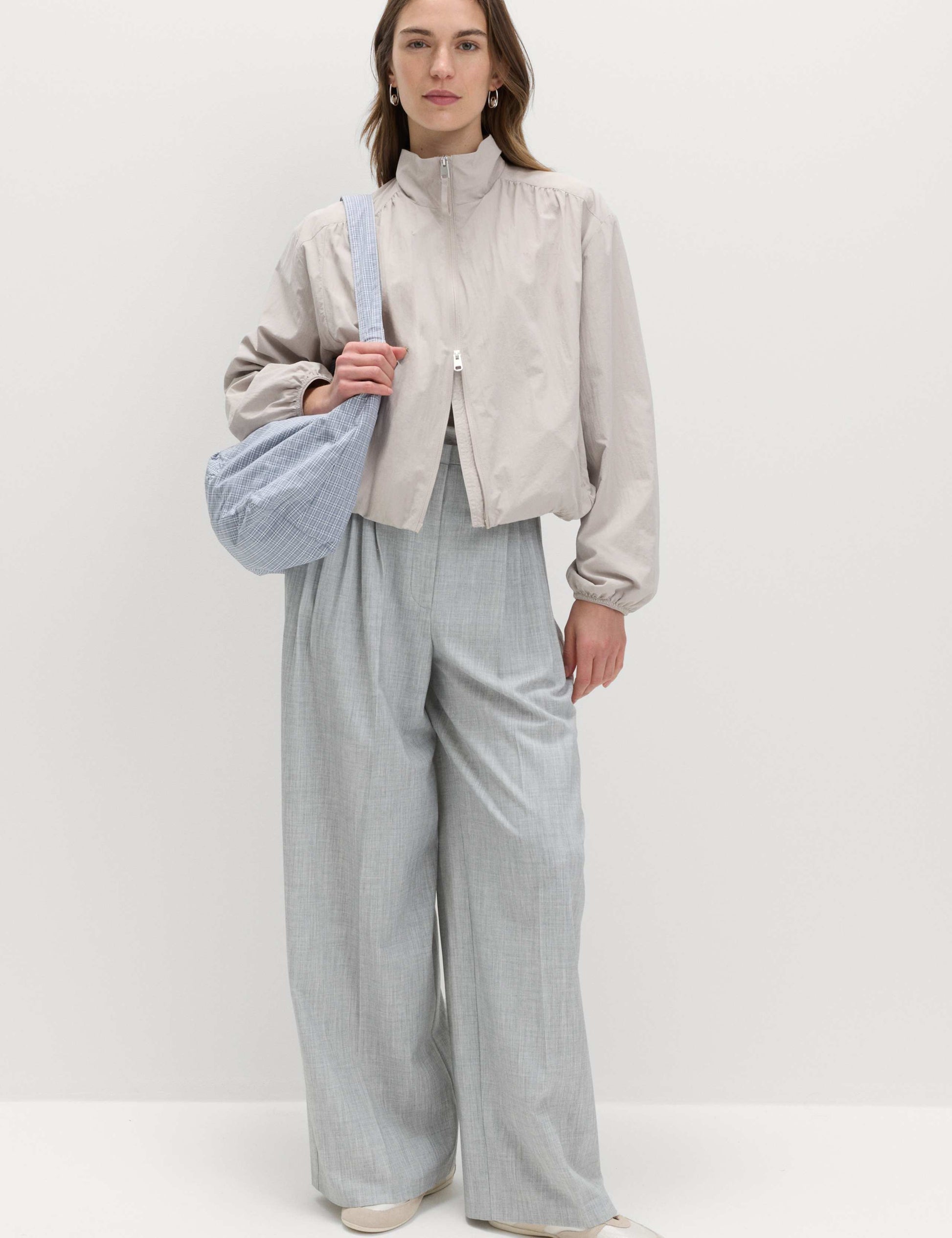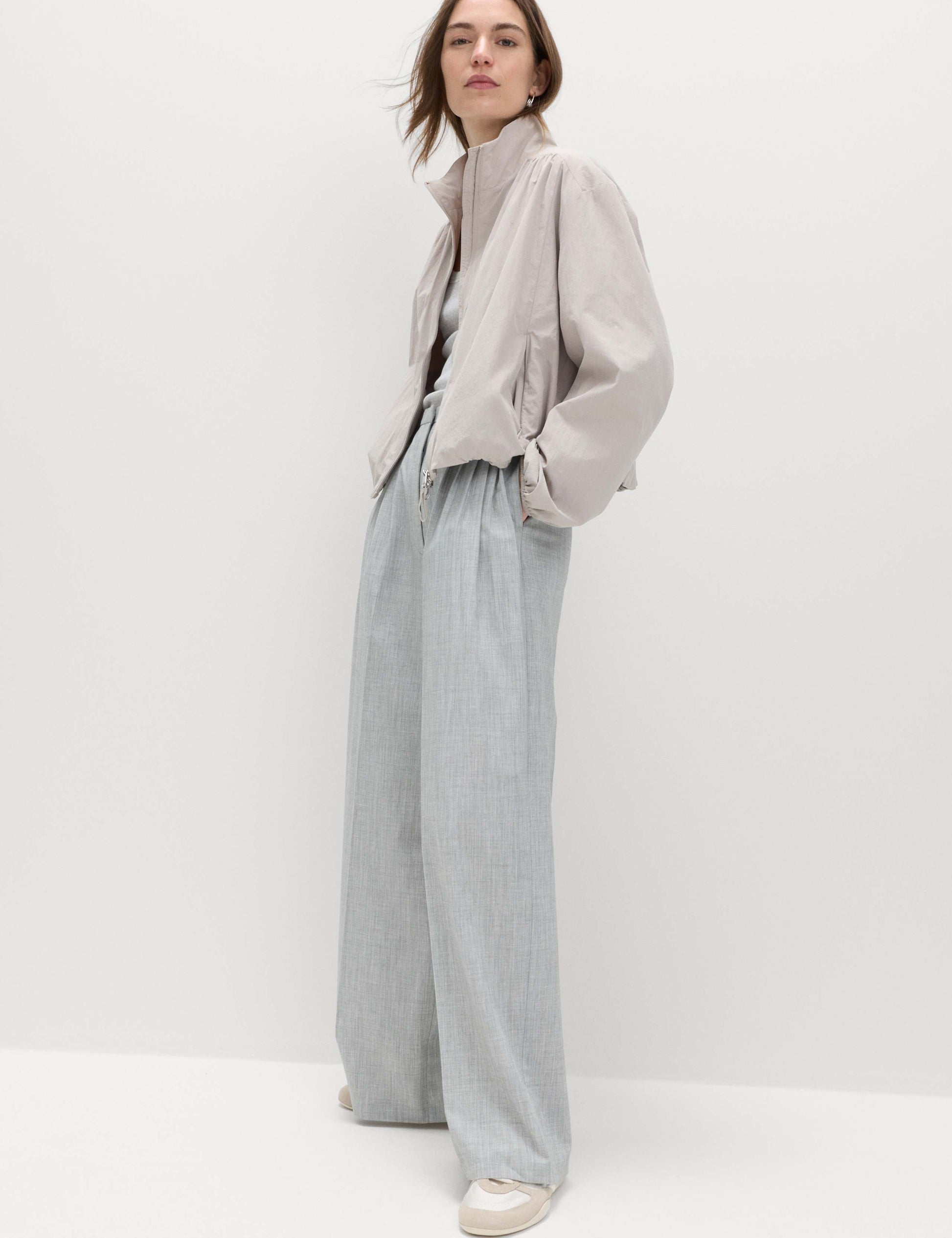 Complement athleisure style with this lightweight funne-neck jacket, featuring our shower-resistant Stormwear coating. It has a comfortable regular fit with dropped shoulders for a laid-back feel featuring subtle gathered detailing. It features discreet zipped pockets and elasticated cuffs and hem for a sporty shape. Fastens with a zip. M&S Collection combines classic and contemporary style.