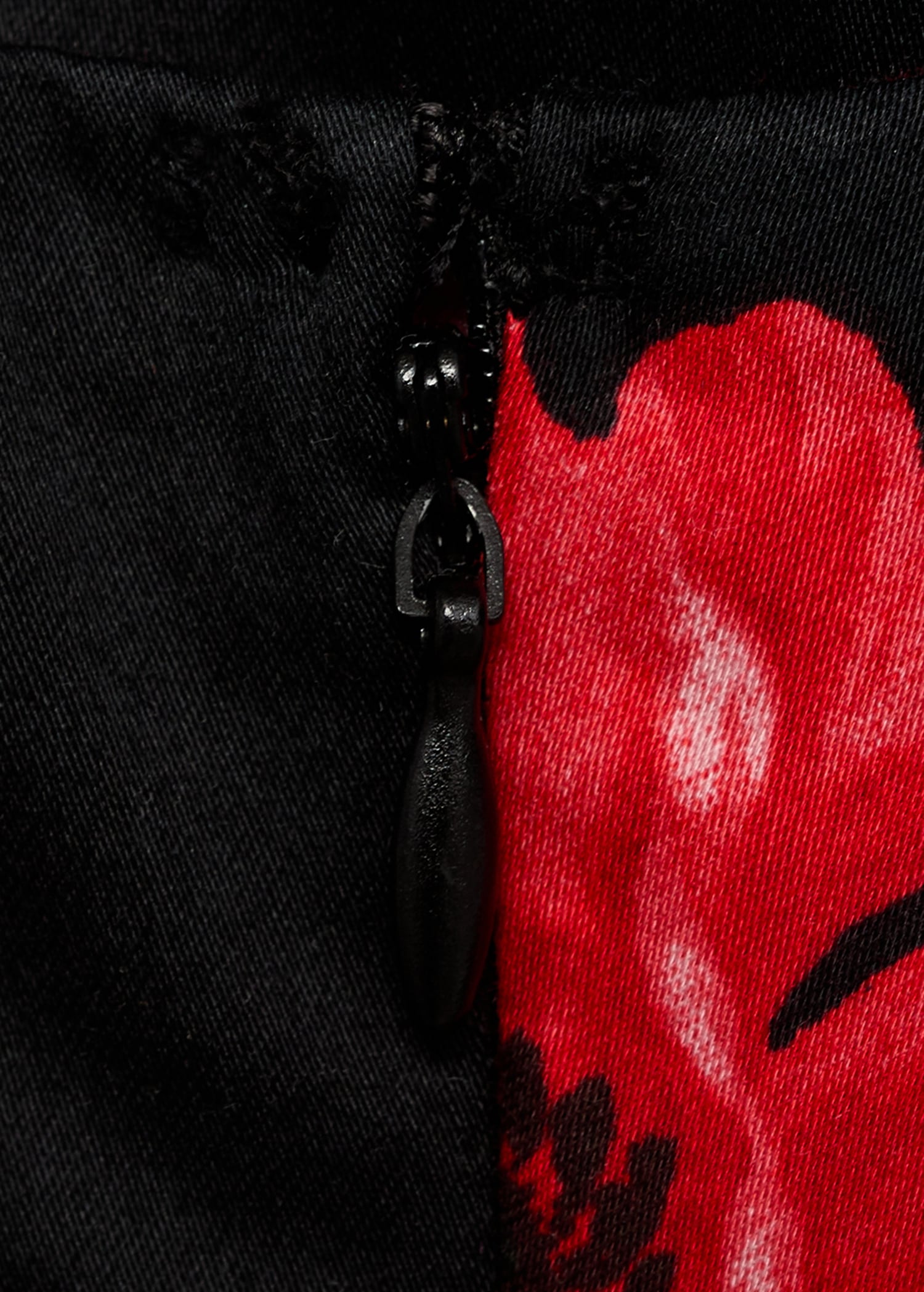 Cotton fabric. Short design. Fitted design. Flowers print. Strapless neckline. Sleeveless. Side pleats. Zip fastening on the back section. 100% cotton lining.