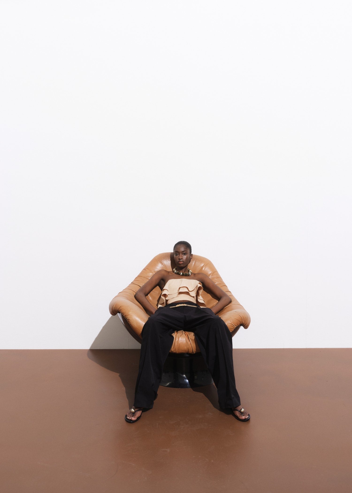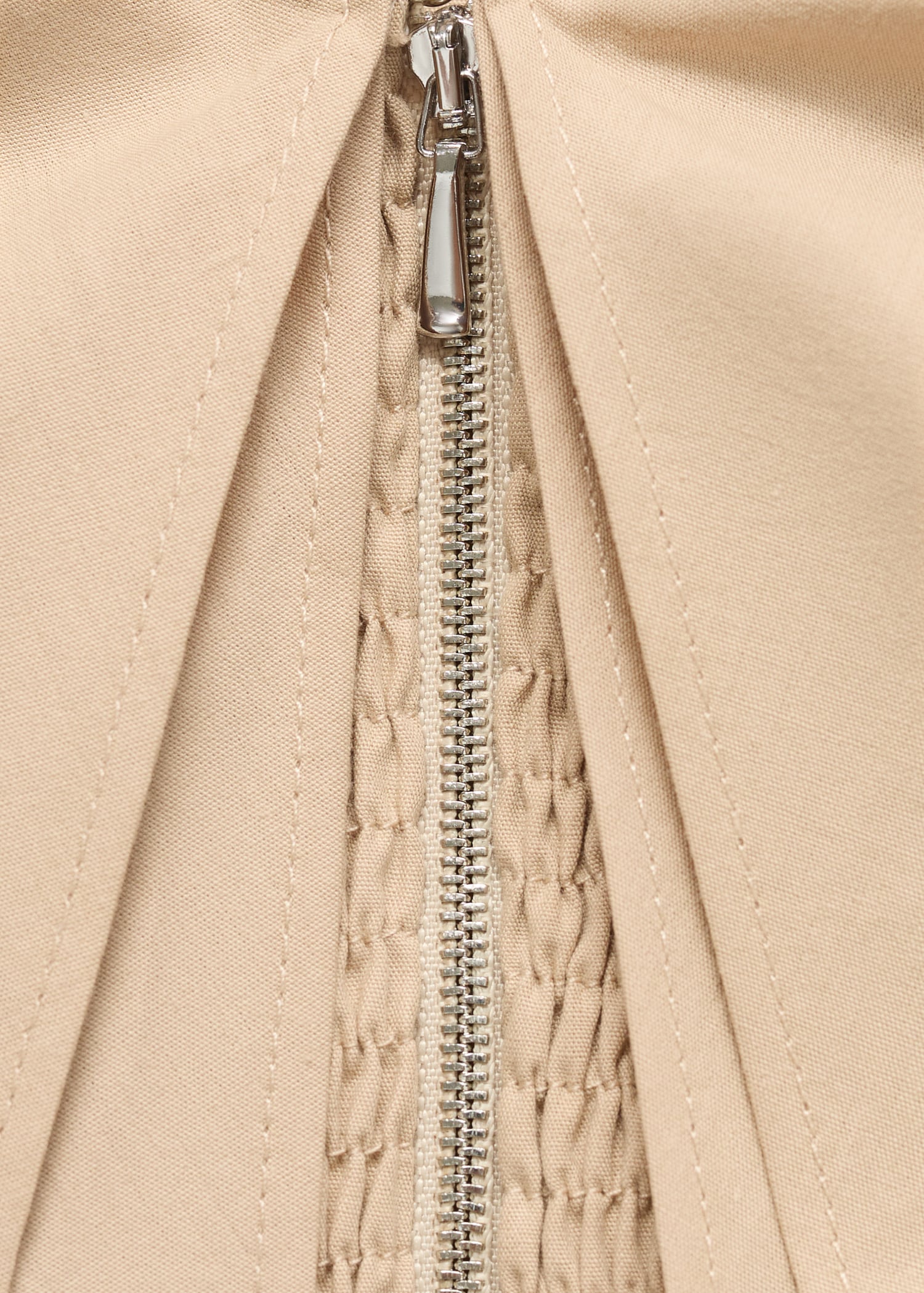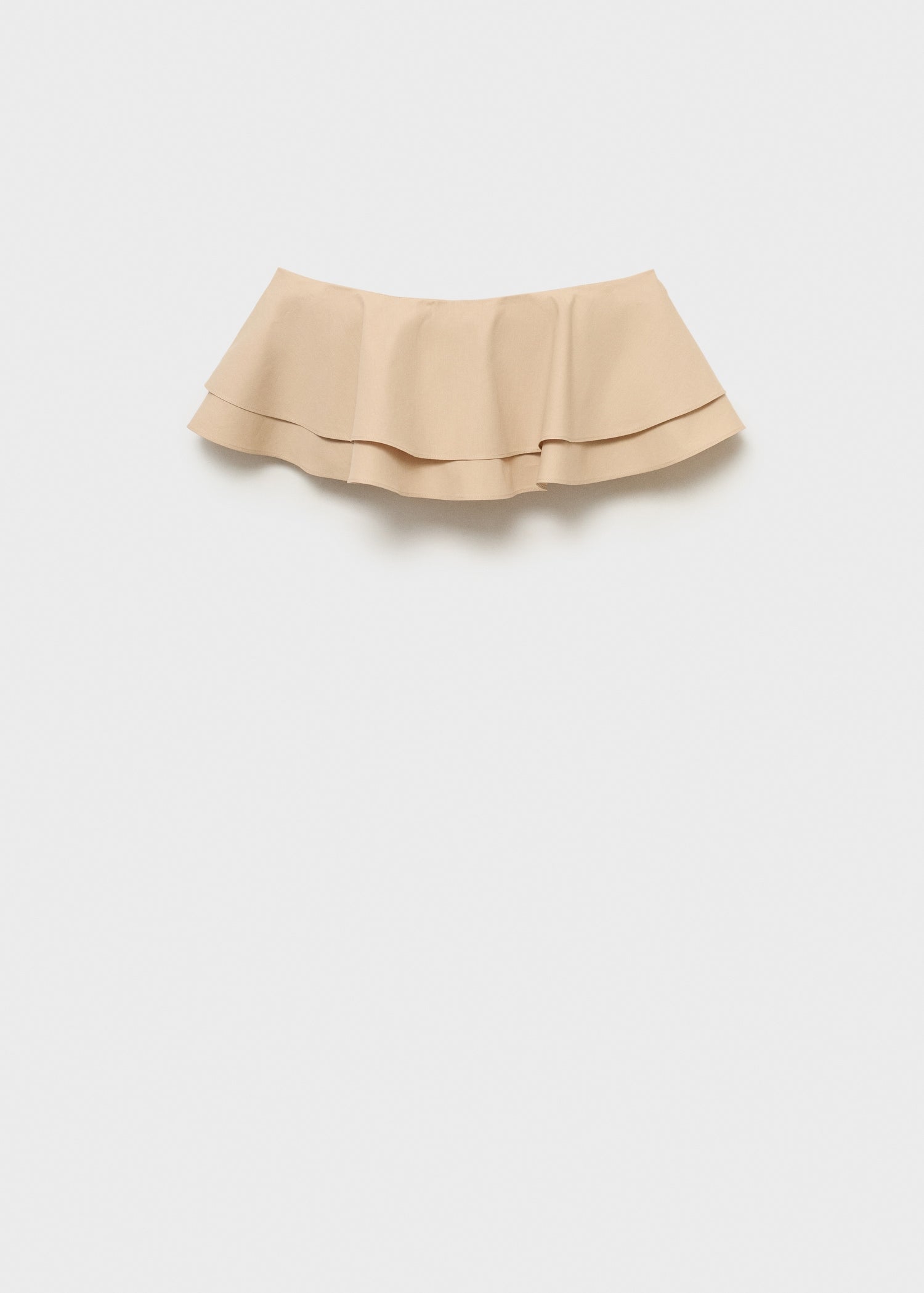 100% cotton fabric. Crop design. Ruffle design. Strapless. Elastic ruched panel at back. Zip fastening on the back section.