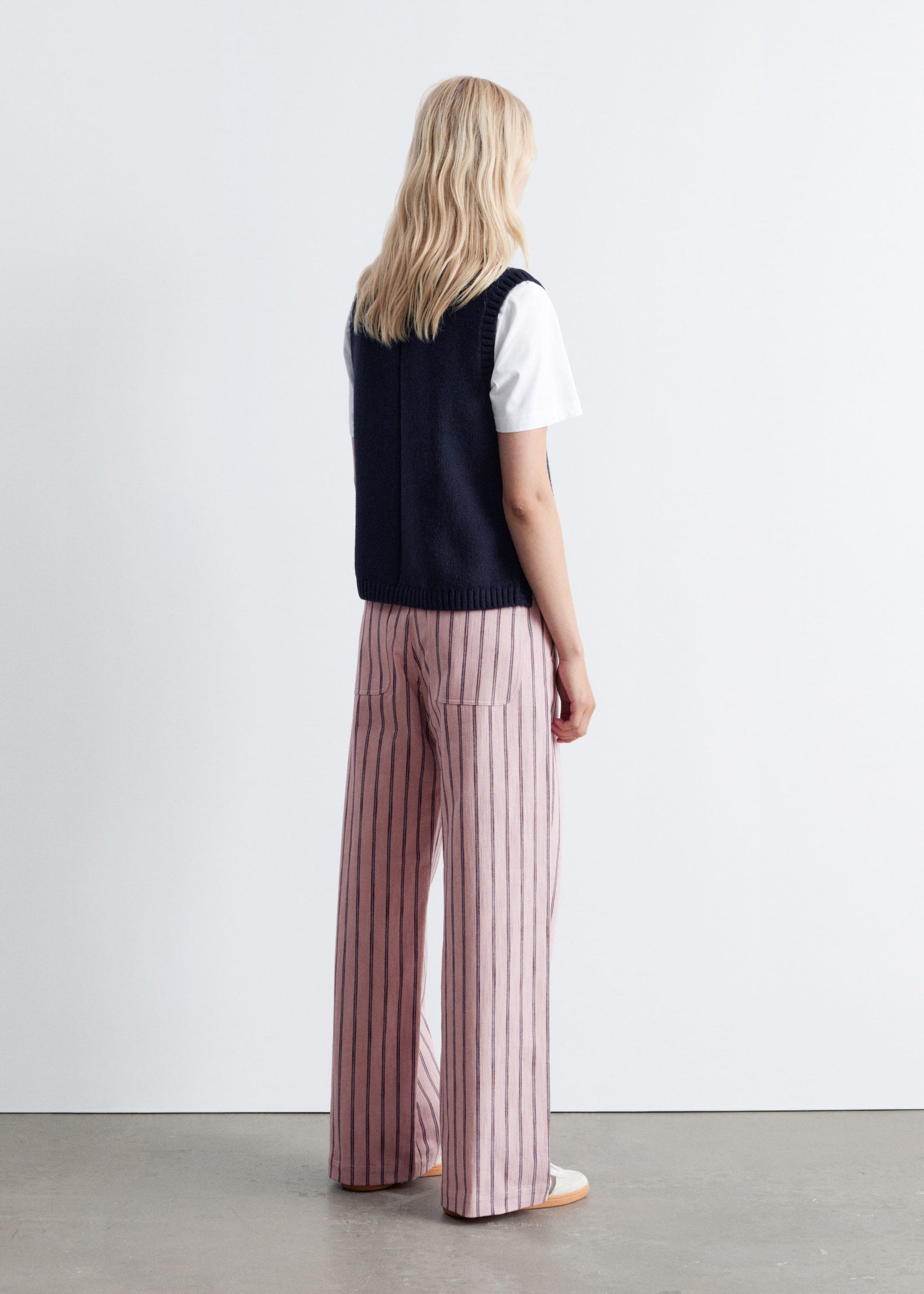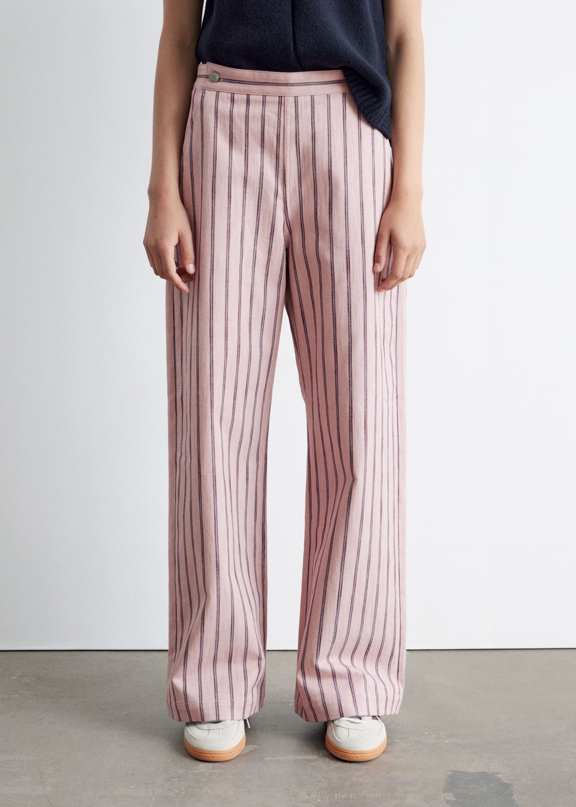 Made from 100% pure cotton, these trousers feature a relaxed fit with full-length, straight legs. Designed with vertical stripes and button details at each side of the waistband, and finished with an invisible side seam zipper with button closure.