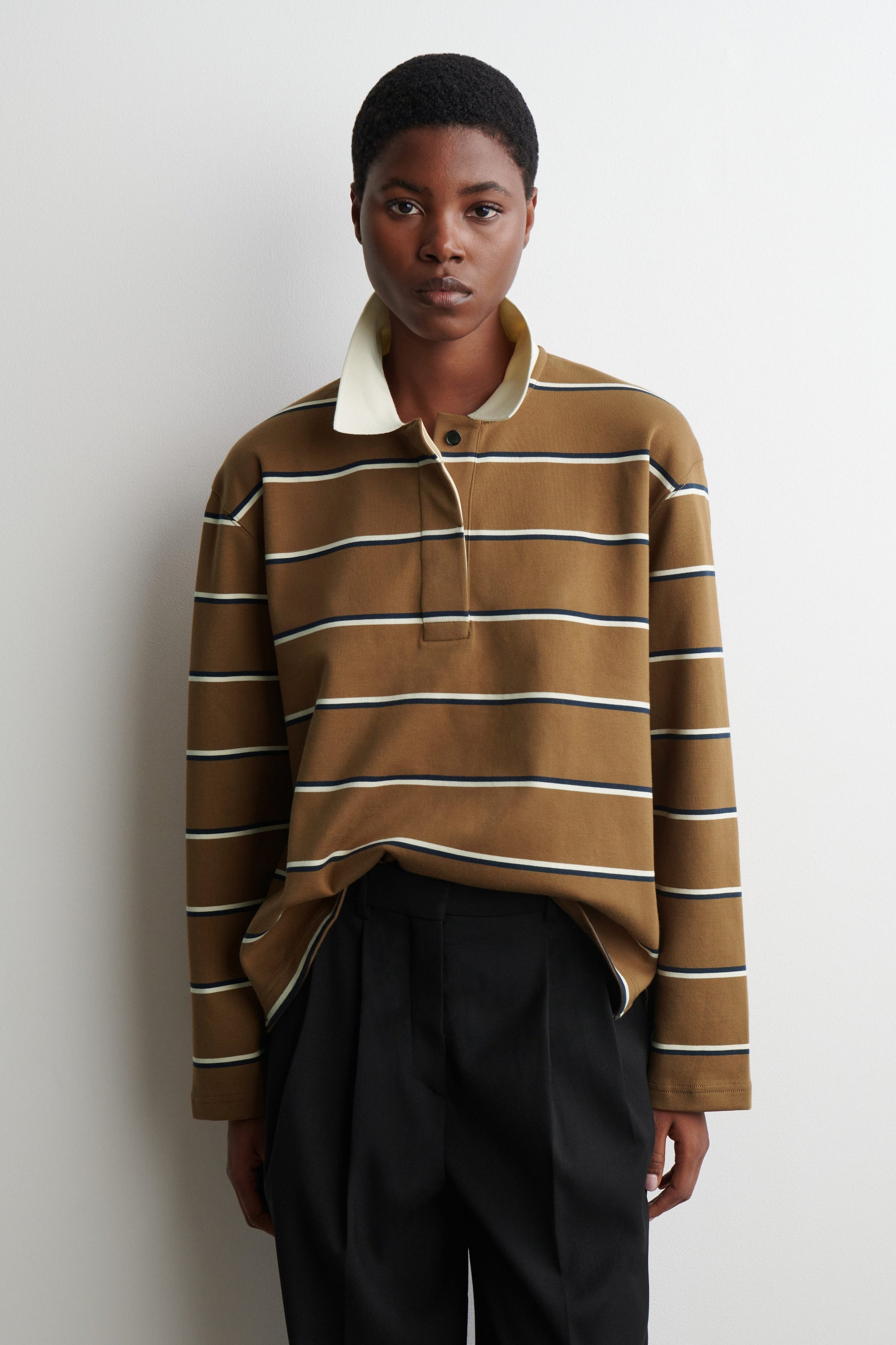 Made from soft cotton, this top is a laid-back take on the classic polo. It's patterned with contrasting stripes and designed with a spread collar, long sleeves and a minimal concealed placket. Style it with denim.