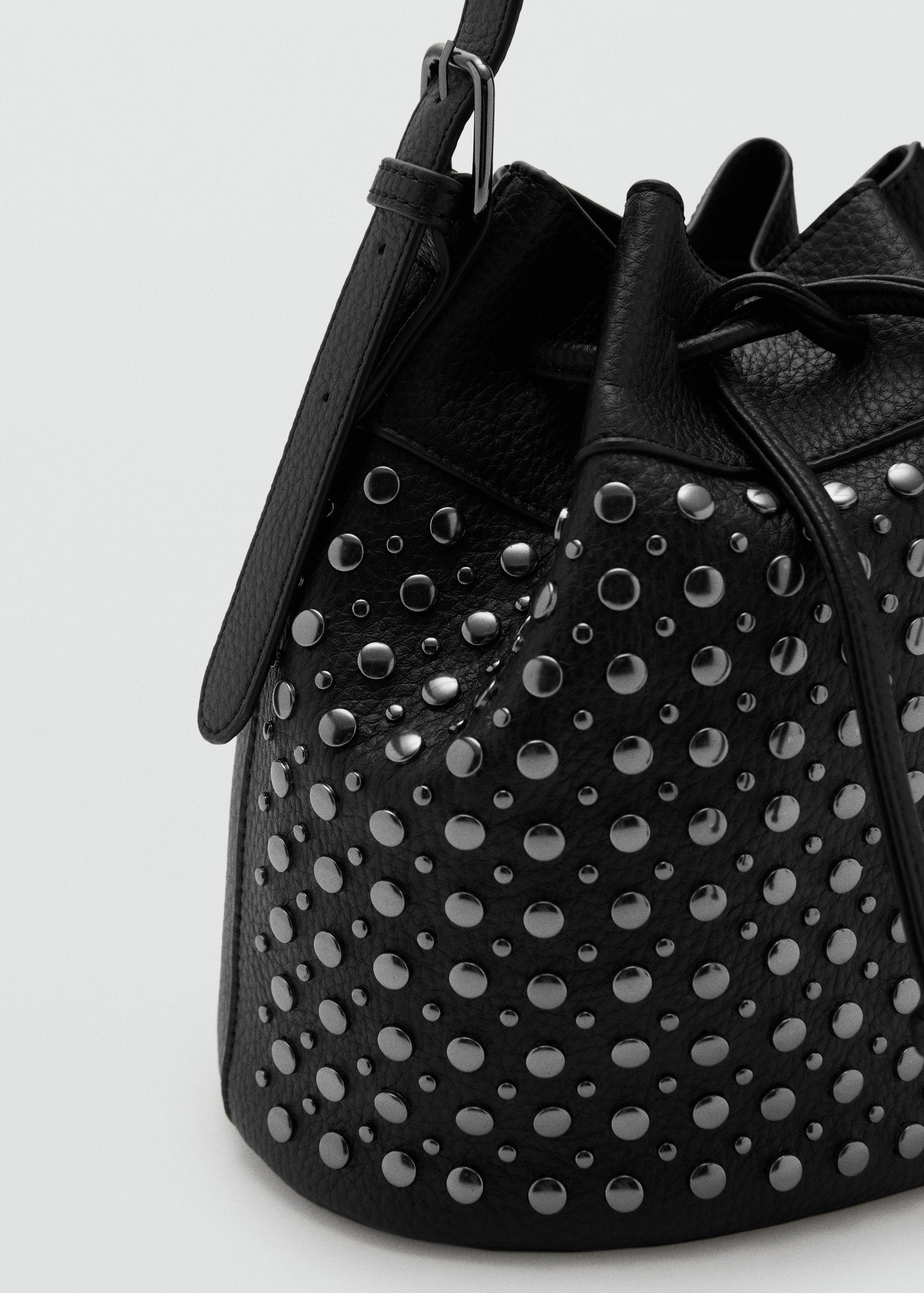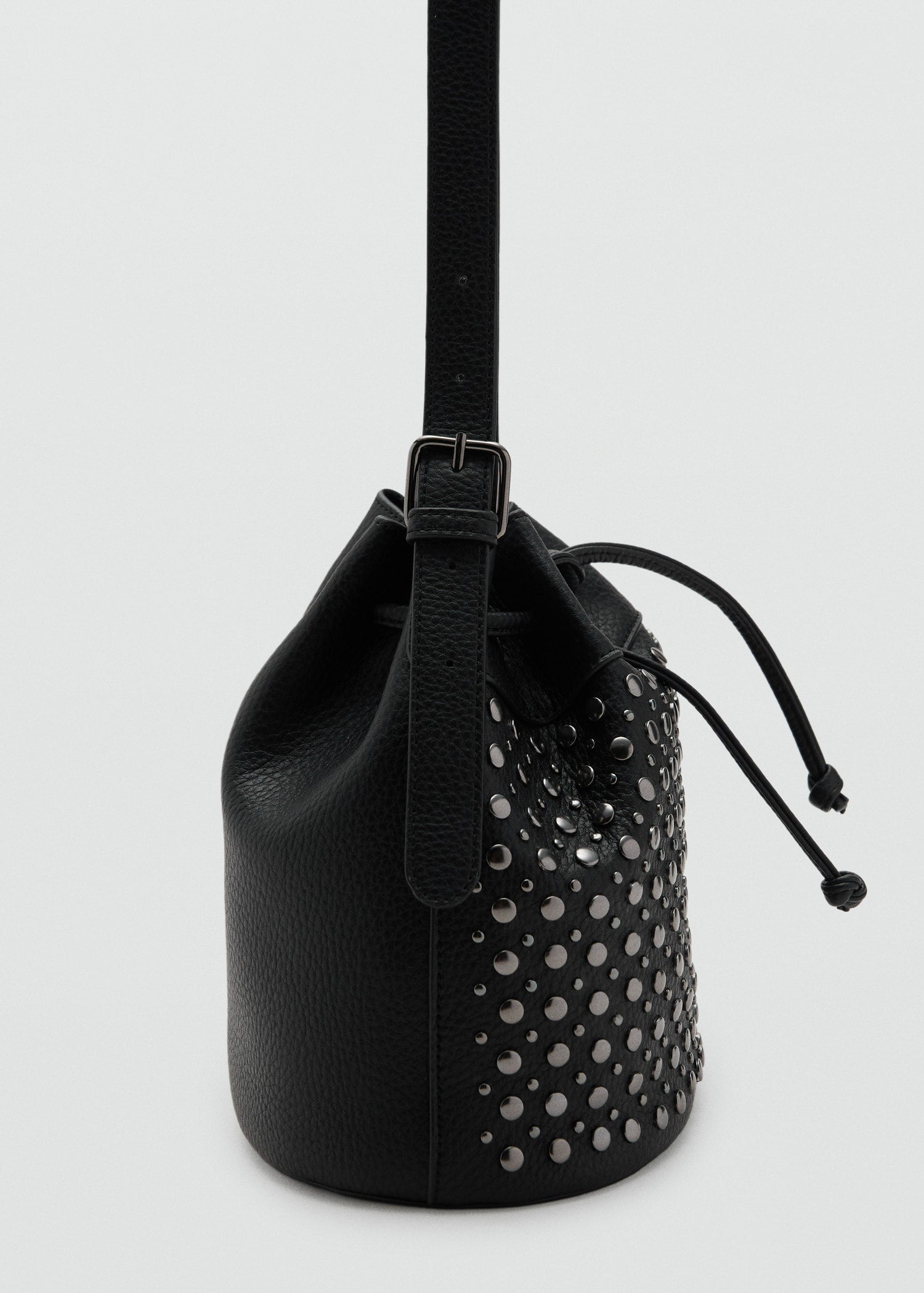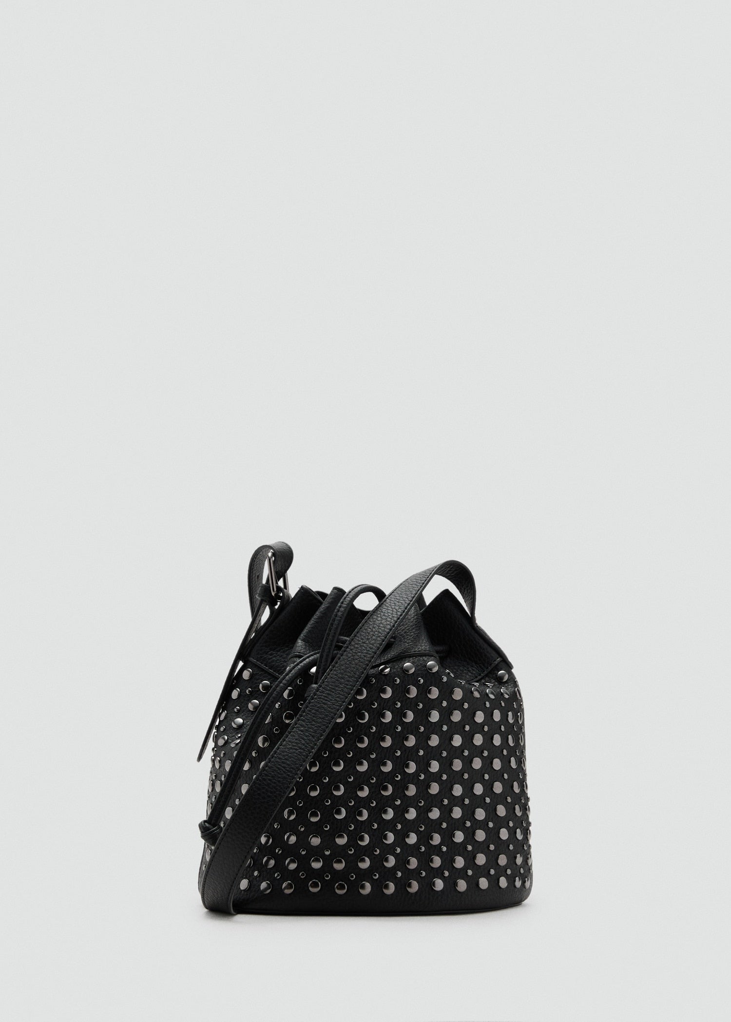 Faux leather. Bucket design. Stud detail. Long adjustable strap. Tie fastening.