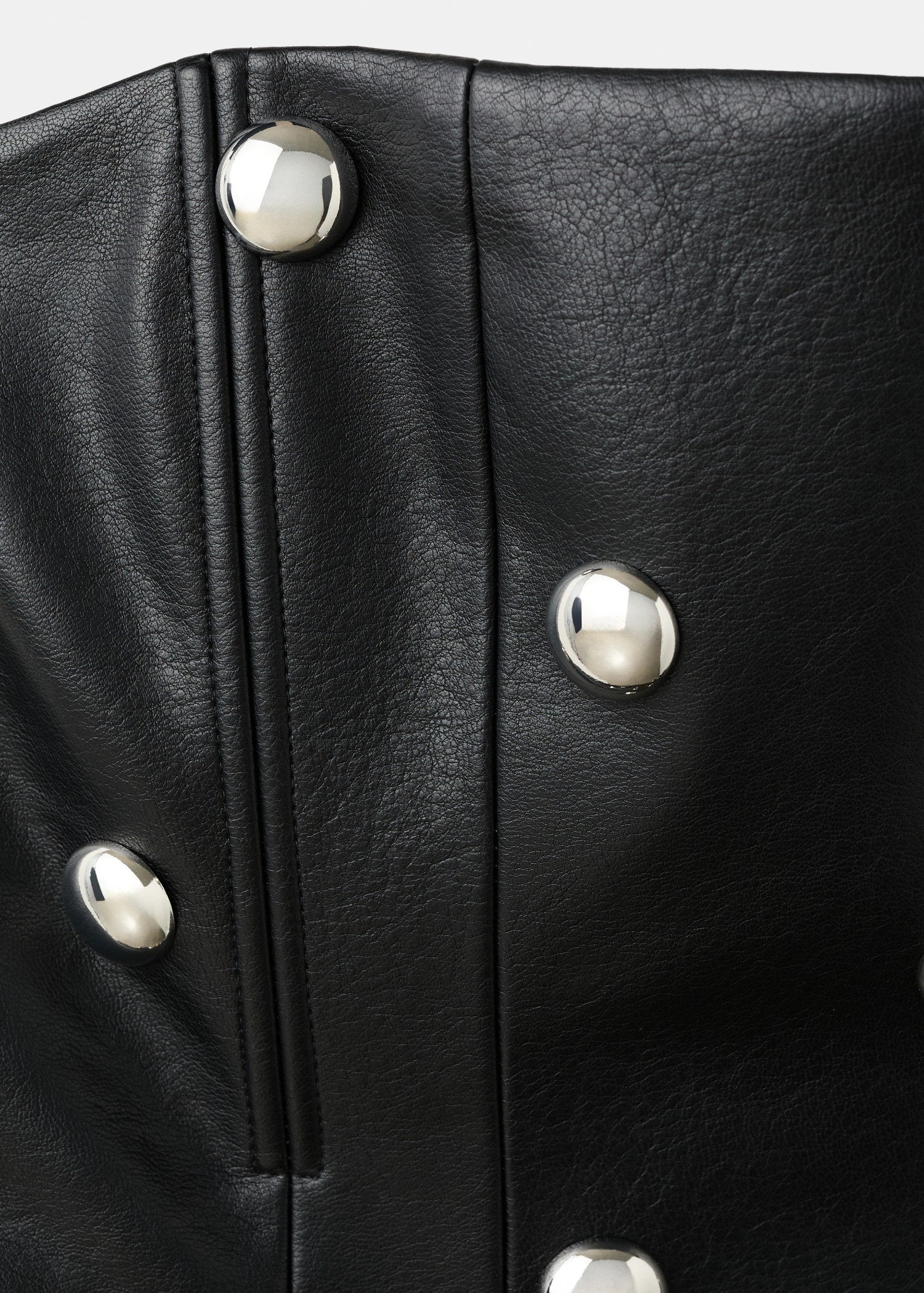 Faux leather. Short Design. Fitted design. Strapless. Sleeveless. Stud detail. Side zip closure. Inner lining. This garment is part of our party and event collection, designed to elevate your looks for special occasions.