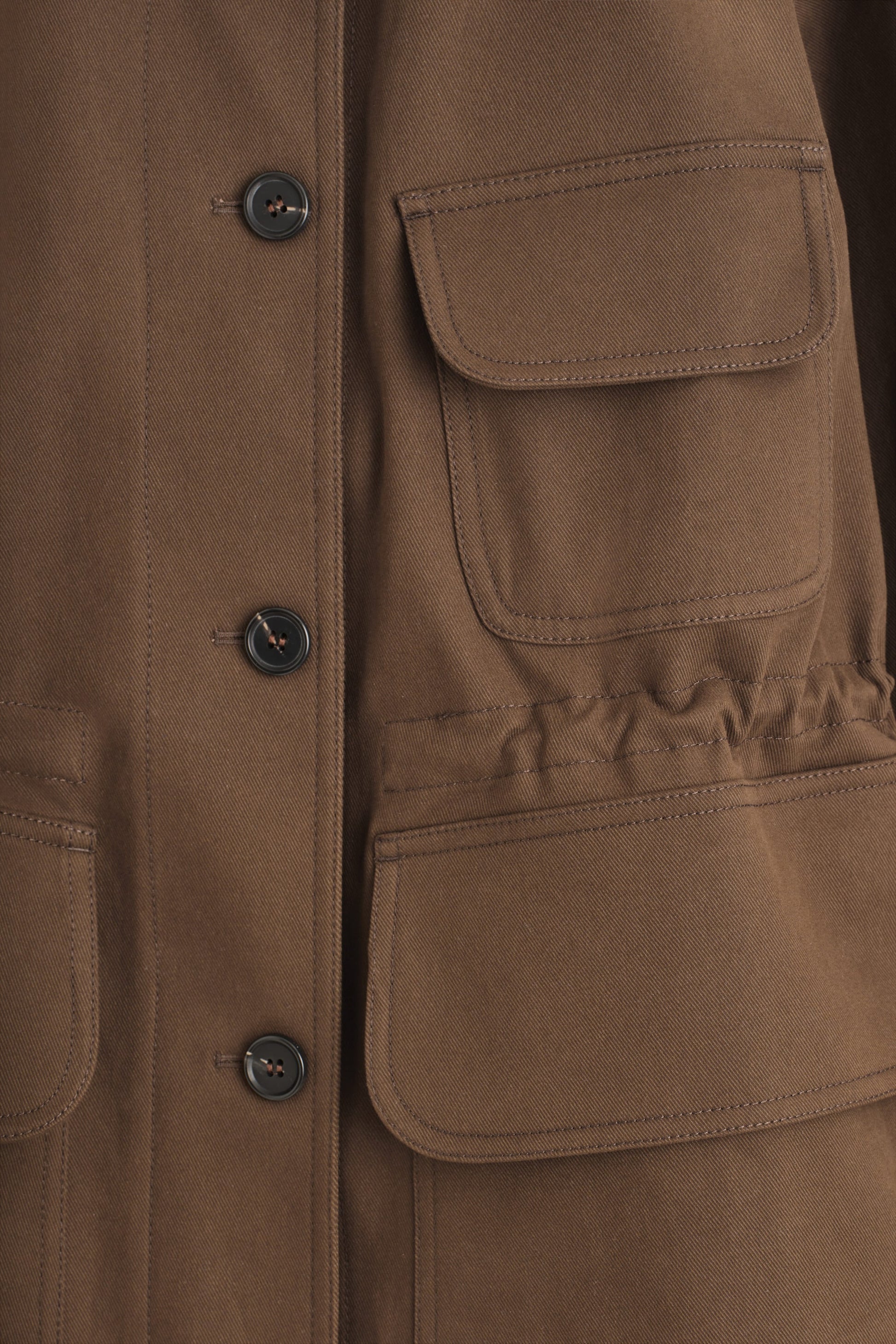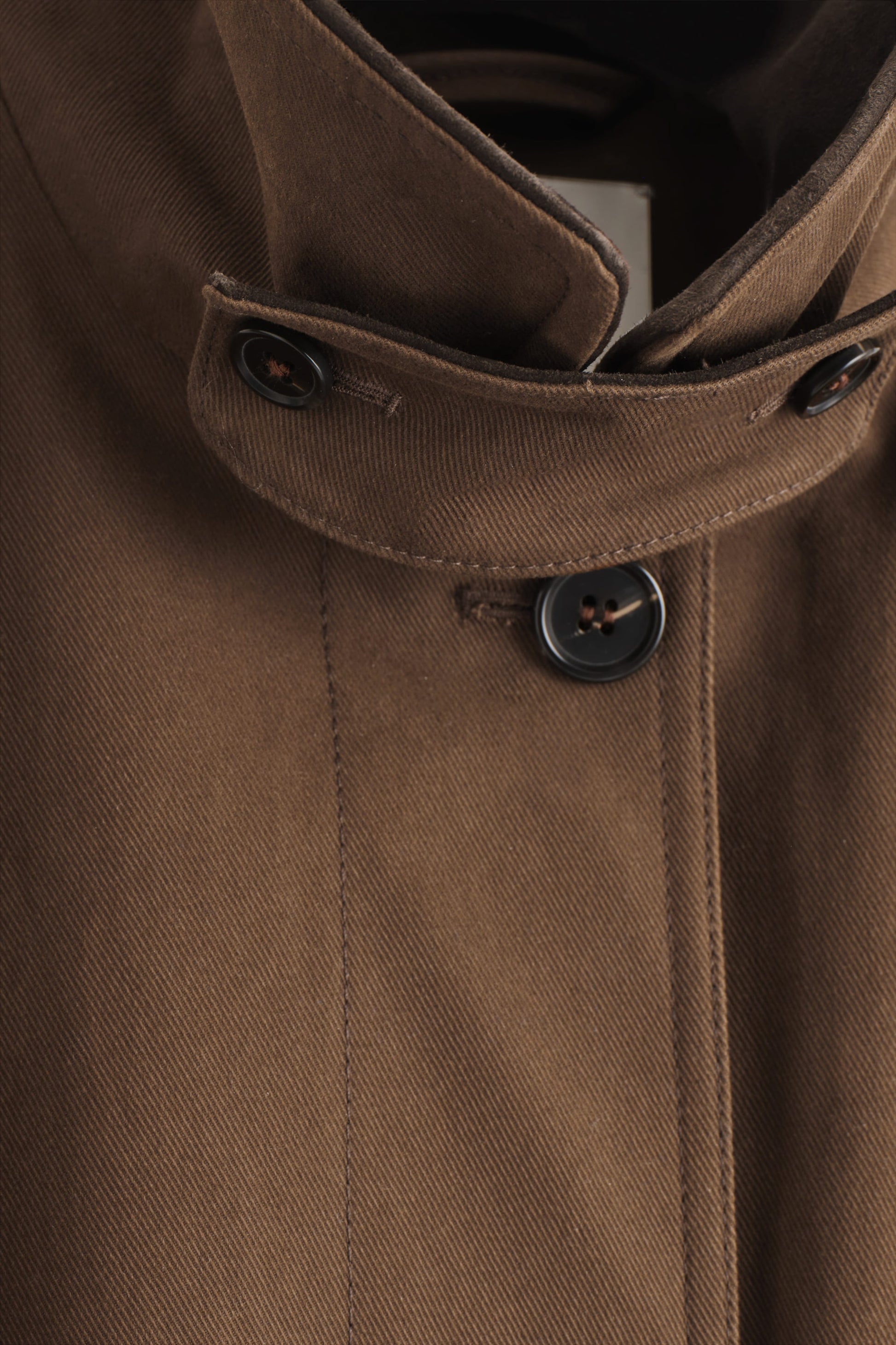 This season, the womenswear team reimagine utility codes with a modern refinement. Crafted from durable cotton-canvas, this jacket is designed with a chocolate suede collar that subtly contrasts the rich tobacco hue and has an internal drawcord that defines the silhouette. Style it as a funnel neck in cooler temperatures.