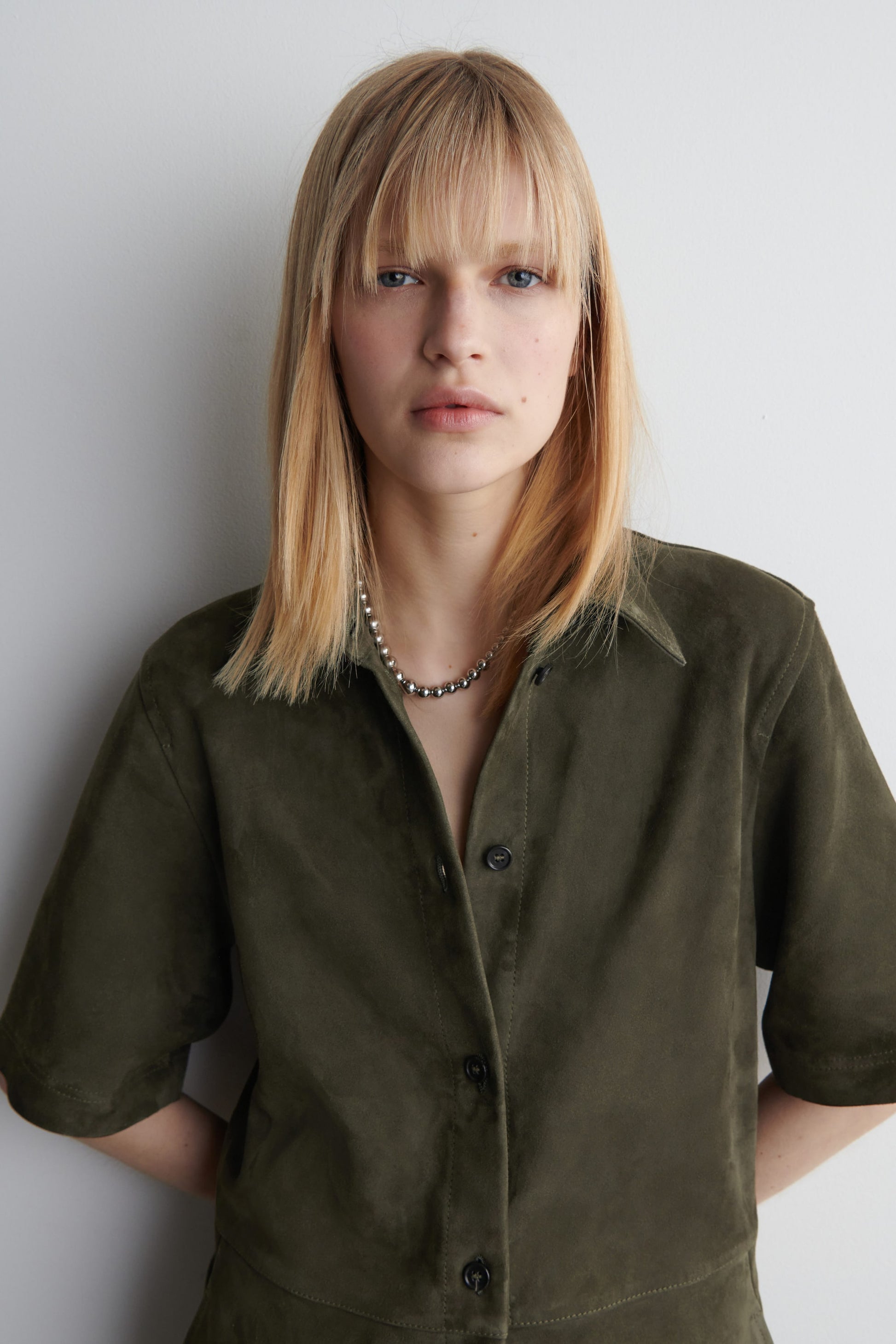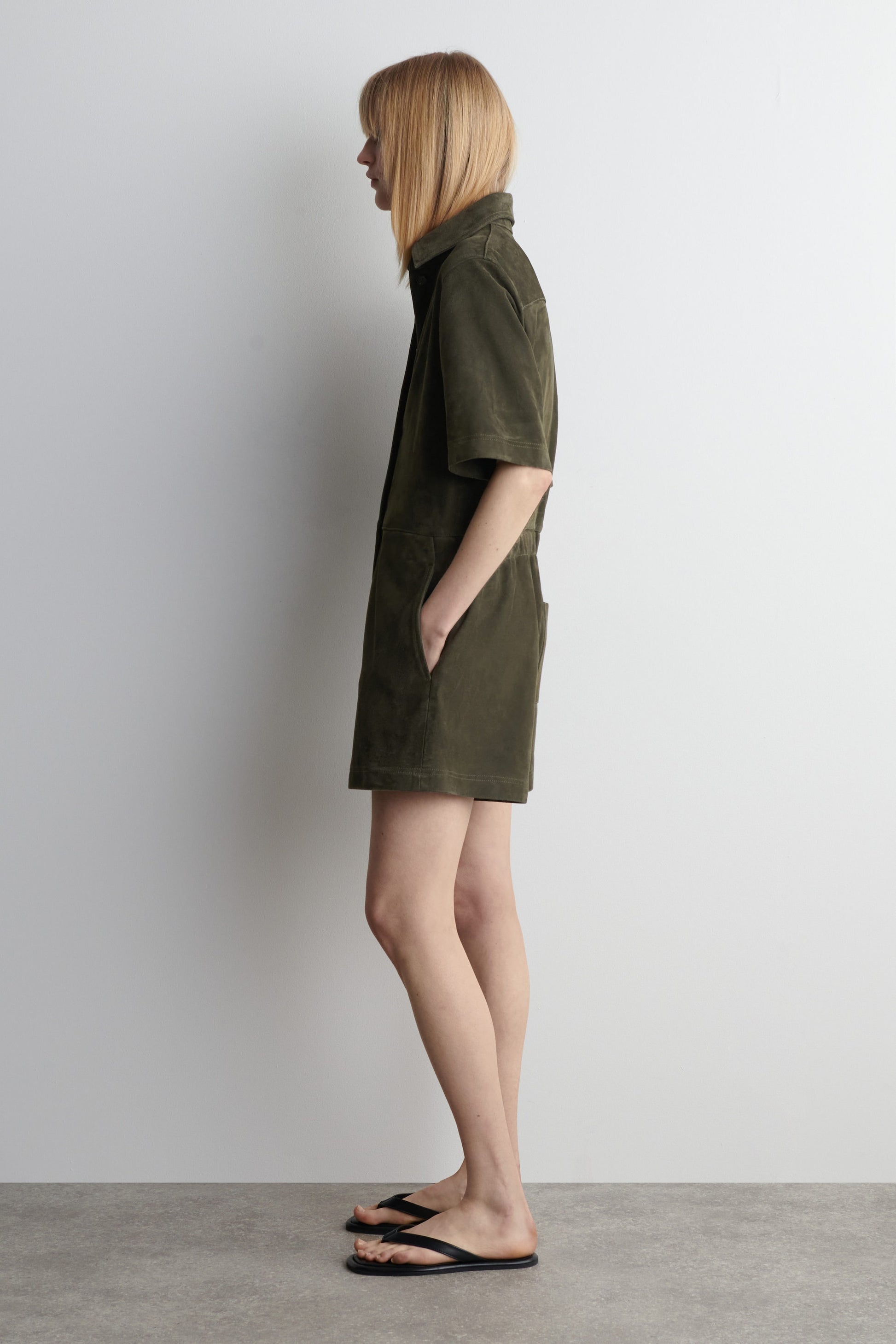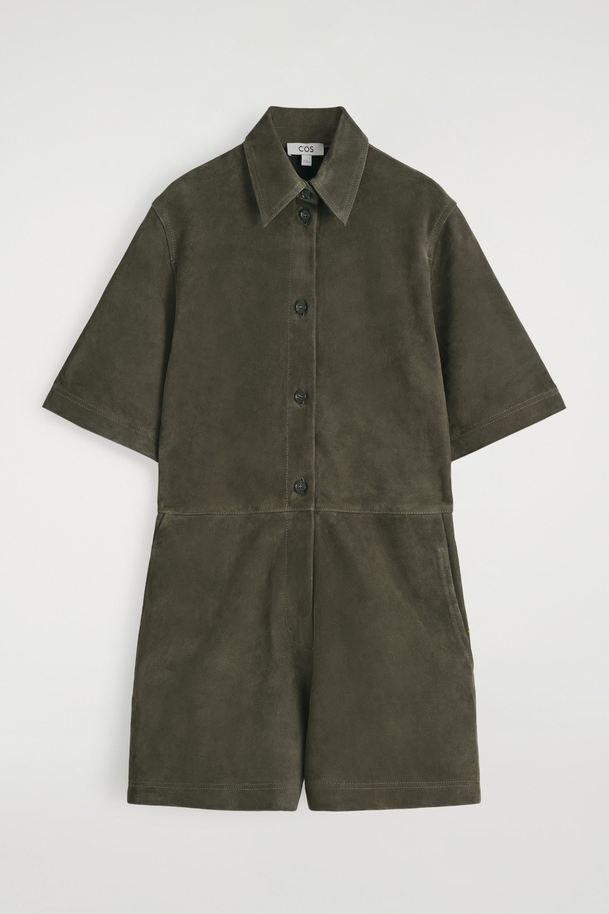 This refined playsuit blurs the lines between structure and softness. Style it with simple accessories to keep the supple hide in focus.