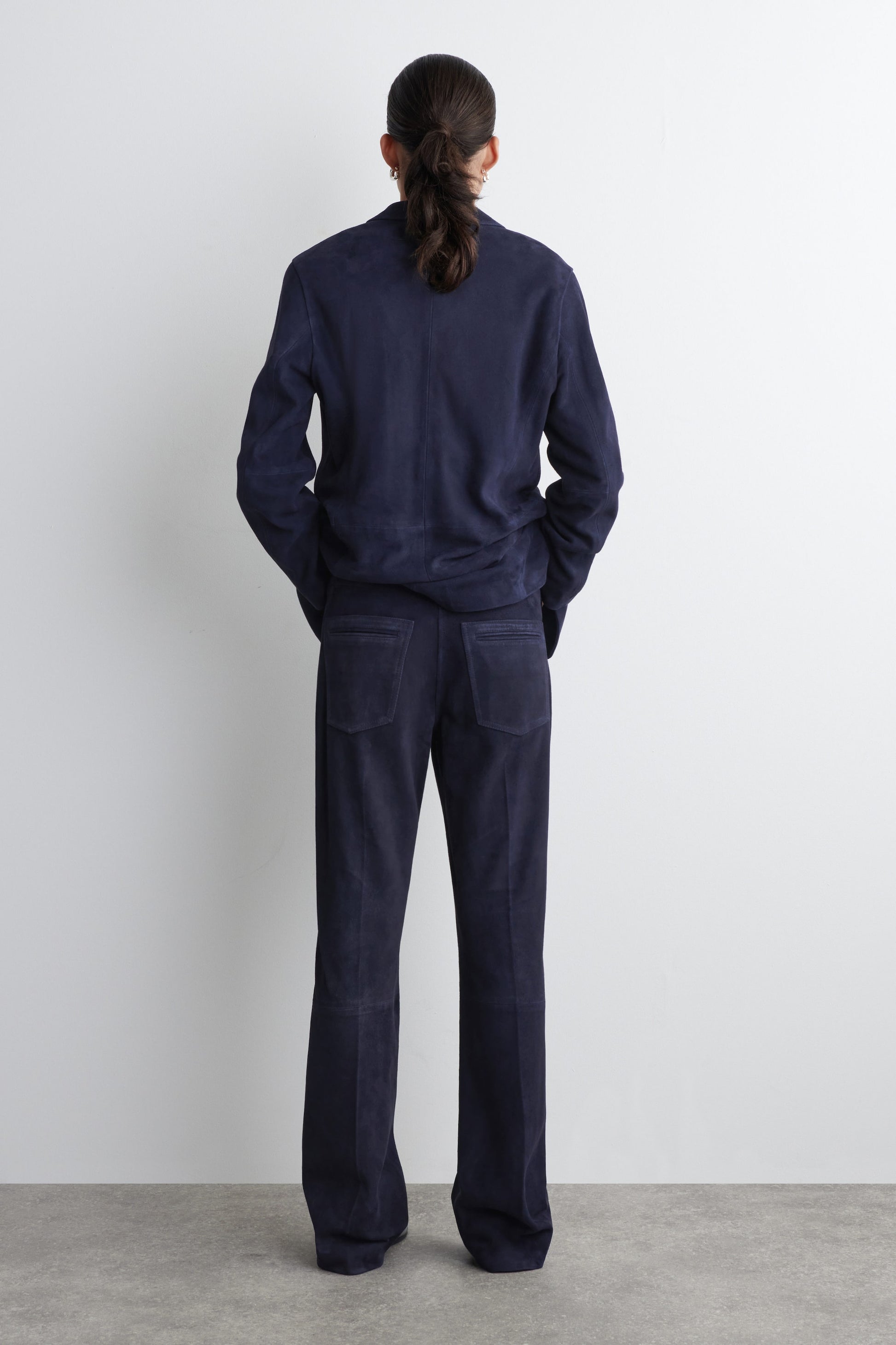 The womenswear team reimagine classic tailoring through premium fabrics and a rich tactility. These refined trousers are crafted from exquisitely supple suede and tanned a nuanced navy tone that highlights the texture of the hide. They're cut in a straight-leg shape with a mid-rise waist and have a subtle zipped pocket at one side.