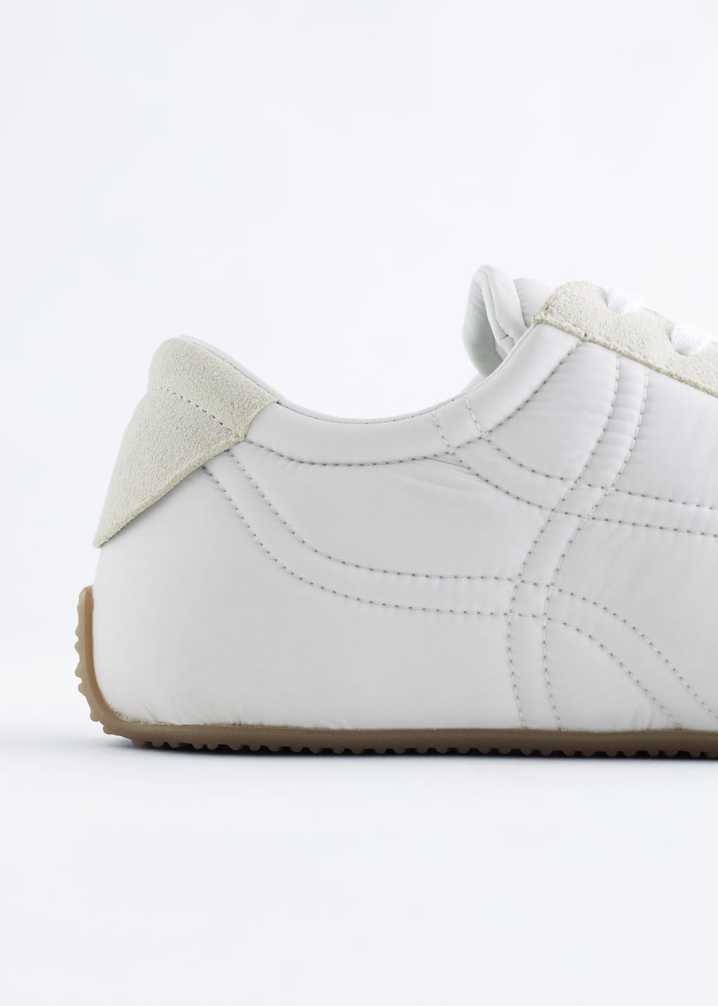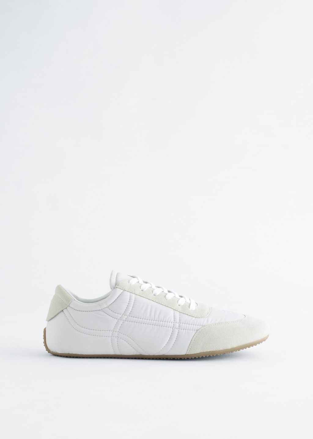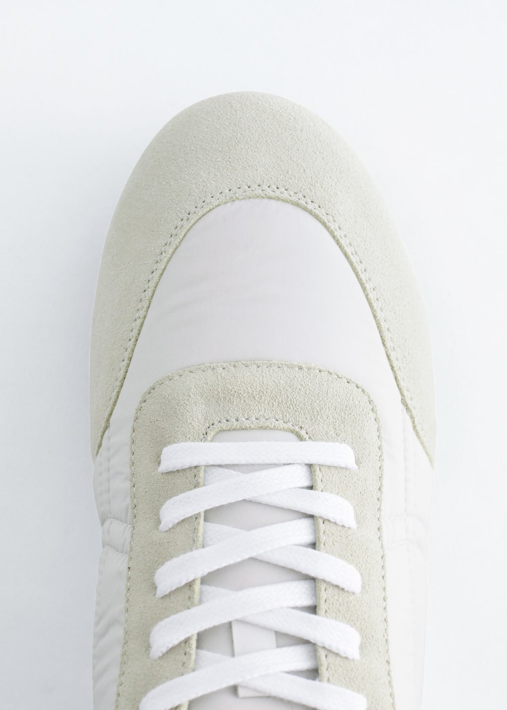 These lightly padded trainers are crafted in Portugal from suede and fabric, featuring decorative side stitching and tone-on-tone laces.