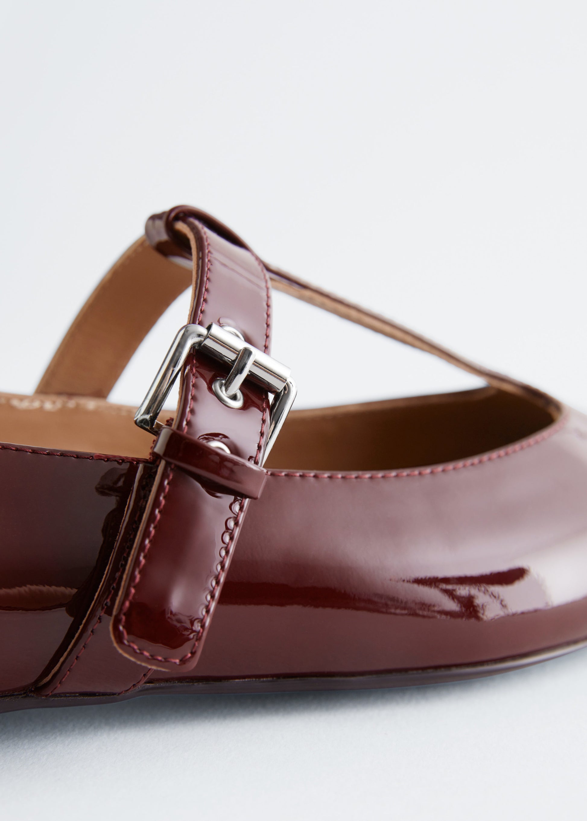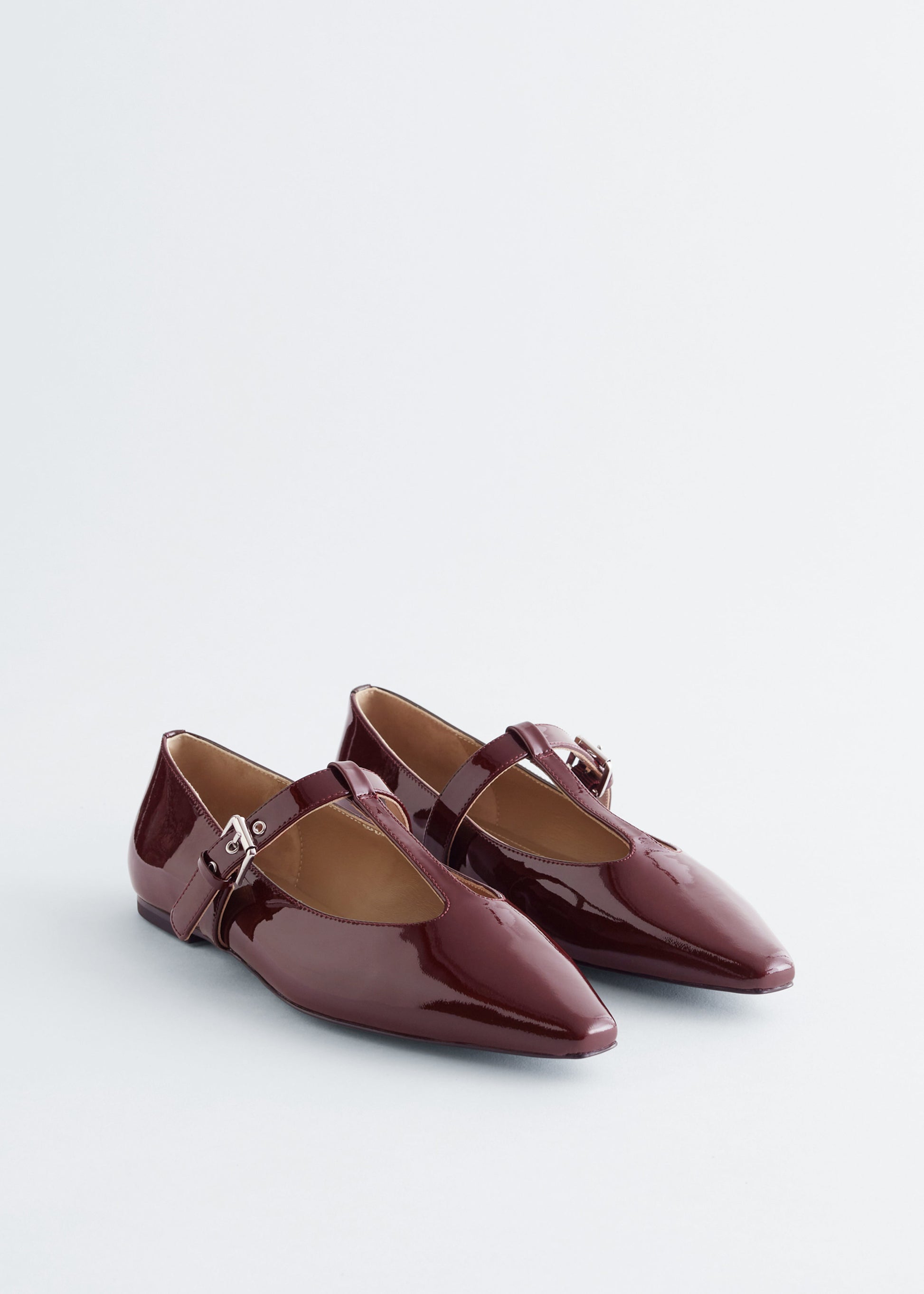 Crafted from supple leather, these ballet flats stand out with pointed toes and a deep, low-cut opening, accented by on-trend Mary-Jane and T-bar straps. They feature flat heels, and the interweaving straps are finished with a buckle for an adjustable fit.
