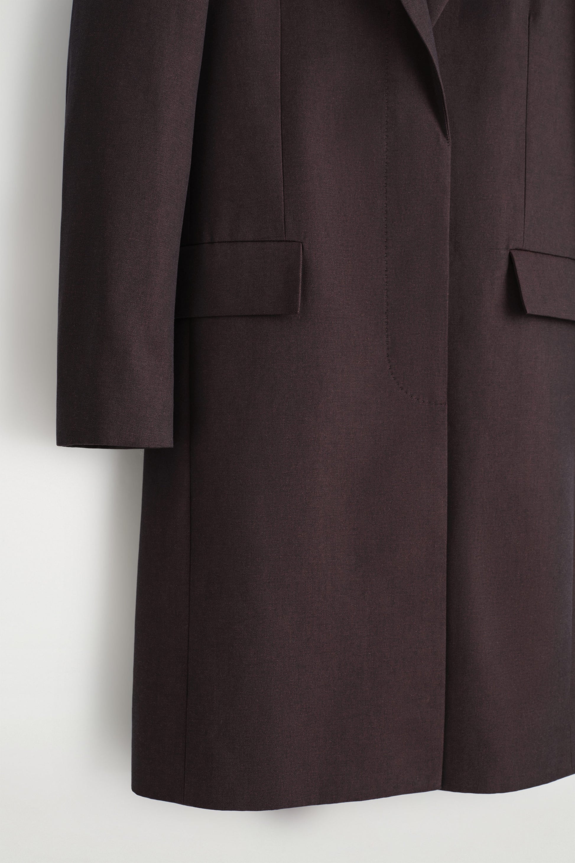 This season's womenswear collection spotlights tailored silhouettes with considered finishing touches. Rendered in a rich bordeaux tone, this sophisticated coat is crafted from pure cotton and cut in a classic shape with notch lapels, flap pockets and darts that softly sculpt the waist.