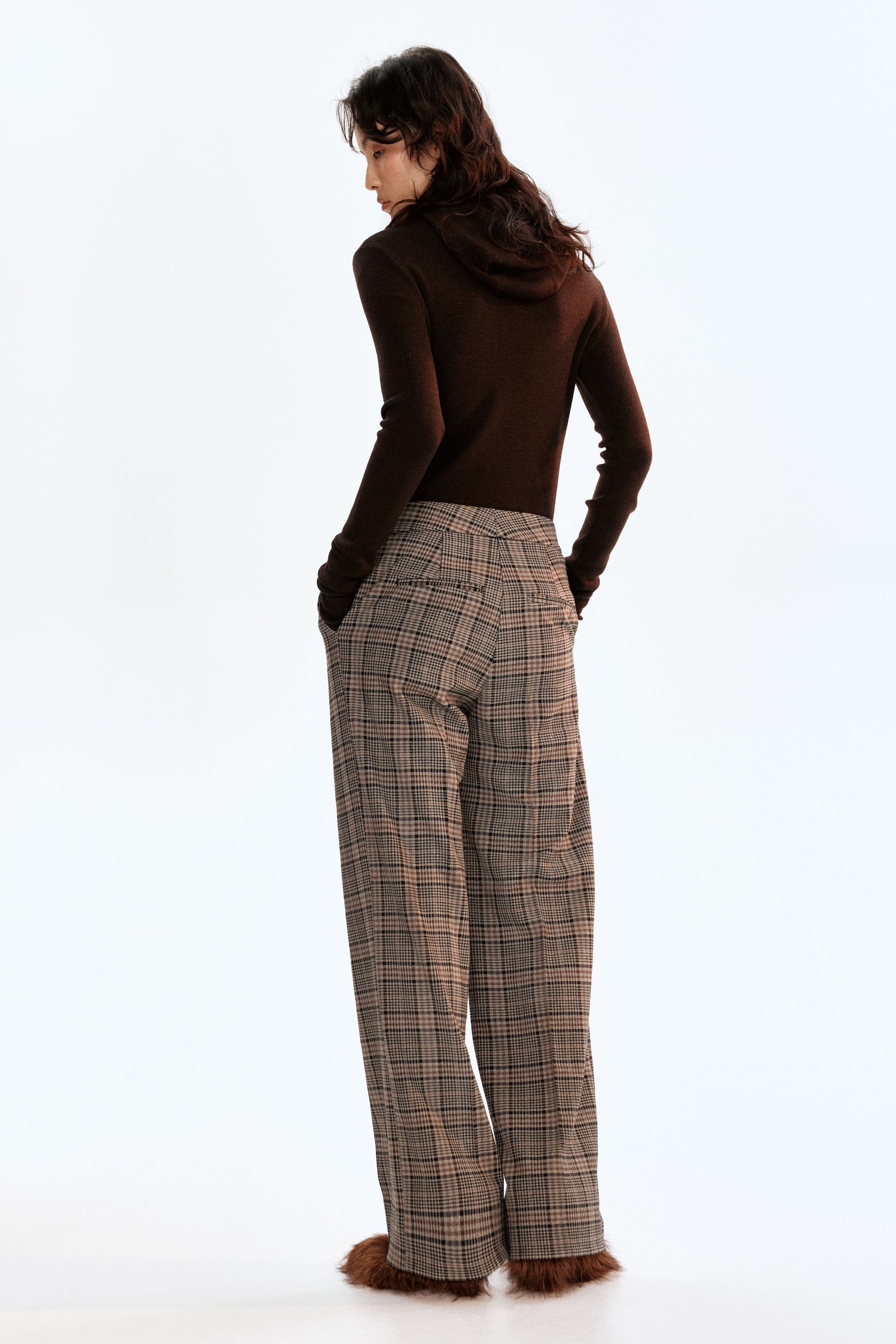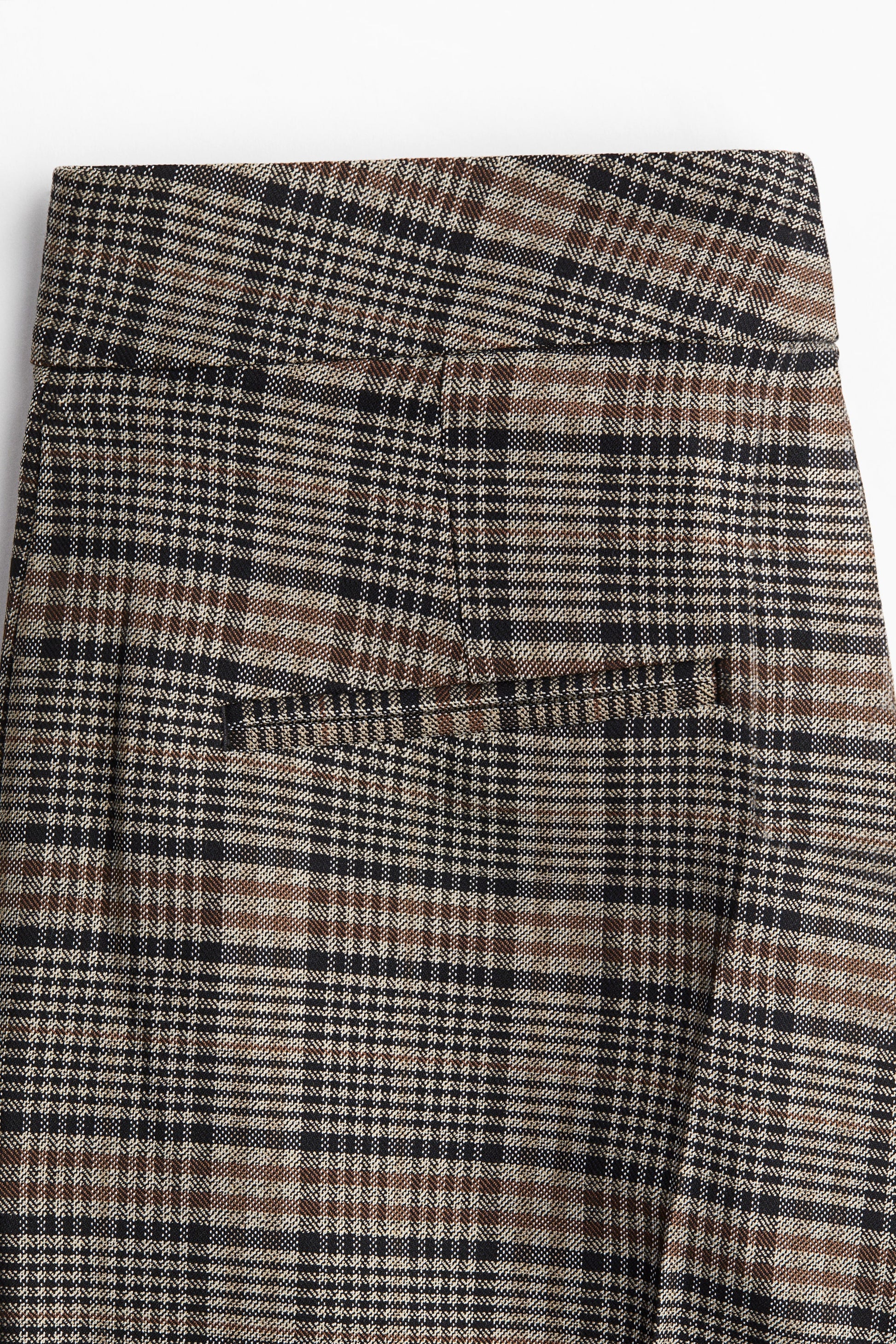 Tailored trousers in woven fabric with an extended waistband and a zip fly with a concealed button and hook-and-bar fastener. Diagonal side pockets, fake back pockets and straight legs with creases down the front and back.