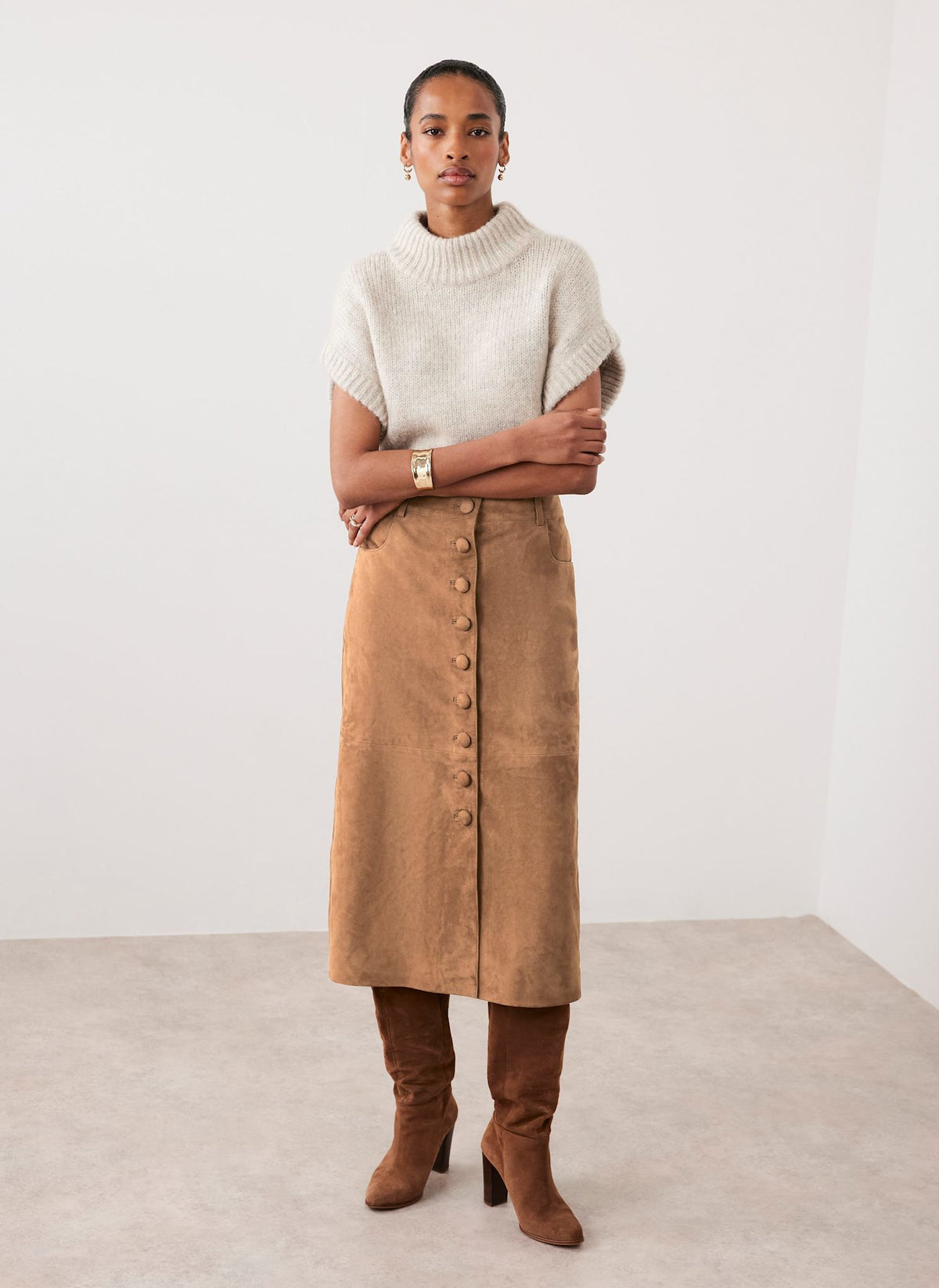 Tan Suede Midi Skirt