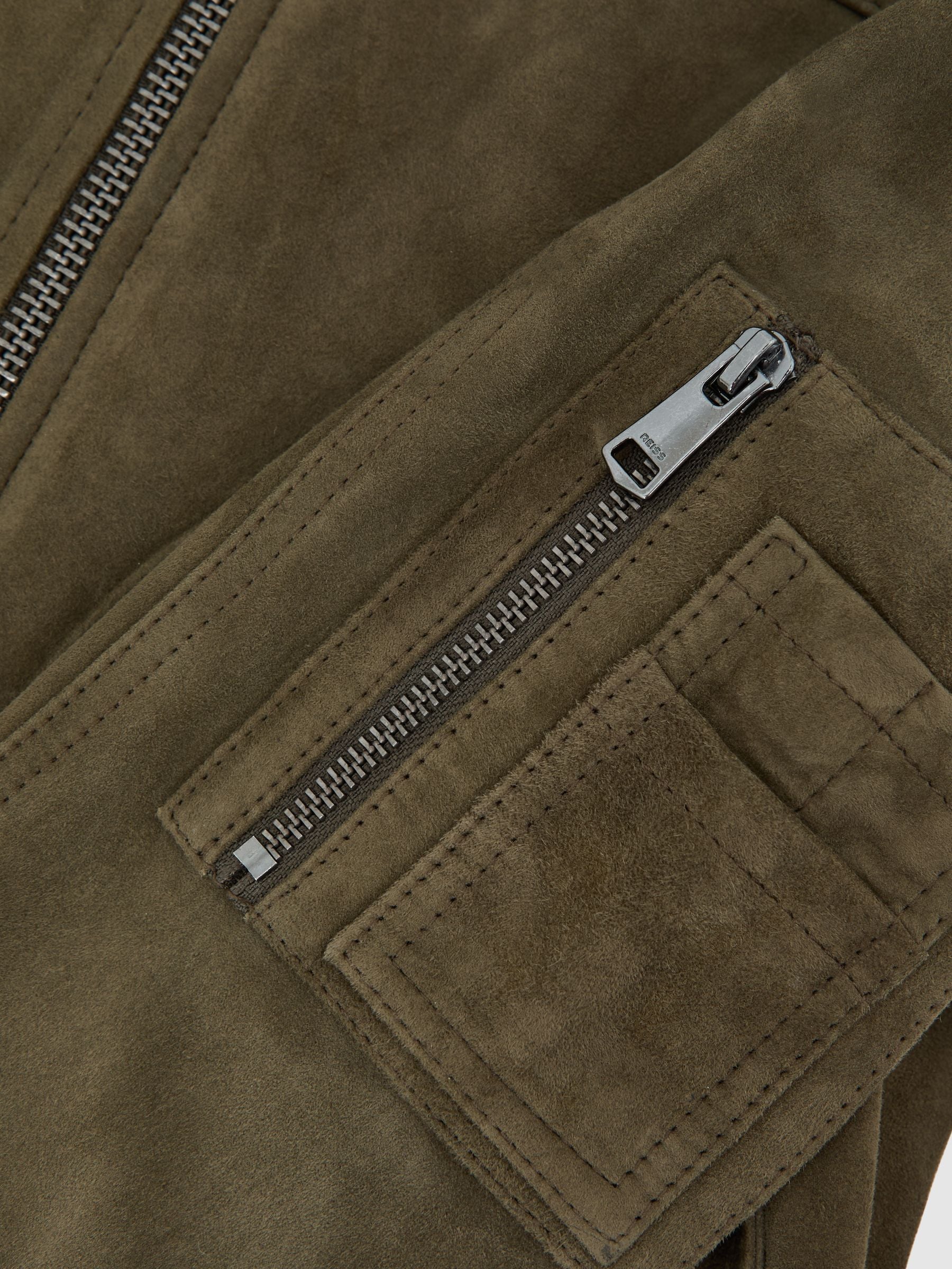 Tate Suede Zip-Through Jacket in Khaki Green