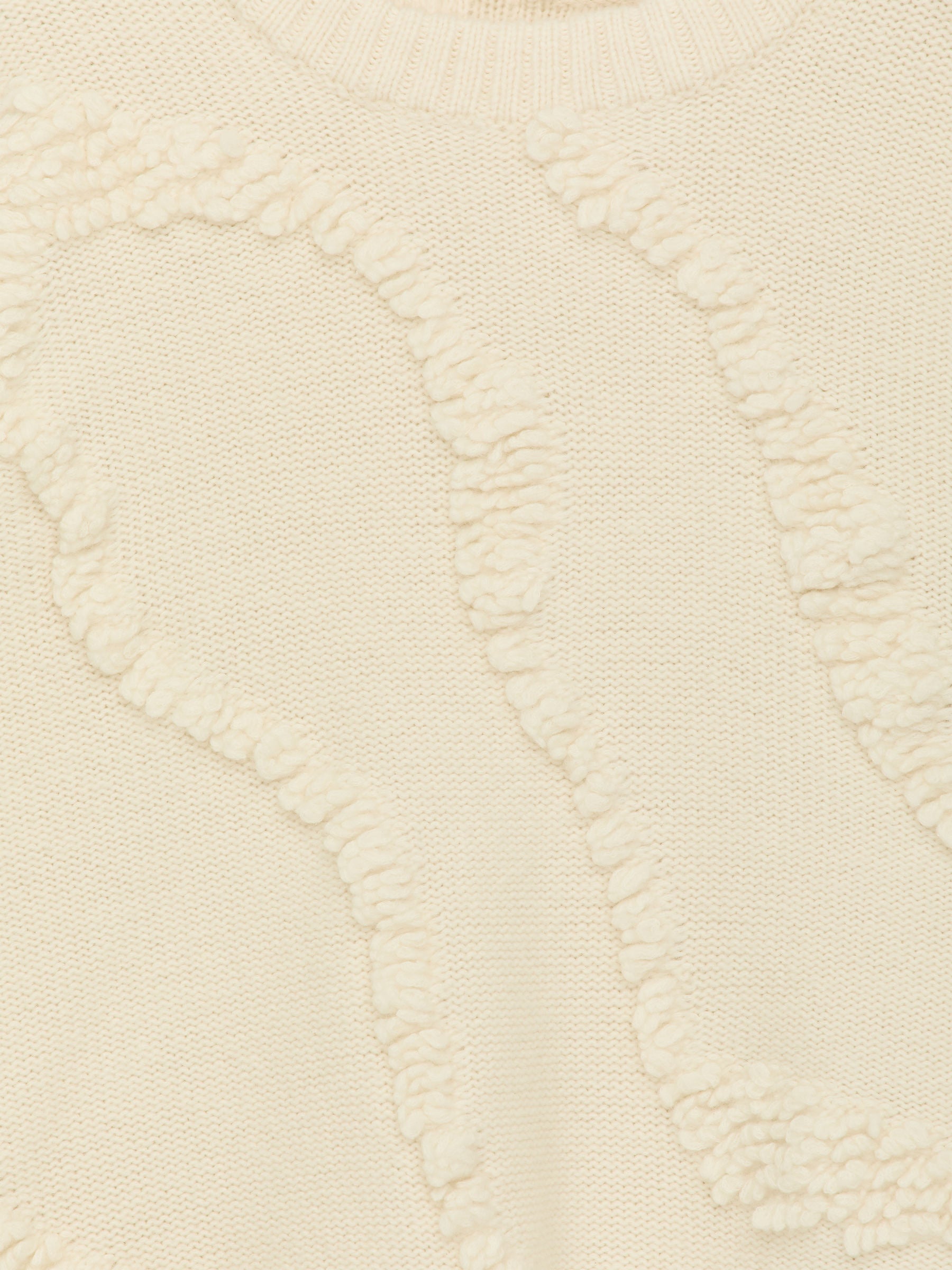 Jumper crafted from a blend of cotton and wool. A relaxed fit featuring ribbed trims and a subtle zebra knit pattern. The style contains 51% RWS wool (TE-00047206). Products certified to the Responsible Wool Standard (RWS) contain wool fiber from farms independently certified to animal welfare and land management requirements.