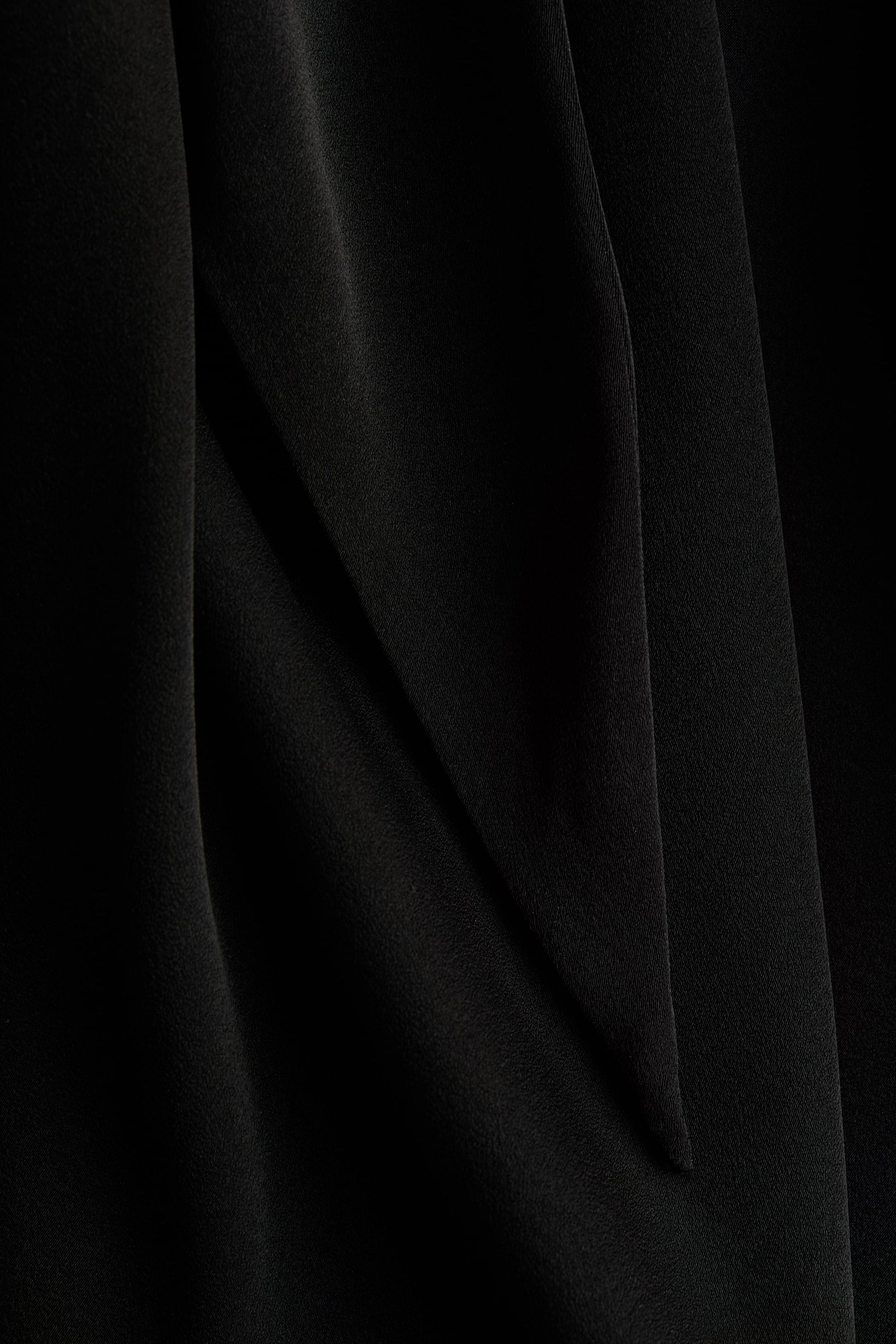 Long dress in woven fabric featuring a boat neckline with a twisted detail on one shoulder and long, flowing ties in a decorative knot on the other shoulder to create a draped effect. Straight-cut hem with a high slit at one side. Unlined.