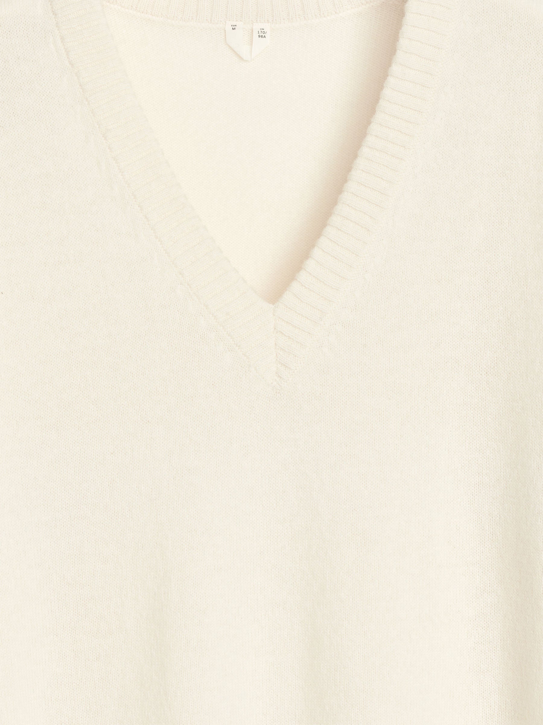 Maxi dress with a V-neck knitted from wool. Styled with long sleeves and a straight silhouette. The dress contains 100% RWS wool (TE-00047206). Products certified to the Responsible Wool Standard (RWS) contain wool fiber from farms independently certified to animal welfare and land management requirements