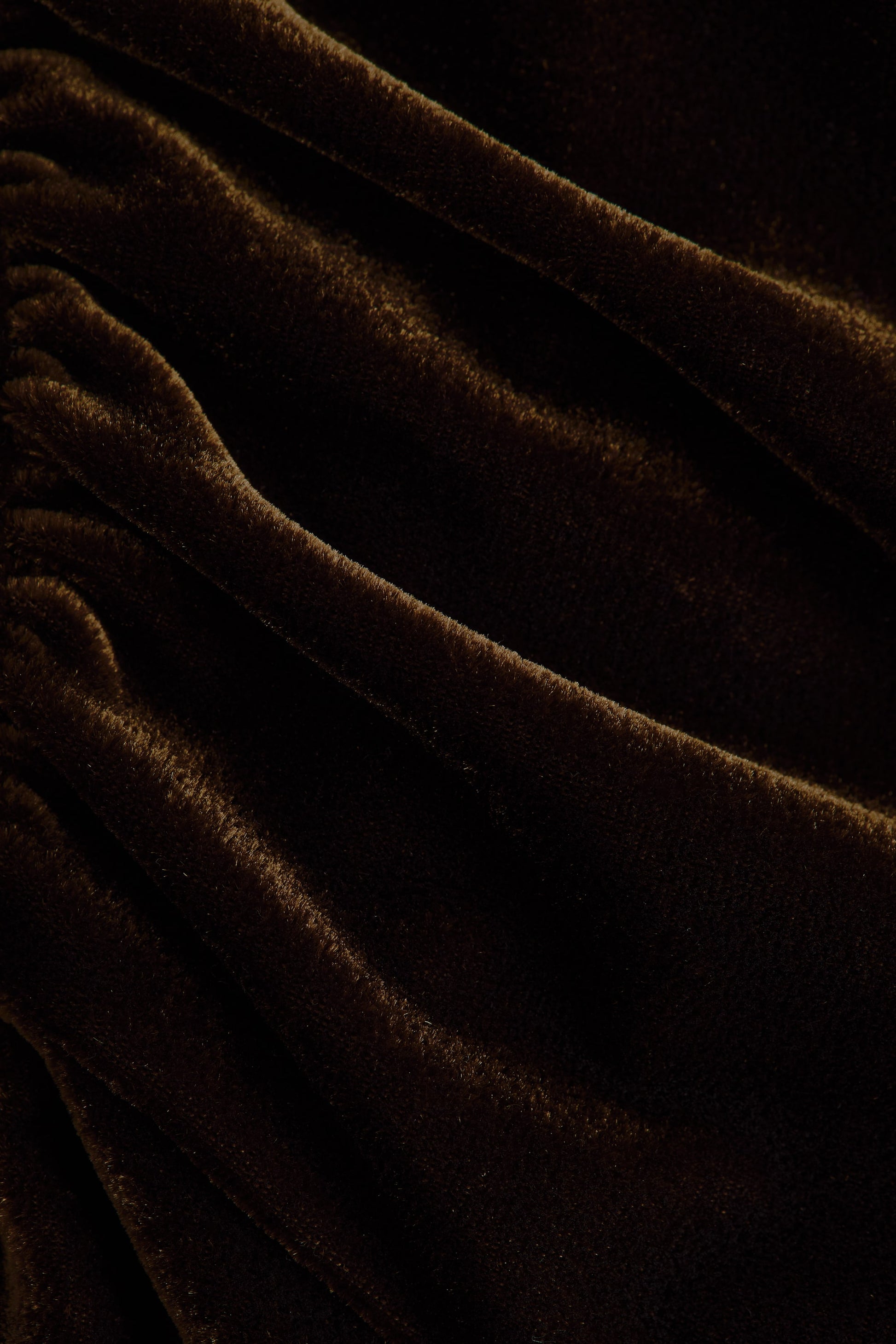 Jumpsuit in soft velour featuring a stand collar with halterneck ties and an open back. Gathers at the sides for a draped effect and long, straight legs. Partly lined.