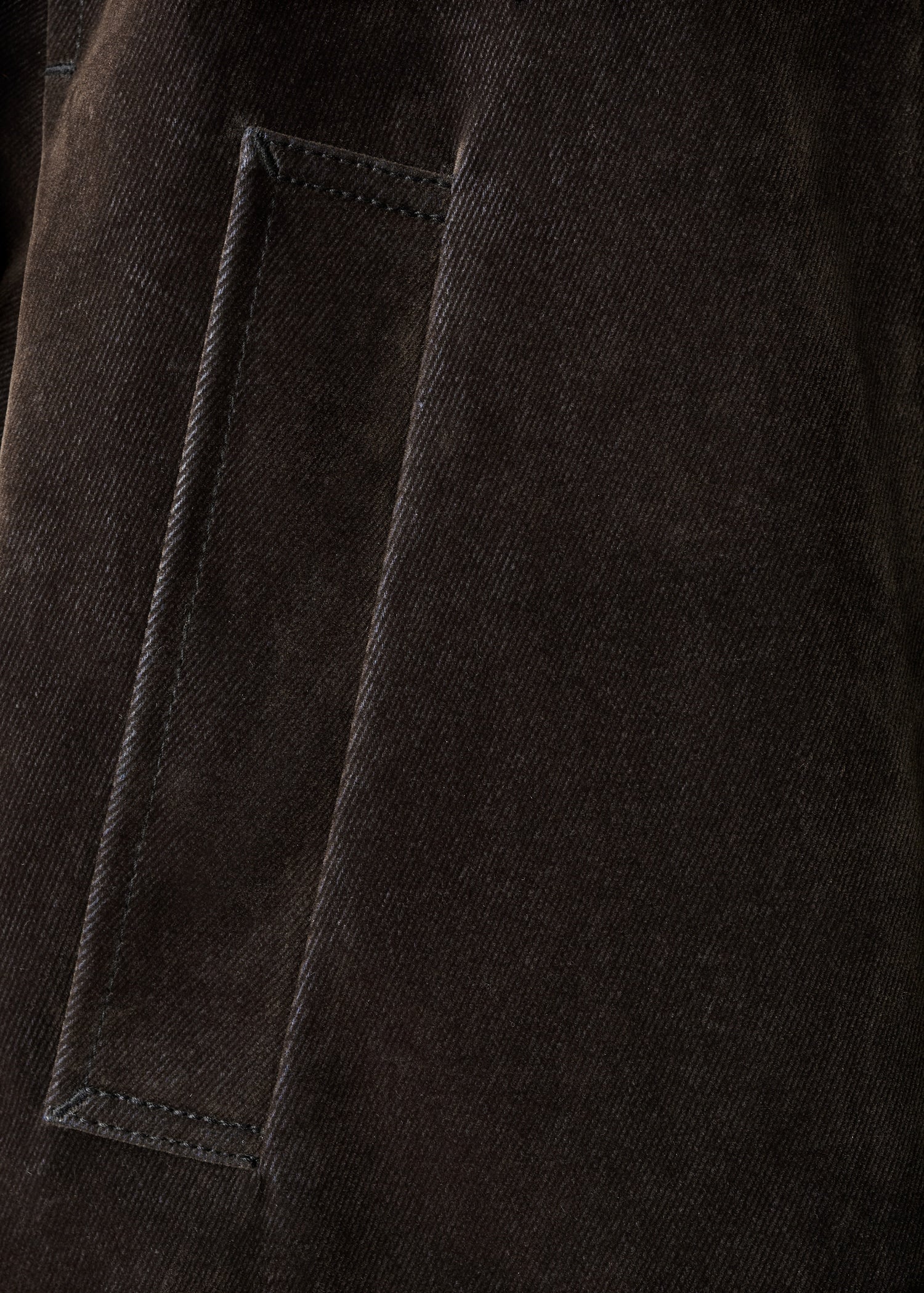 Velvety finish. Straight Design. Shirt Collar. Detachable fur-effect collar. Long sleeves. Two welt pockets on the chest. Two patch pockets and front flap pockets. Concealed zip and button fastening. Inner lining.