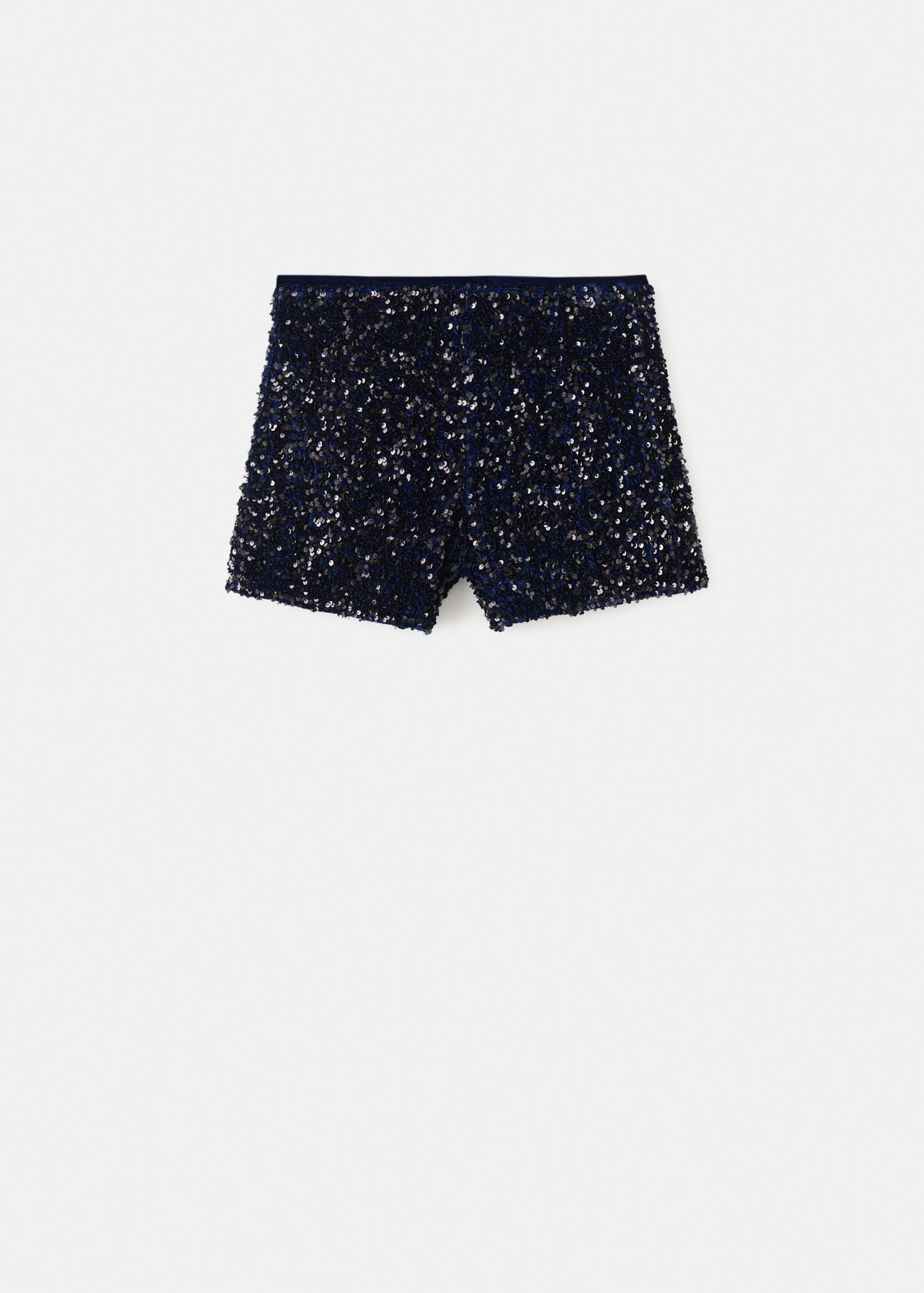 Crafted from velvet fabric with sequins, this short design features a high waist that streamlines the figure. The side zip fastening ensures a perfect fit. This garment is part of our party and event collection, designed to elevate your looks for special occasions. It comes with a matching jacket to create a total look