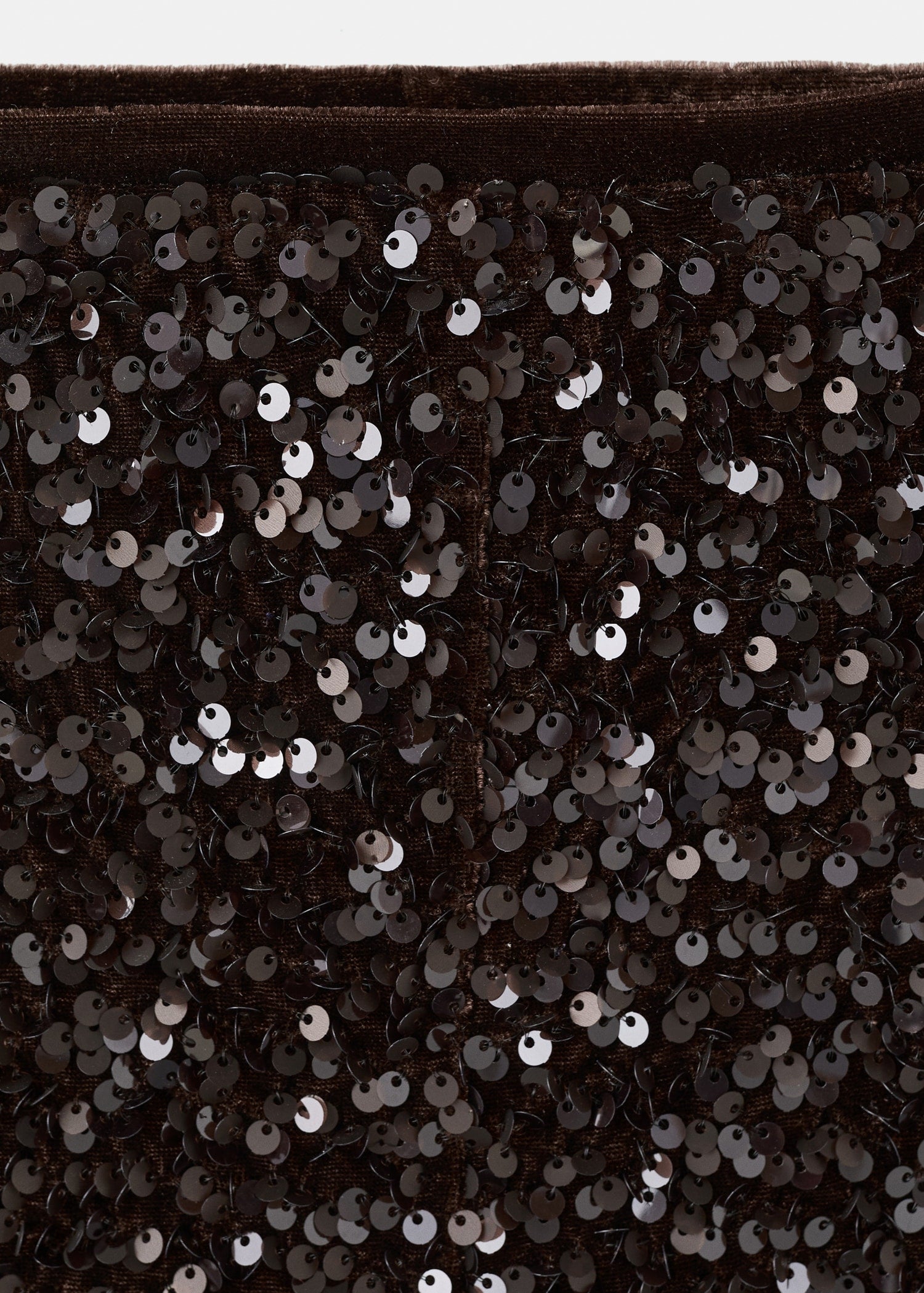 Crafted from velvet fabric with sequins, this short design features a high waist that streamlines the figure. The side zip fastening ensures a perfect fit. This garment is part of our party and event collection, designed to elevate your looks for special occasions. It comes with a matching jacket to create a total look
