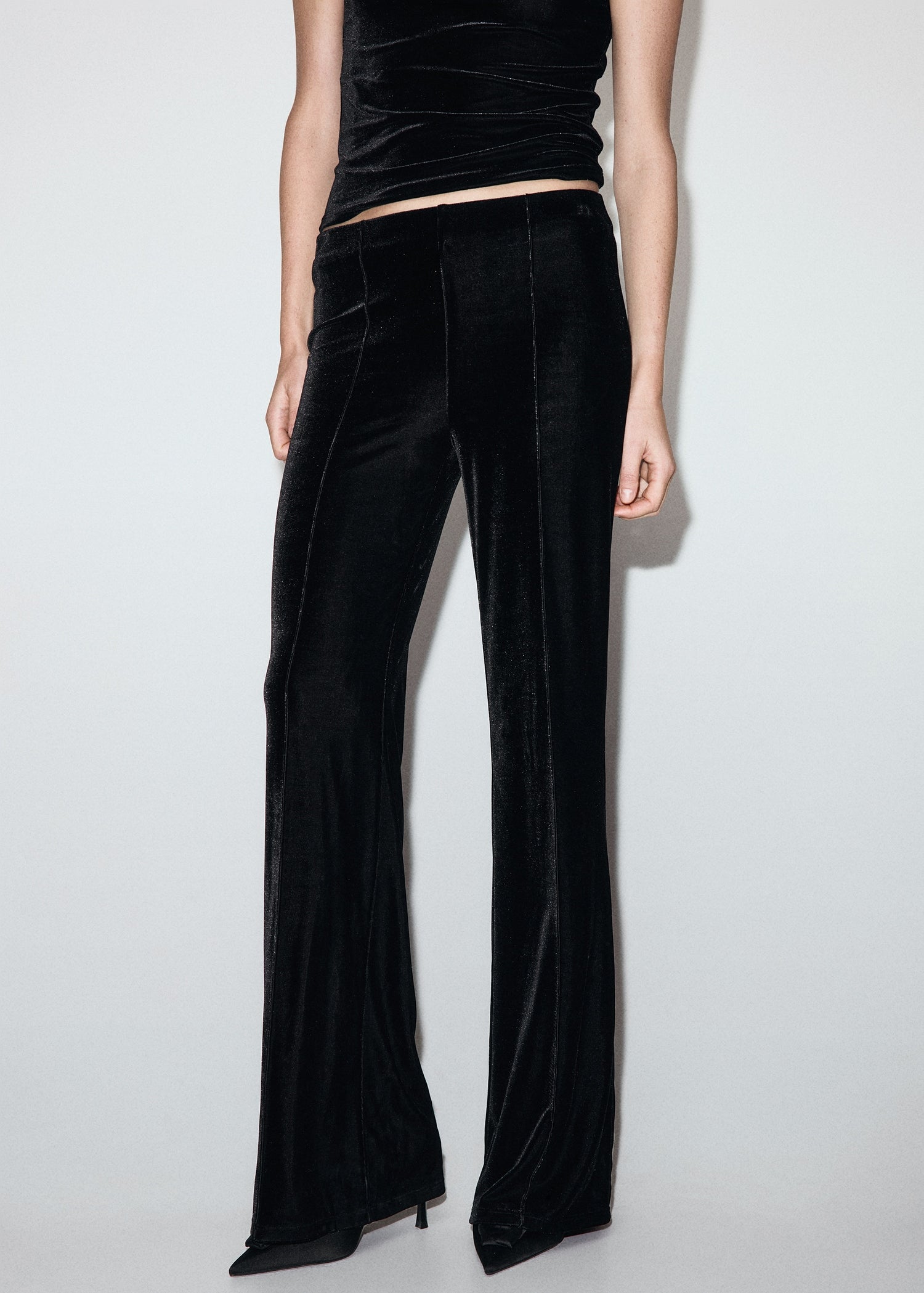 Velvet fabric. Long design. Straight Design. Mid-rise. Seam detail. Elasticated waistband. Total look. Available Plus. This garment is part of our party and event collection, designed to elevate your looks for special occasions.