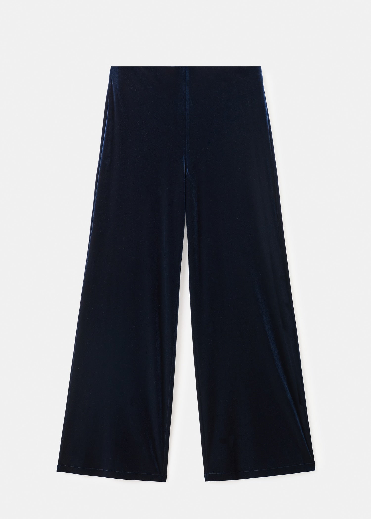 Velvet fabric. Long design. Wide-leg design. Mid-rise. Elasticated waistband. No Fastening.