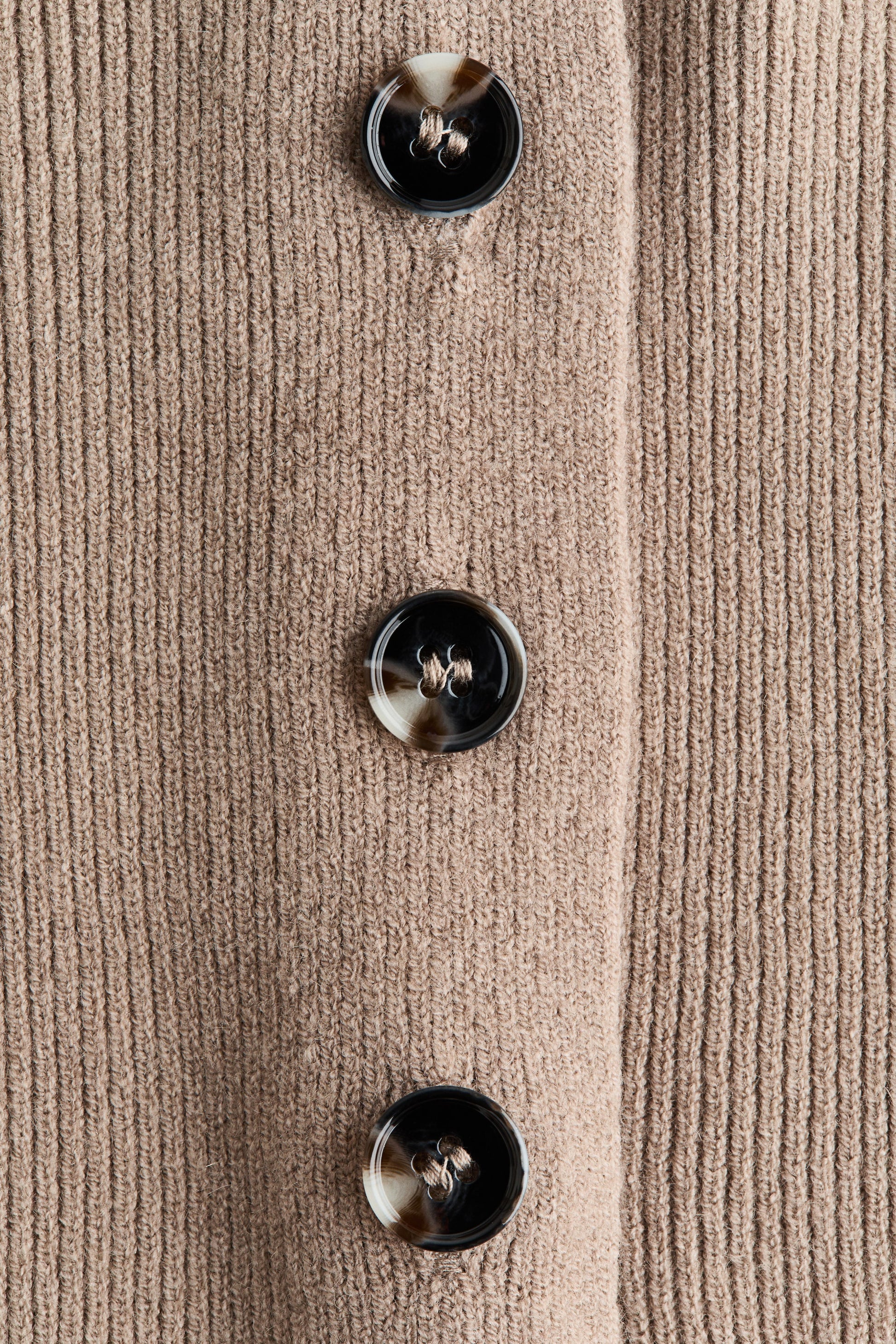 Fitted cardigan in a soft rib knit with a V-neckline and buttons at the front. Tapered waist, gently dropped shoulders and long sleeves with close-fitting cuffs.