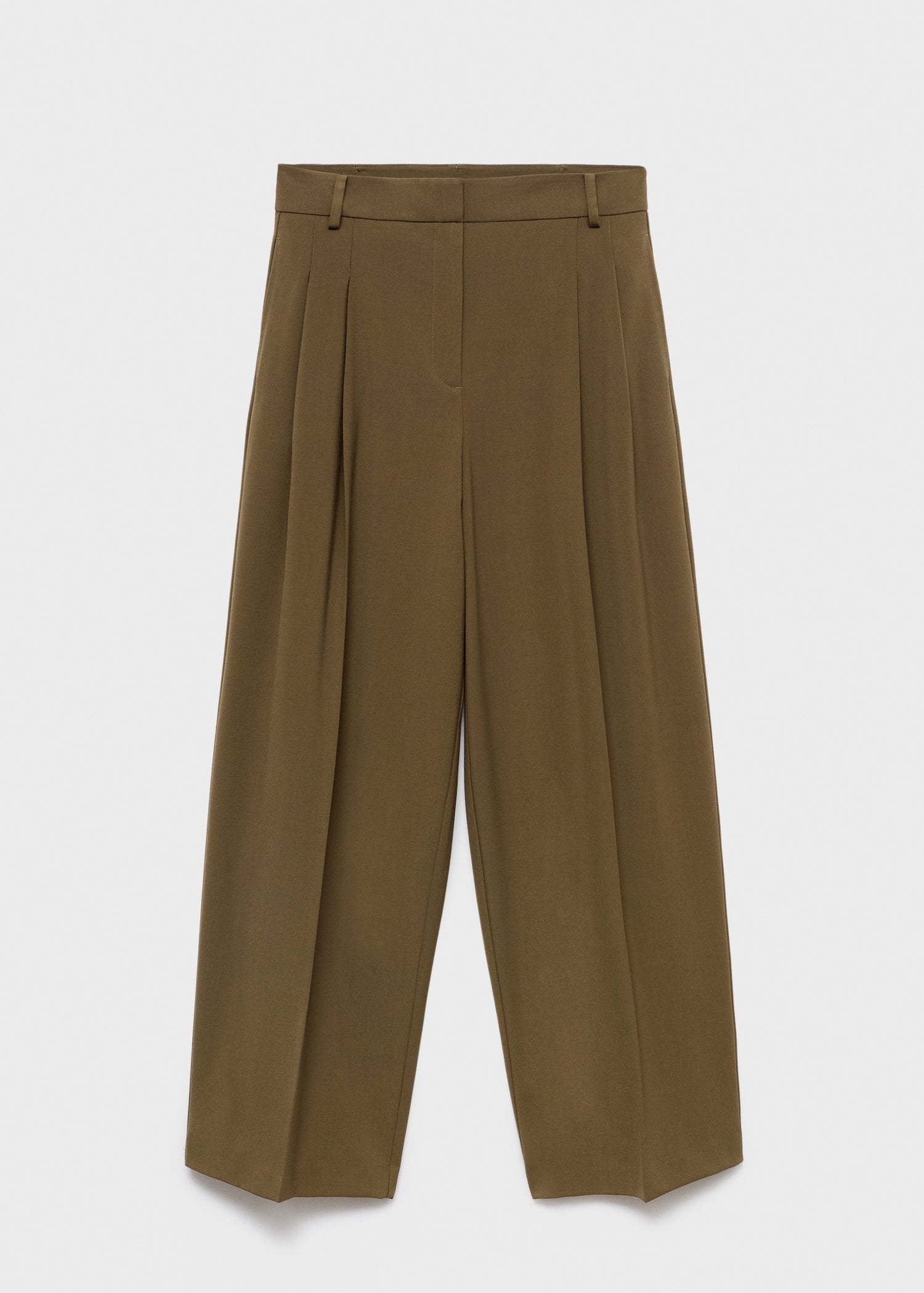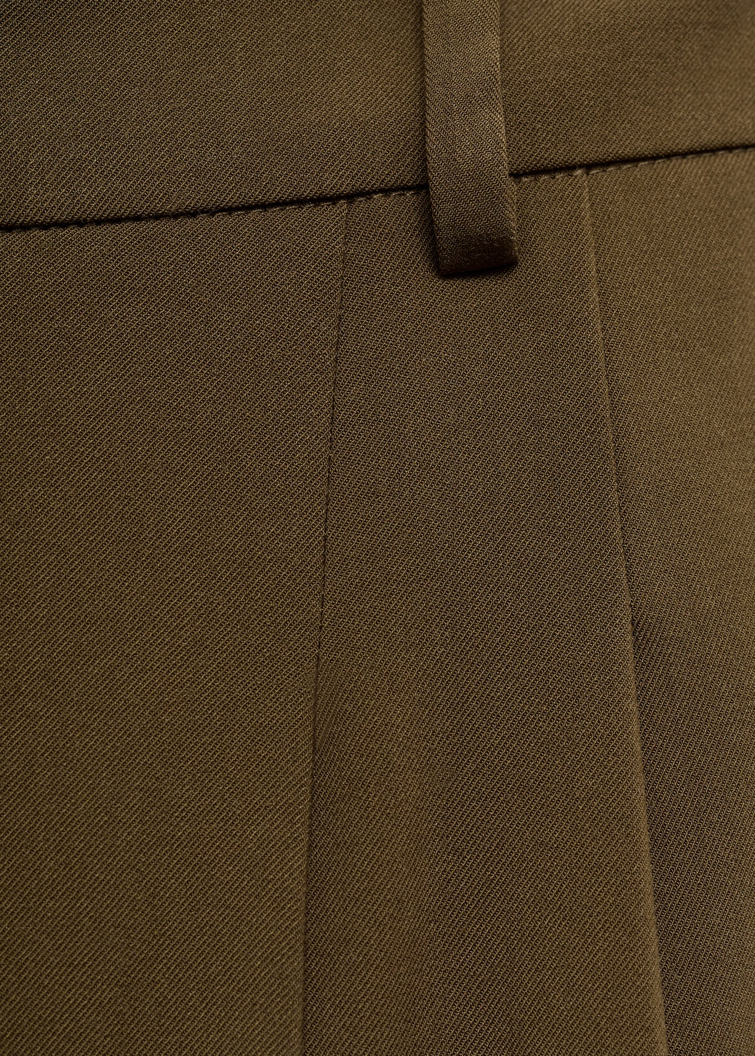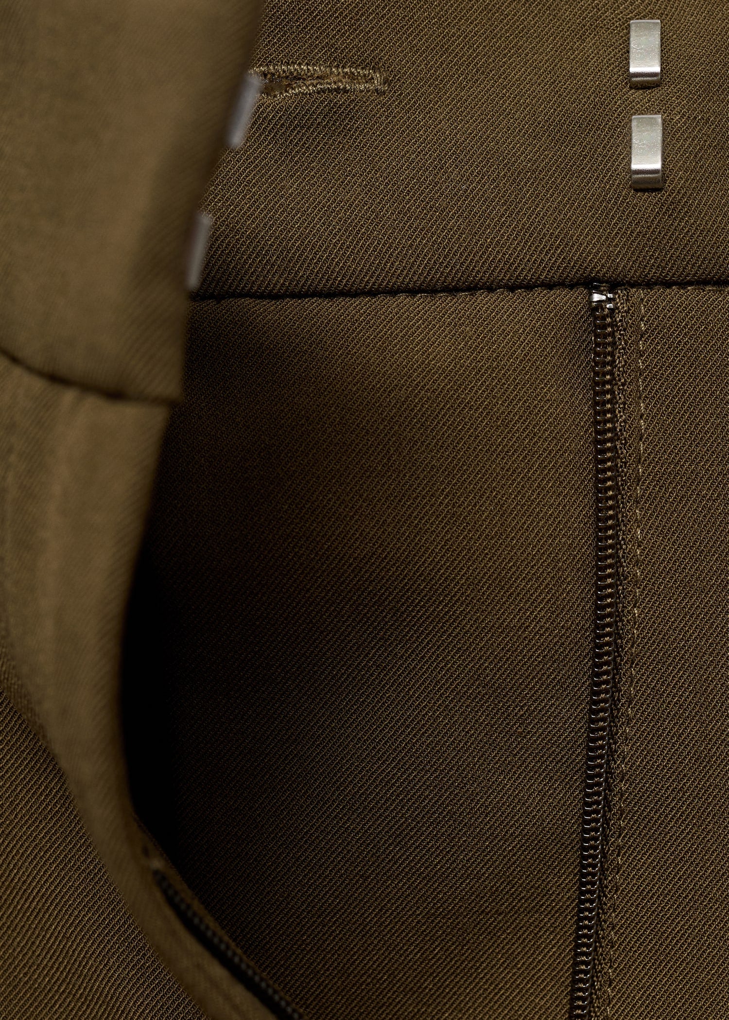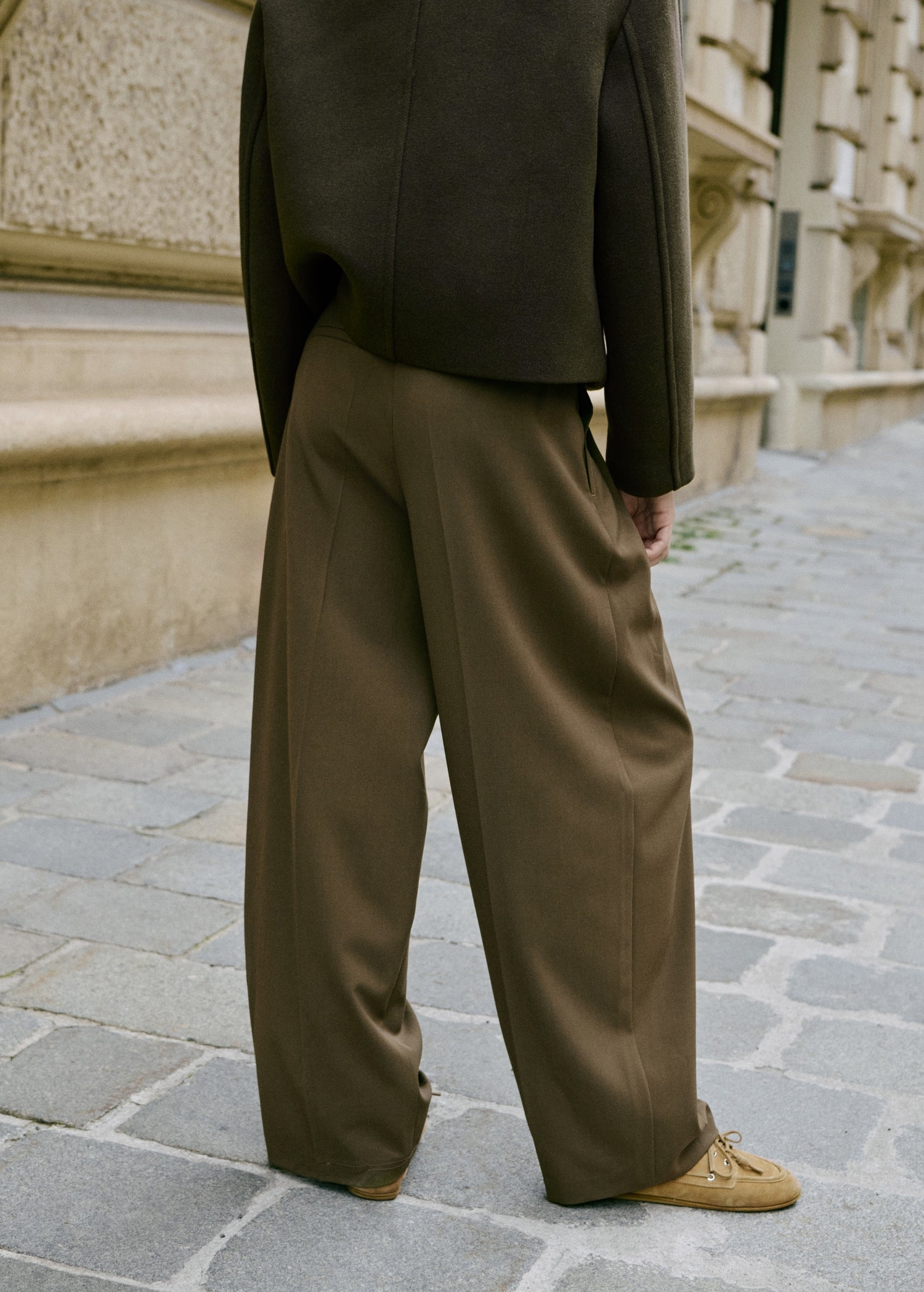 Wide-leg design. Silhouette Sarouel. Mid-rise. Dart detail. Belt loops. Two side pockets. Concealed button, hook and zip front closure with placket. Inner lining.